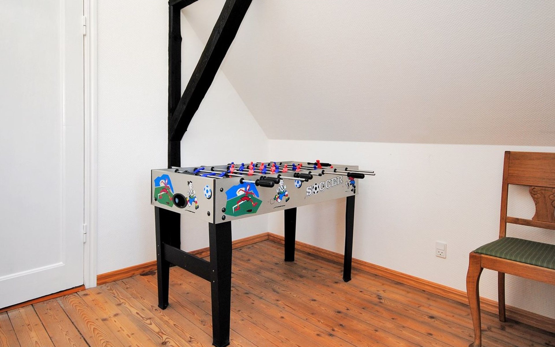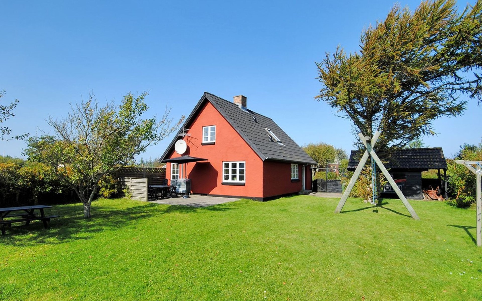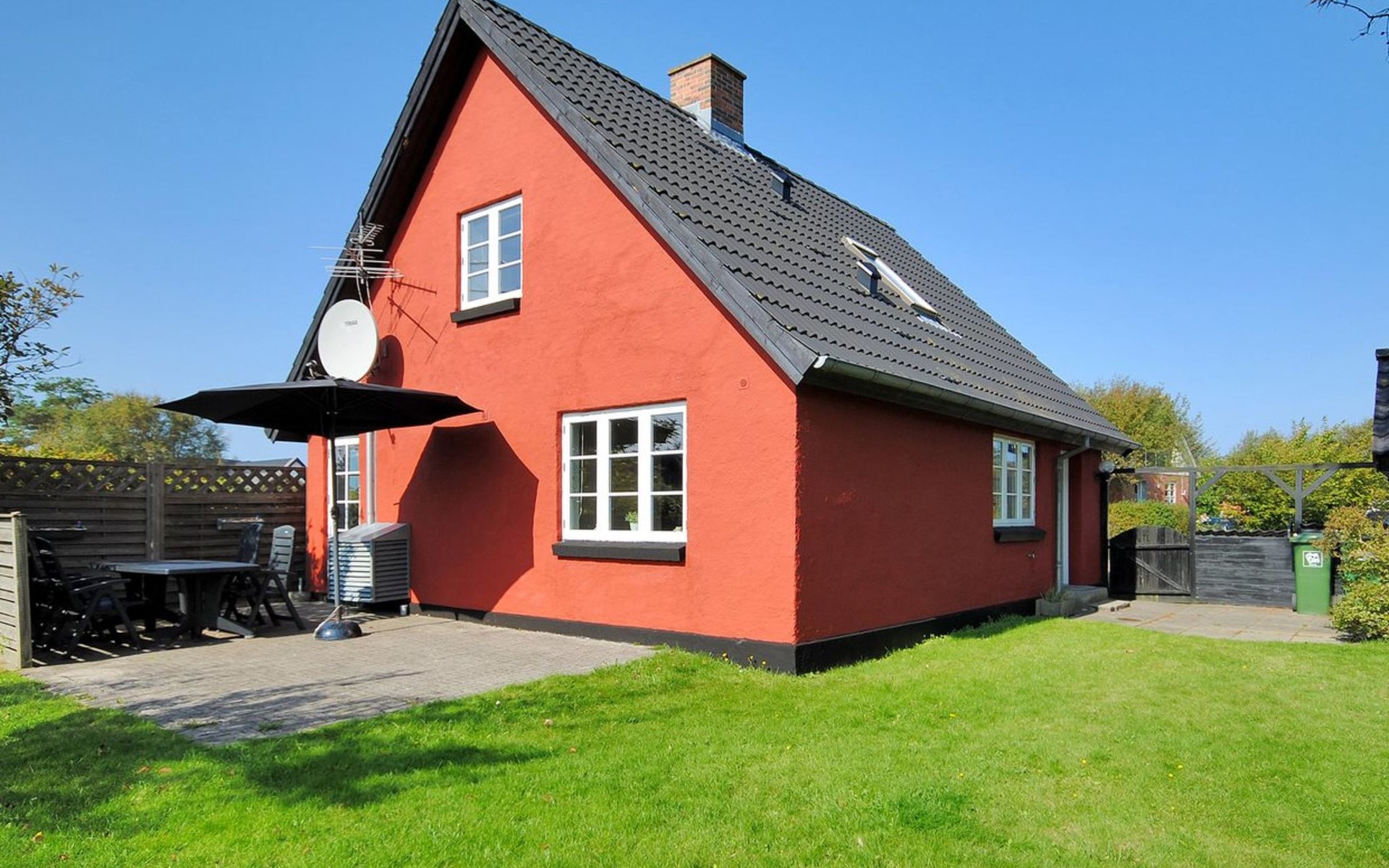 Einfamilienhaus, Baujahr 1942. 400 m vom Meer. Zur Mitbenutzung: Garten. Zur Alleinbenutzung: Grundstück 700 m2, gepflegter Garten (eingezäunt). Terrasse (24 m2), Kinderspielplatz (Schaukel). Im Hause: Tischfussball, Waschmaschine, Wäschetrockner. Parkplatz beim Haus. Lebensmittelgeschäft 1 km. Golfplatz 10 km. Der Besitzer akzeptiert keine Jugendgruppen.