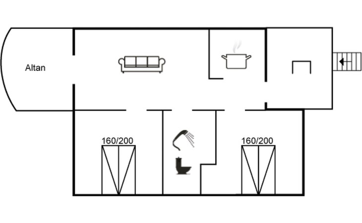 Feriendorf, Baujahr 1990. 100 m vom Meer. Lebensmittelgeschäft 3.7 km. Der Besitzer akzeptiert keine Jugendgruppen.