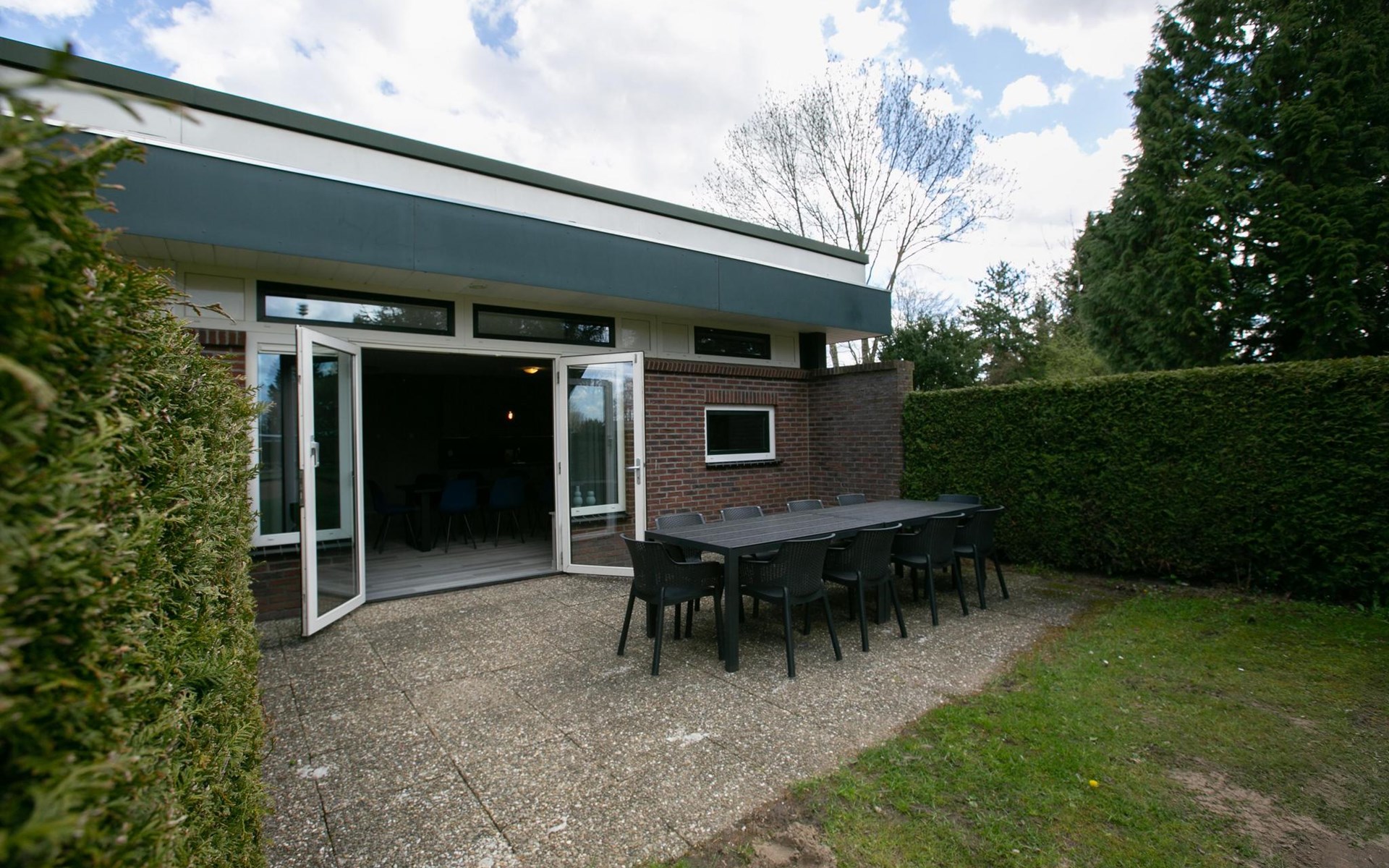 Ruim huisje, wat er netjes uit zag. Flinke wei achter het huisje.