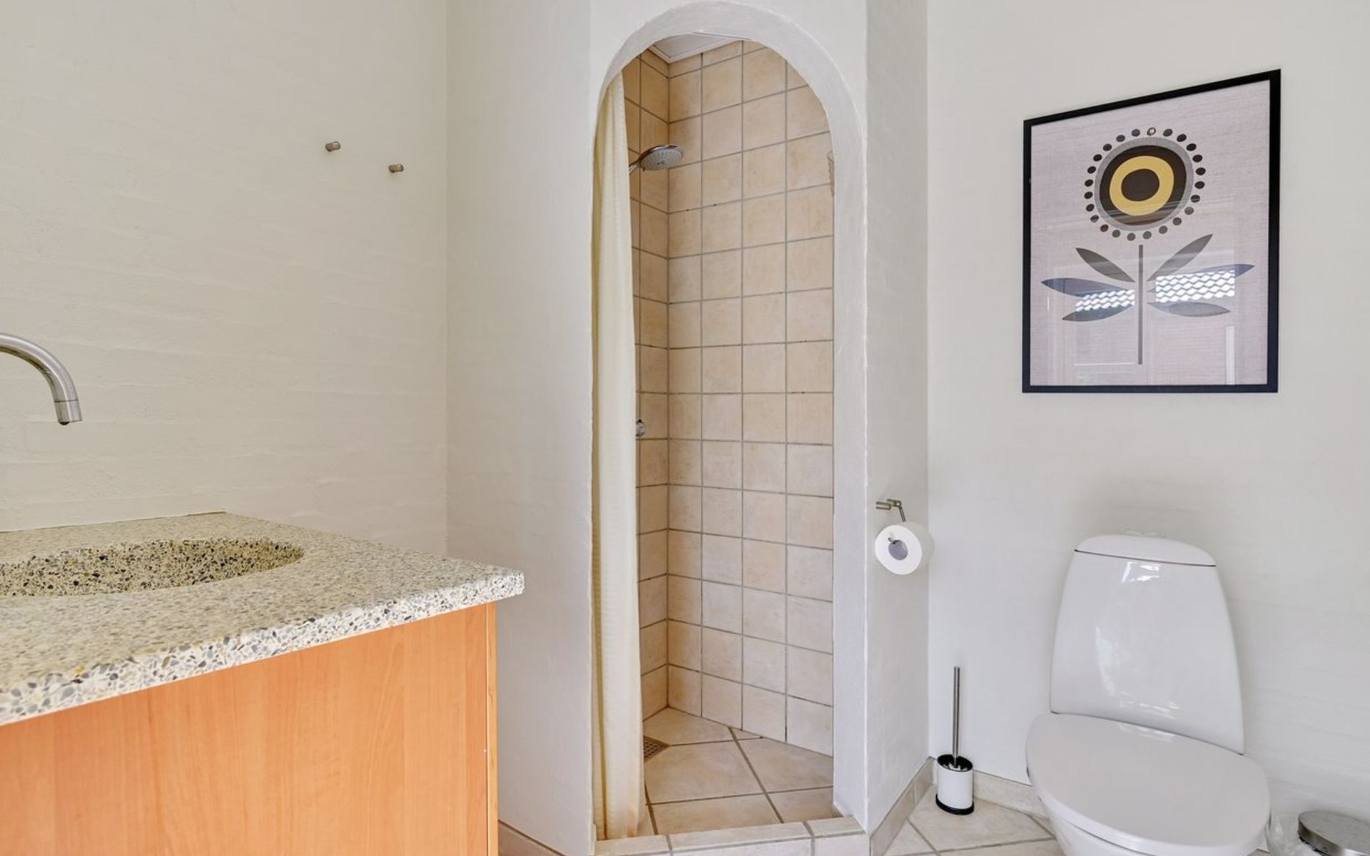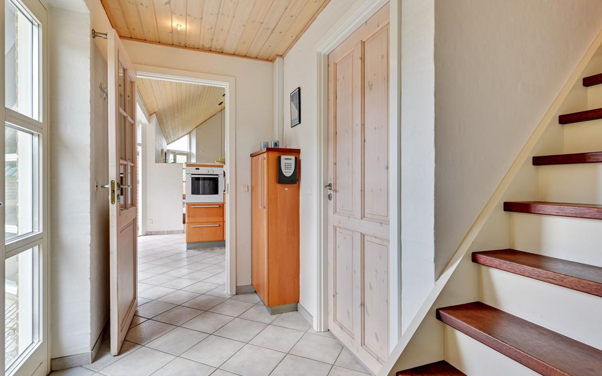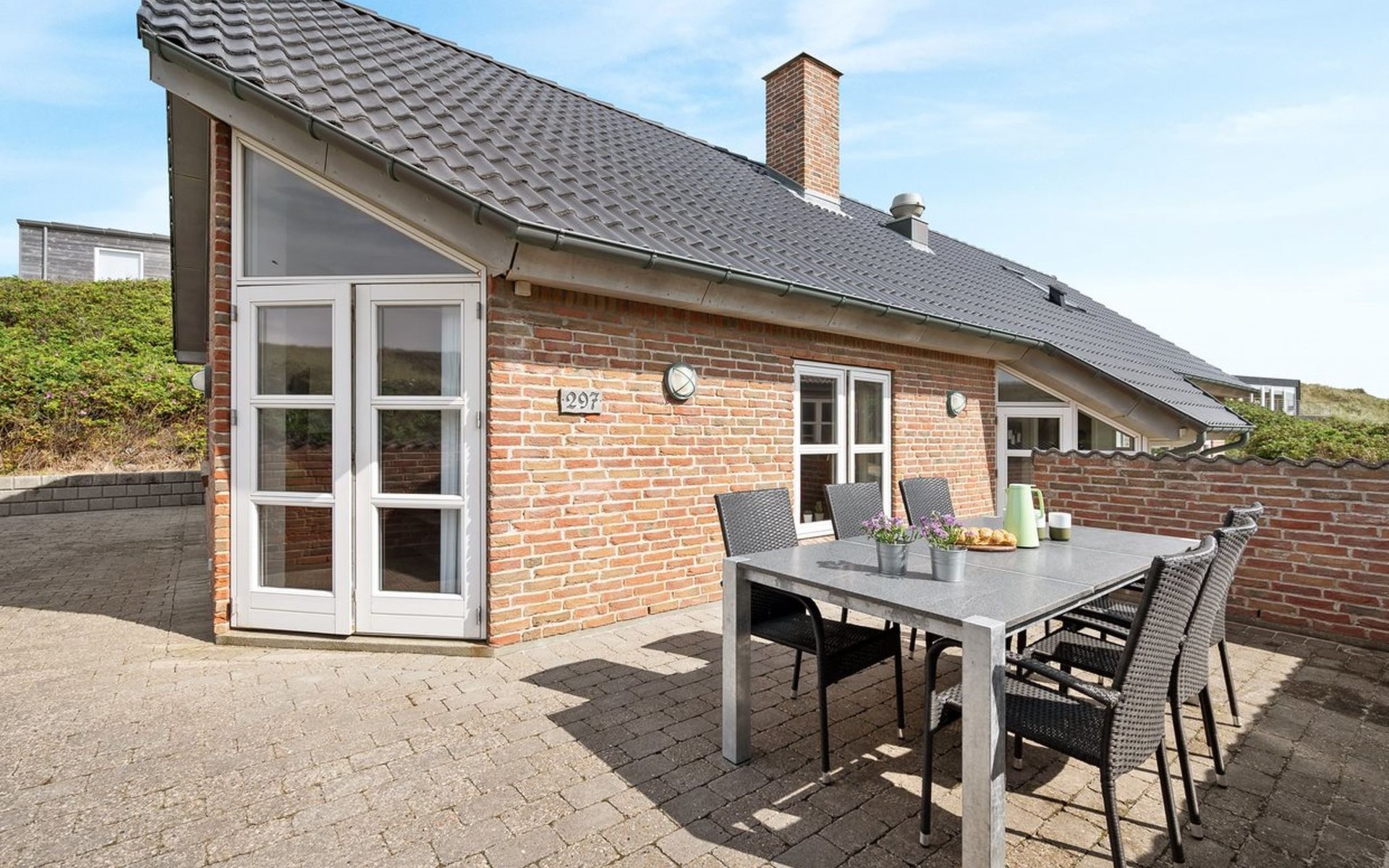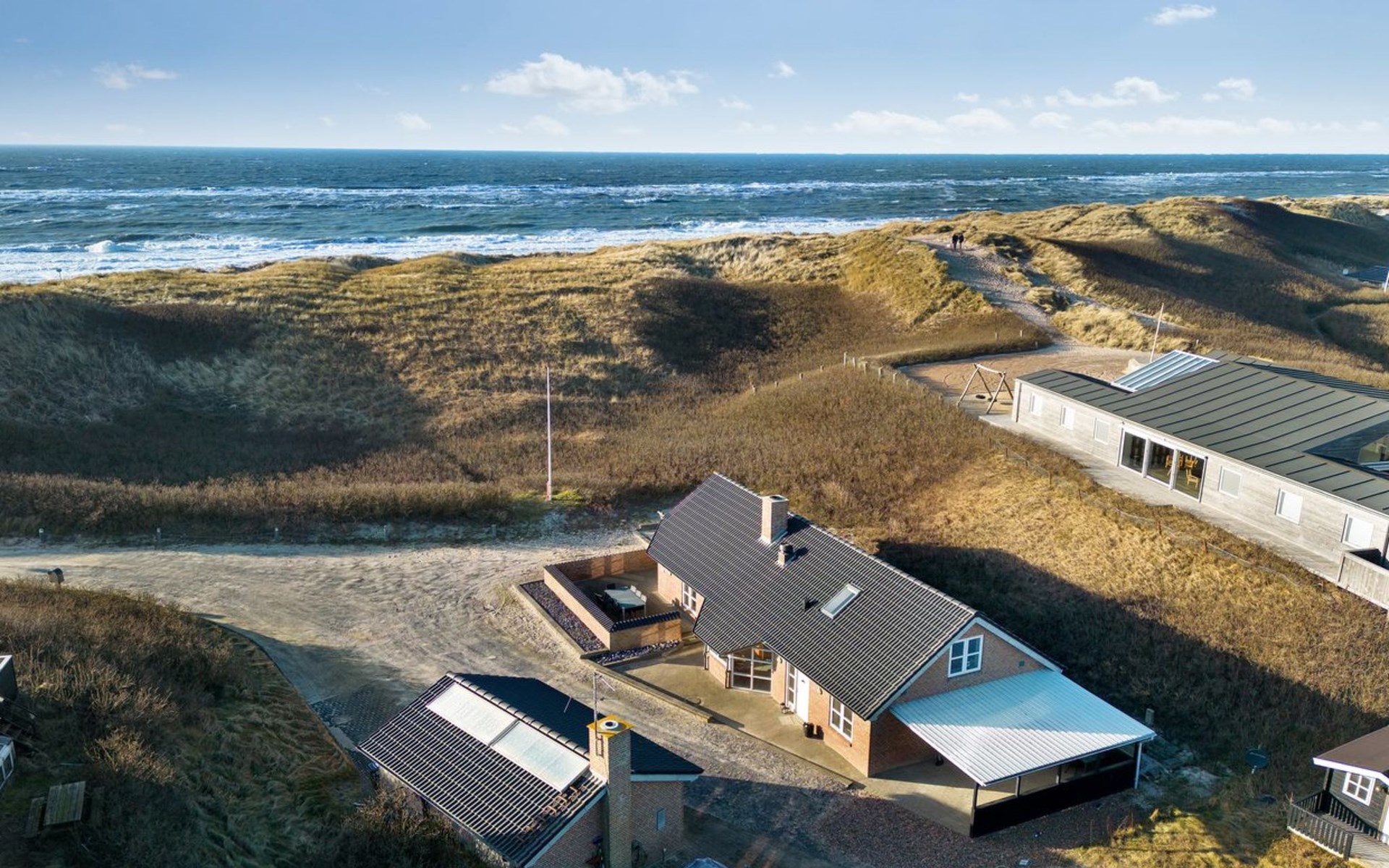 Einfamilienhaus, Baujahr 2003. 30 m vom Meer. Zur Alleinbenutzung: naturbelassenes Grundstück 1'862 m2. Terrasse (15 m2). Im Hause: Sauna, Waschmaschine, Wäschetrockner. Parkplatz beim Haus. Lebensmittelgeschäft 200 m. Golfplatz 2 km. Der Besitzer akzeptiert keine Jugendgruppen.