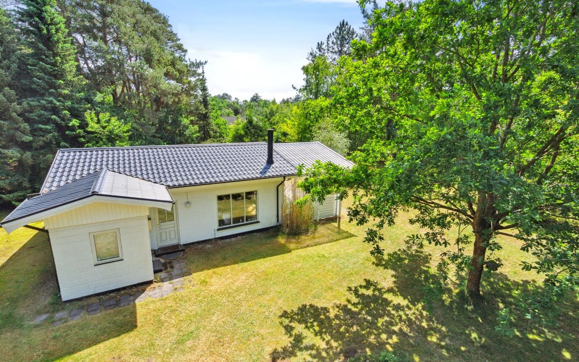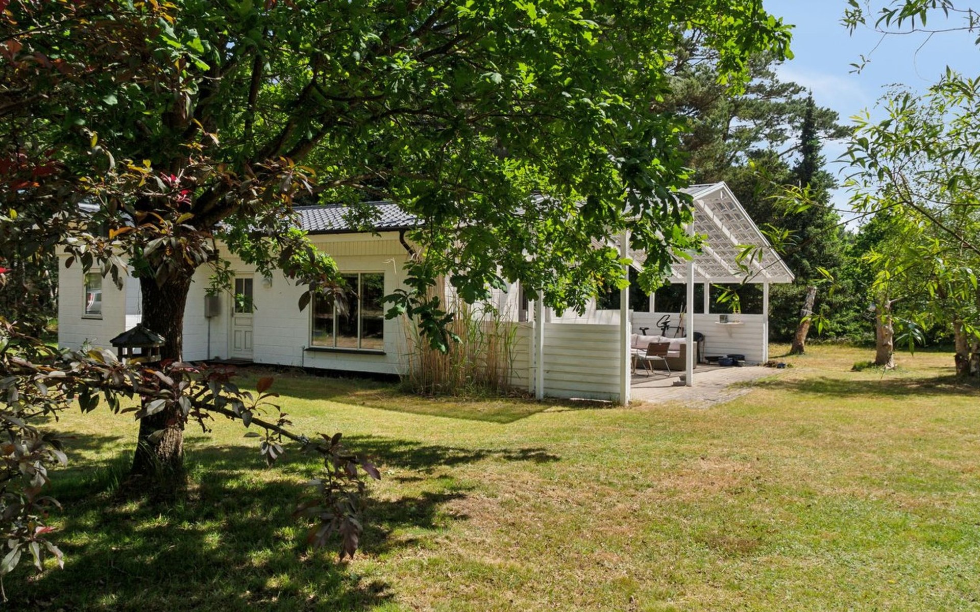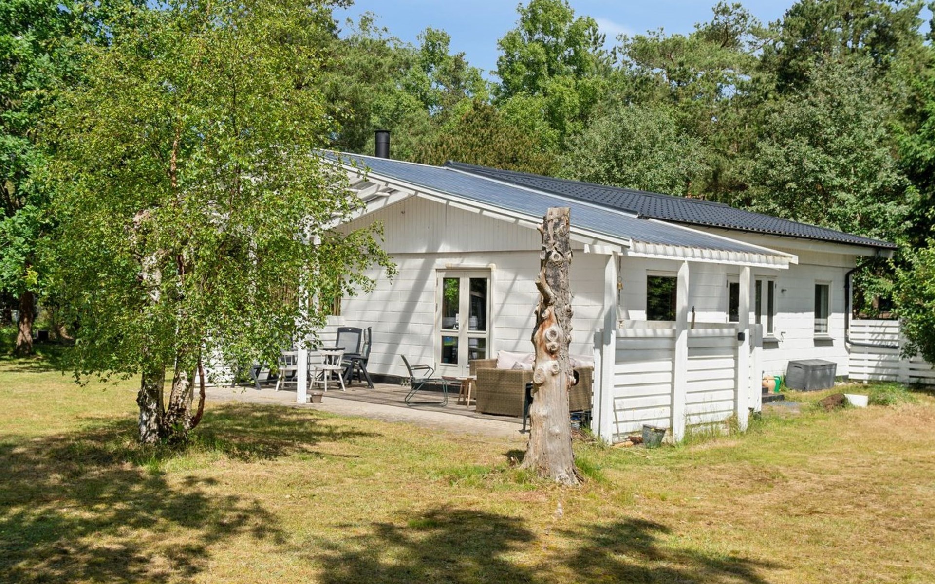 Einfamilienhaus, Baujahr 1966. 1.5 km vom Meer. Zur Alleinbenutzung: Grundstück 1'970 m2, gepflegter Garten. Terrasse (15 m2), Grill. Im Hause: Waschmaschine. Parkplatz beim Haus. Lebensmittelgeschäft 500 m. Golfplatz 6.3 km. Der Besitzer akzeptiert keine Jugendgruppen.