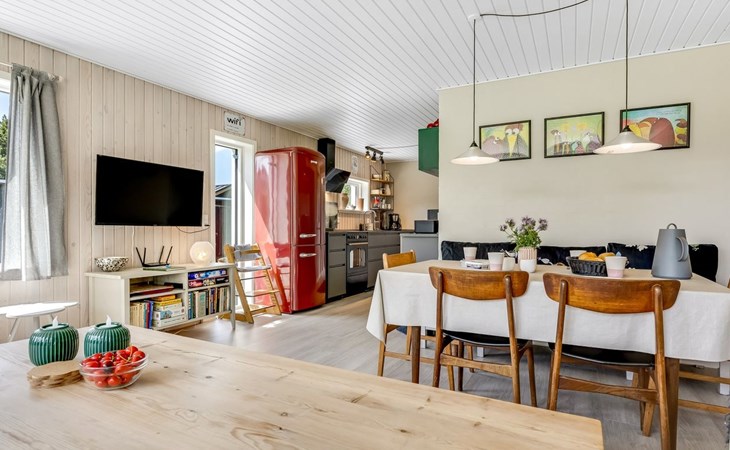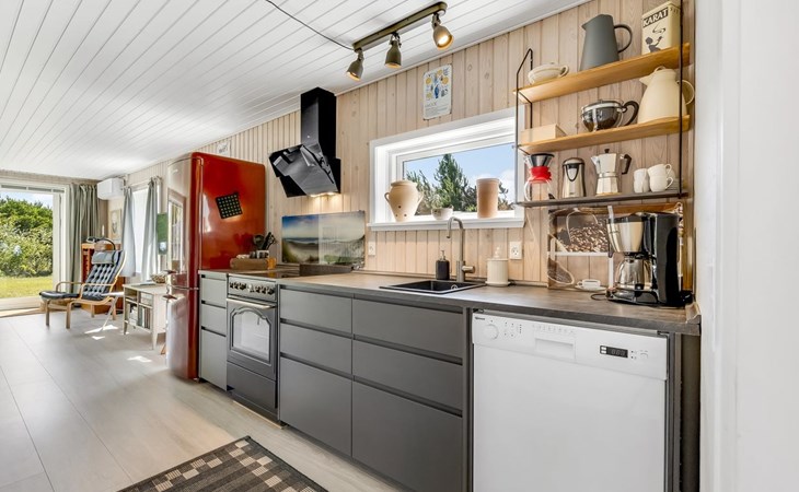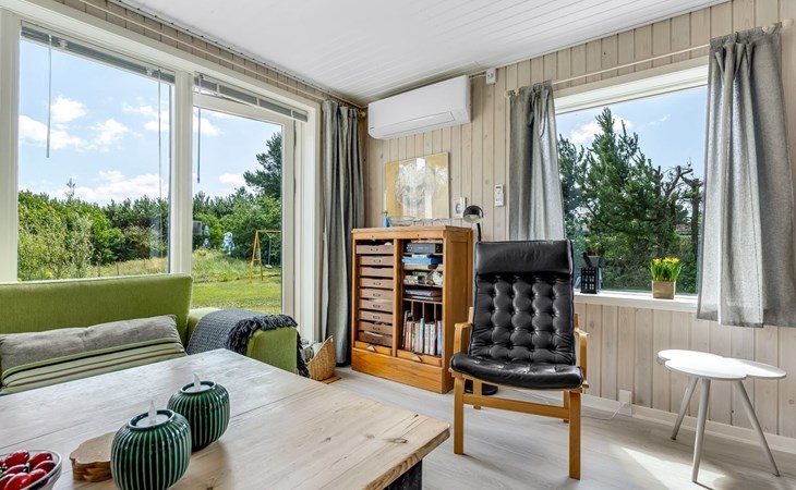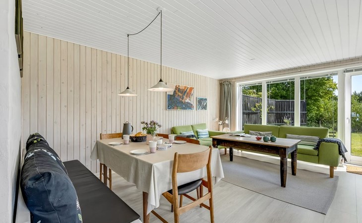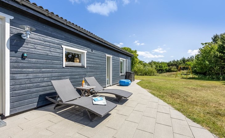 Einfamilienhaus, Baujahr 1996. 450 m vom Meer. Zur Alleinbenutzung: naturbelassenes Grundstück 550 m2. Grill. Im Hause: Waschmaschine. Parkplatz beim Haus. Lebensmittelgeschäft 550 m. Golfplatz 6.8 km. Der Besitzer akzeptiert keine Jugendgruppen.