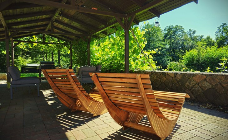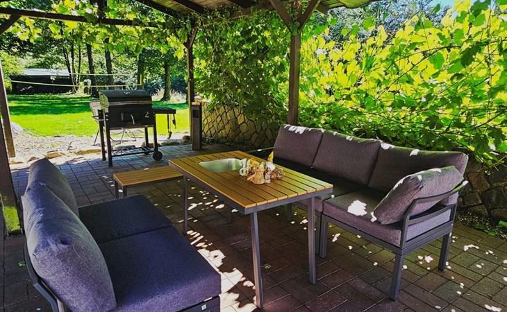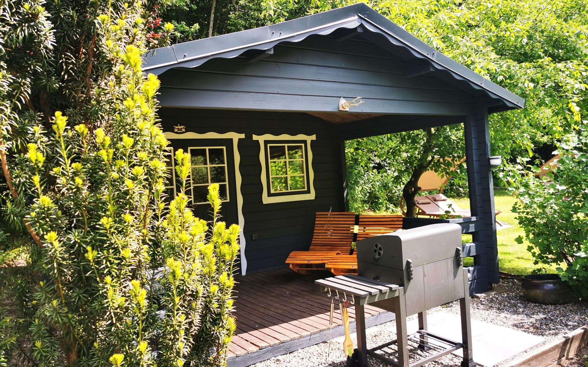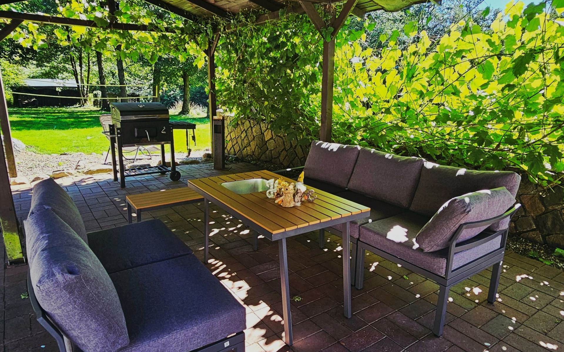 Einen überdachten Pavillon mit Grillmöglichkeit – perfekt für laue Abende