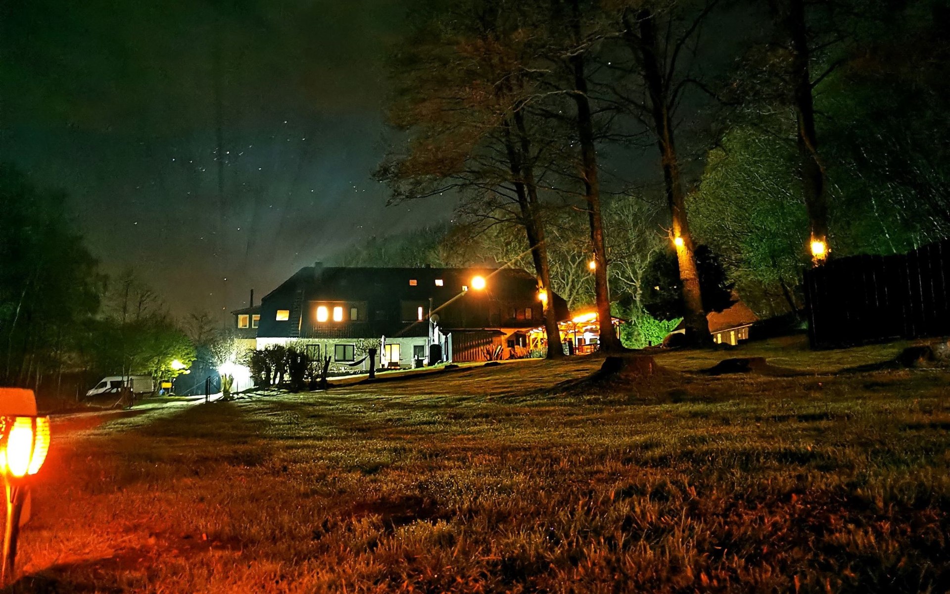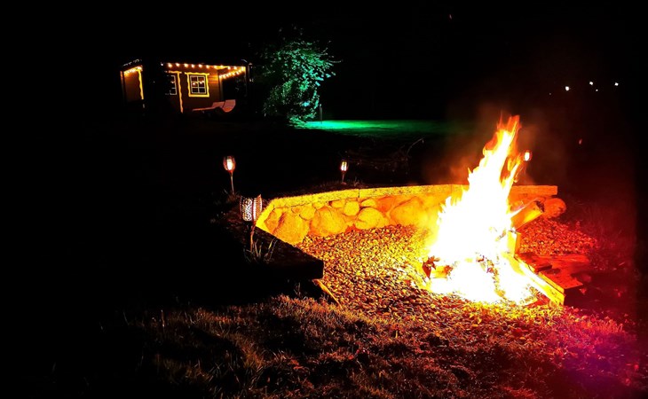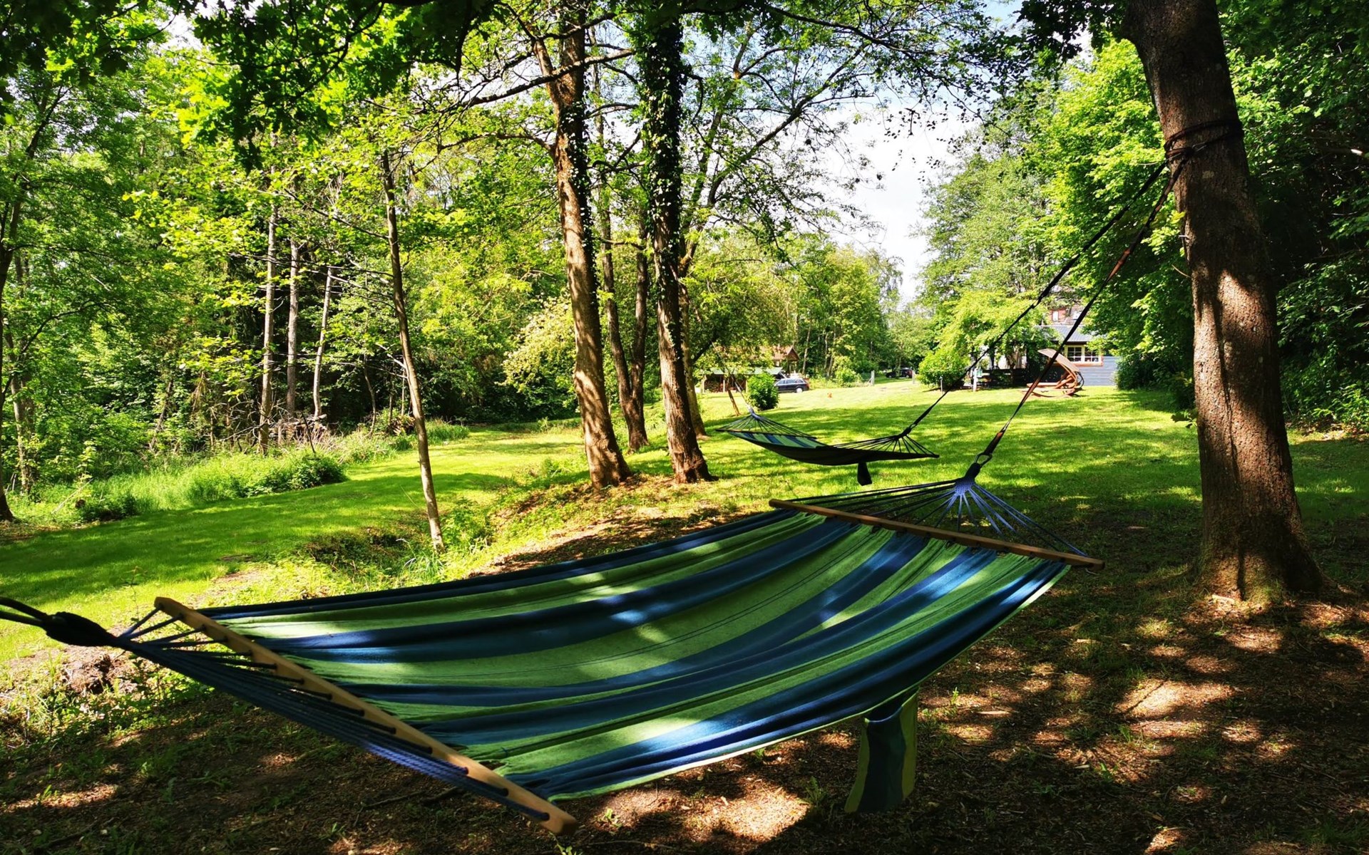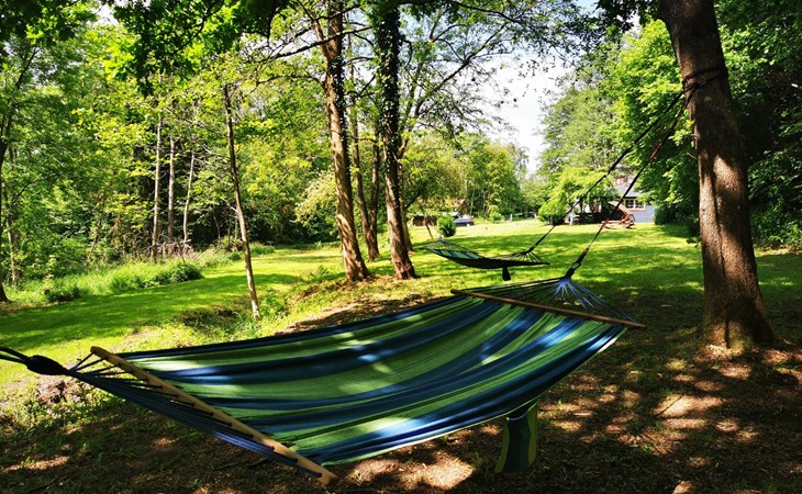 Schaukeln, Hängematten, Gartenspiele und einen Lagerfeuerplatz