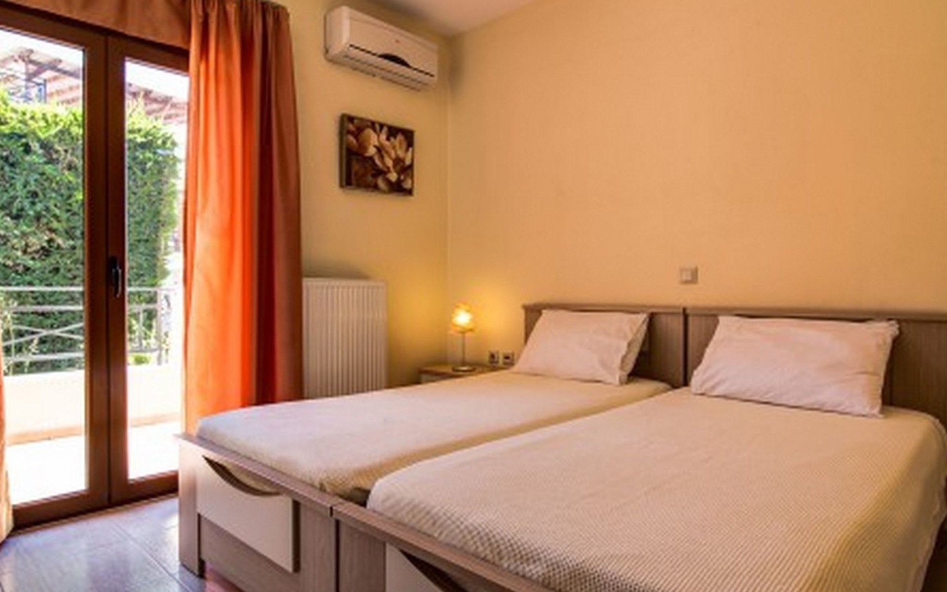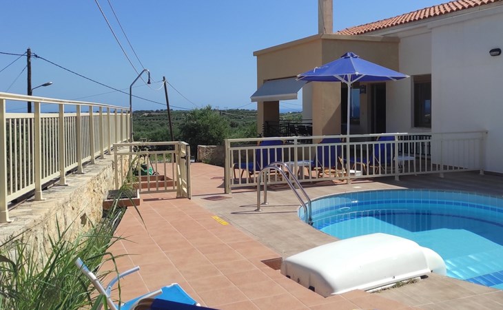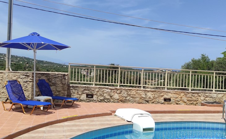 The holiday home features 3 bedrooms for 6 persons, bathroom and second separate toilet. The entire inside living area is situated on the same level as the pool, patio and landscaped gardens. The villa features a fenced private pool, offering stunning panoramic views from inside and outside. The vacation rental is fully equipped with all amenities like free Wi-Fi, air condition and satellite TV. Bedrooms * 3 bedrooms for 6 persons: one bedroom with a double bed and two bedrooms with 2 single beds in each bedroom. * 2 bathrooms: one bathroom with bath, toilet, basin & washing machine. Second toilet with basin. Bedrooms have built-in wardrobes, air-conditioning unit (cool/warm), large mirror, safe and balcony doors with blinds and mosquito shields.