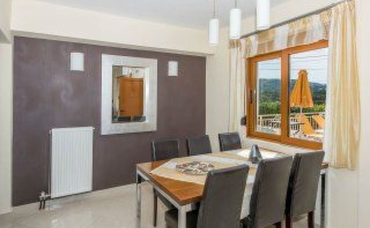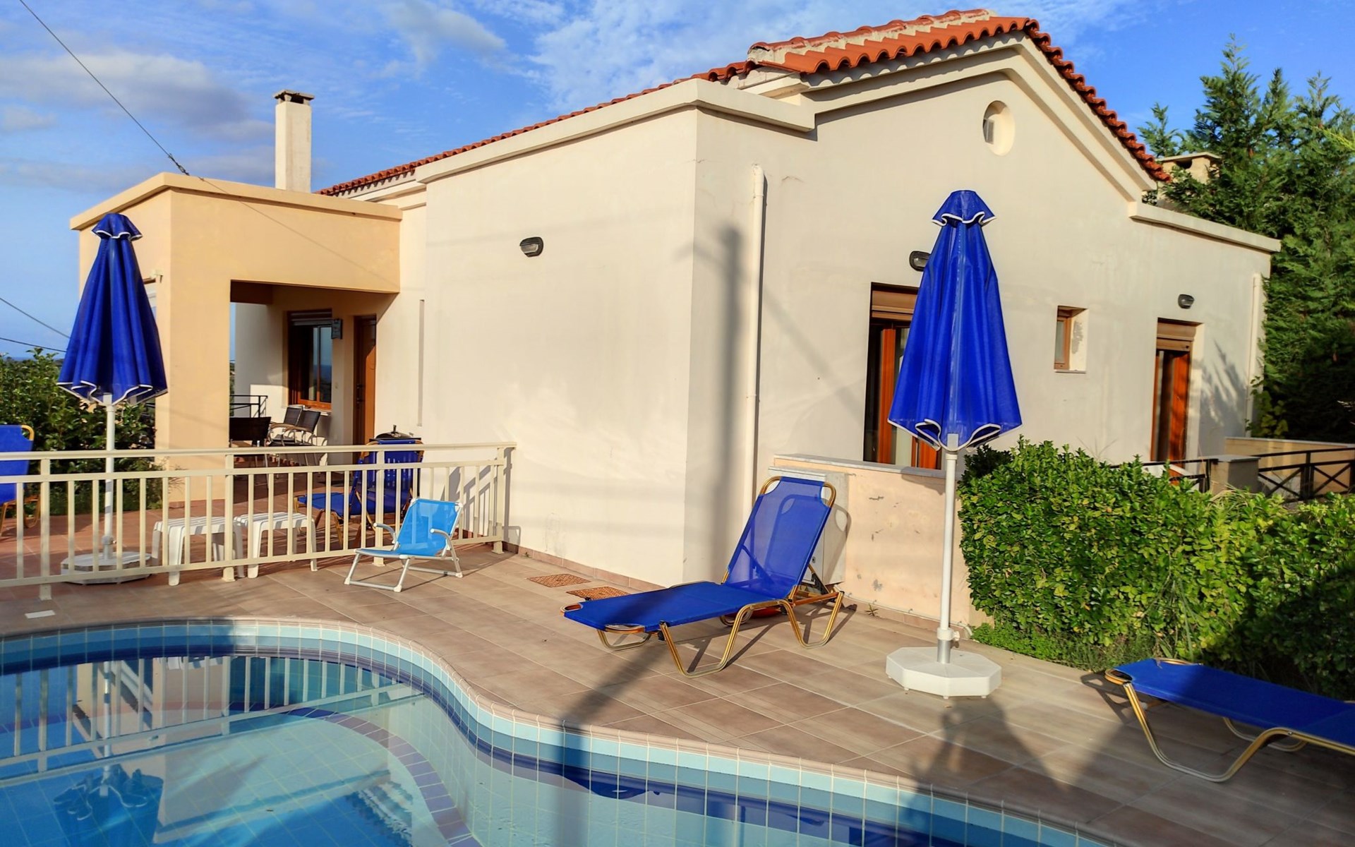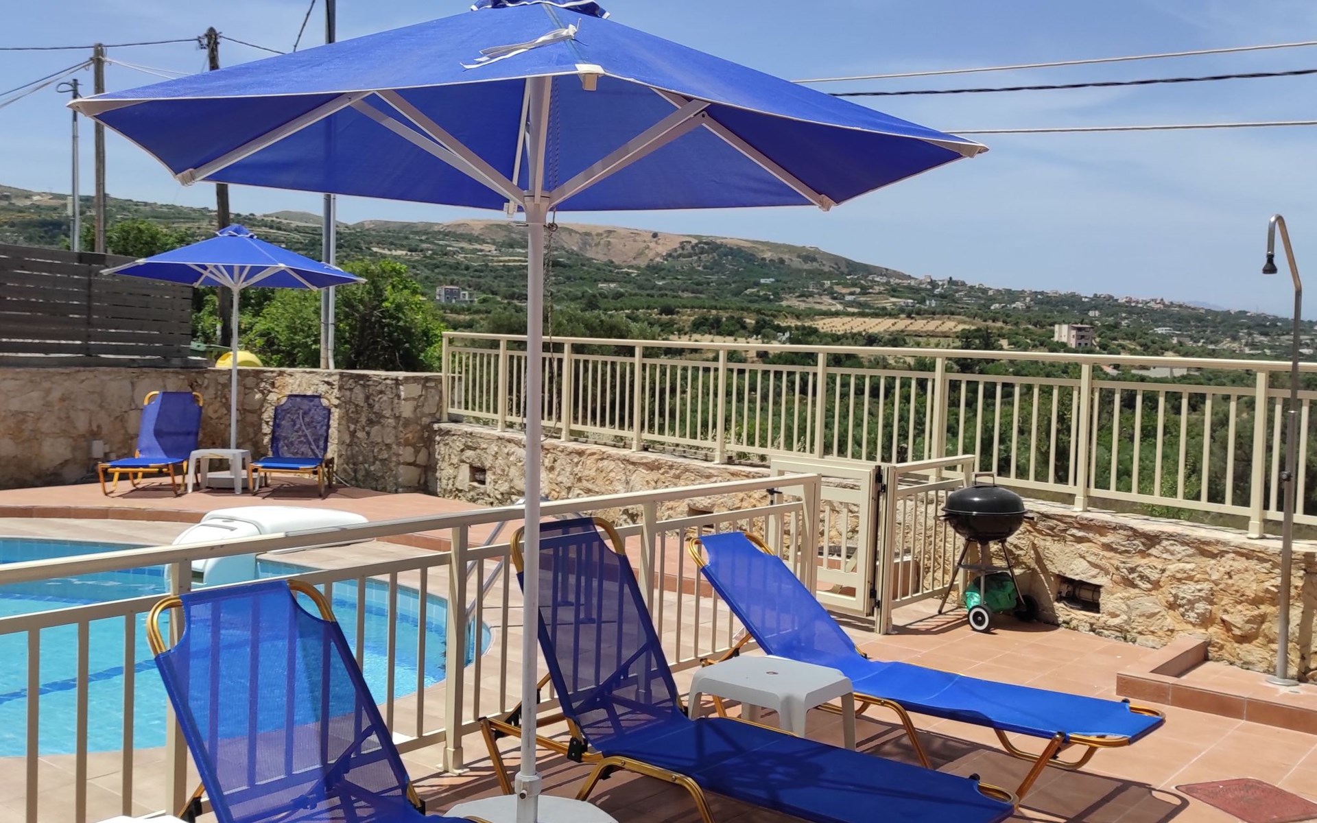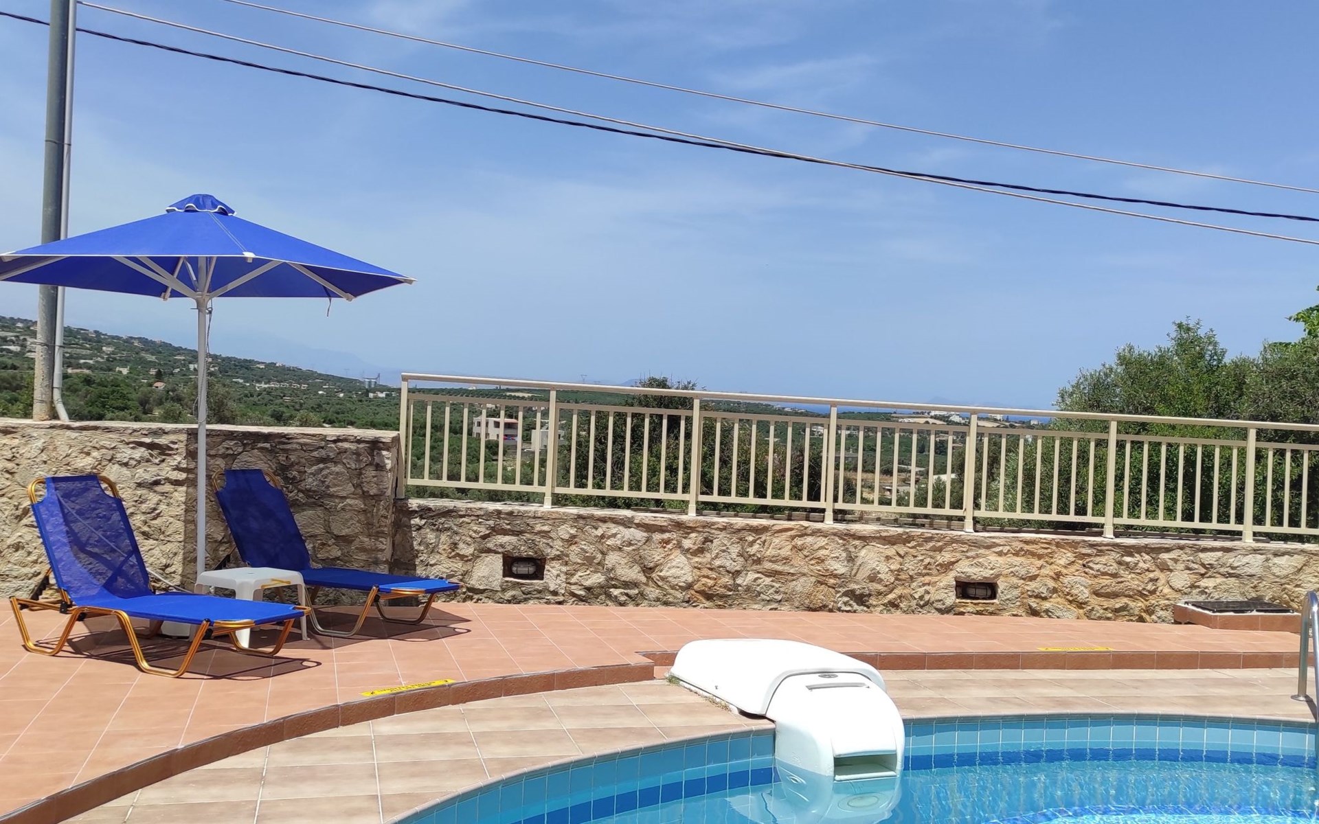 The independent villa is built on a separate plot, bounded by stone walls, pine trees and a fence. It features a sea view private pool with key lock fence and outdoor shower. Enjoy unobstructed panoramic view relaxing at the patio equipped with sun loungers and umbrellas. The swimming pool is operational from 15.04 to 15.10 if the weather conditions allow it. The pool depth is 130 to 150 meters. There is a parking space in front of the country house on a private lane. A charcoal portable barbecue unit is at your disposal.