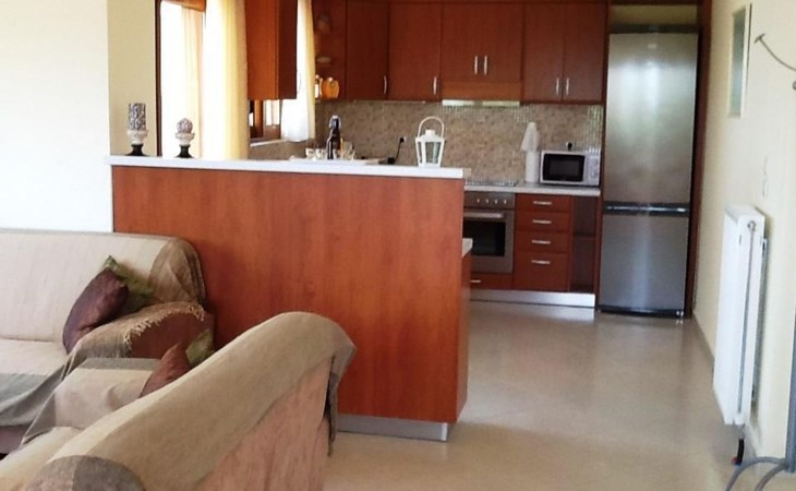Living area: A spacious, open living area with stunning panoramic views from the large windows. The dining room has a dining table and chairs for 6 persons. The sitting area offers a triple and a double-seater sofa and an open fire place, as well as an large air-conditioning unit. Smart TV in sitting area offers ASTRA satellite connection for foreign channels. Kitchen Fully equipped kitchen with electric oven, ceramic cooking plate, hob/extractor fan, large fridge with freezer, dish washer, microwave oven, water cooker, coffee machine, toaster, as well as all necessary kitchen utensils . Laundry facilities: Washing machine, steam iron, ironing board and drying rack. Note - Beds made with sheets and blankets. Also kitchen and bath towels are provided. With a stay of more than 7 nights, extra sheets / towels are provided depending on the length of your stay. Set of 2 medium and 2 large bath towels per person. Please bring your own pool/beach towels. - Check-in: from 16:00 hours - Check-out: before 11:00 hours.