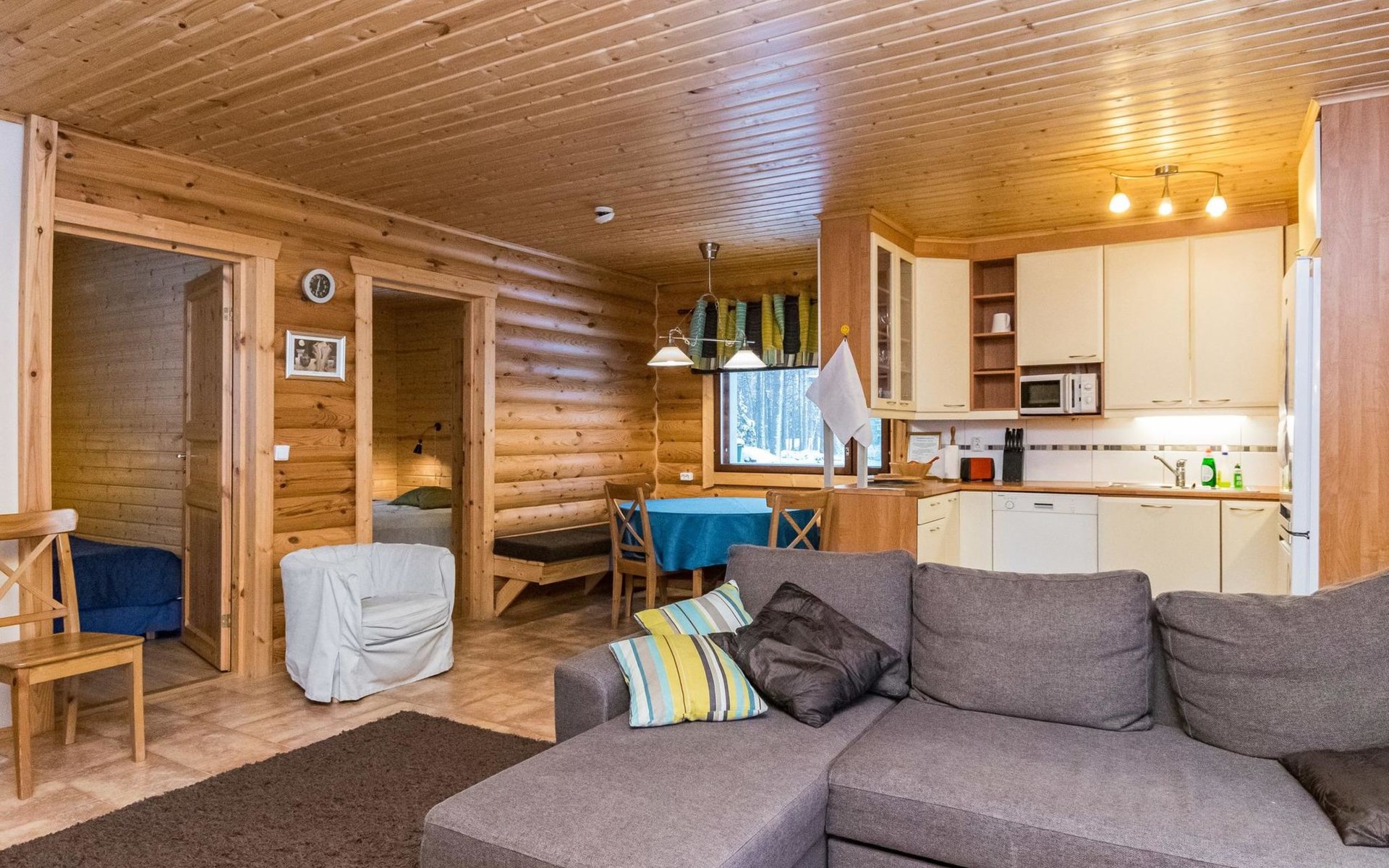 Maximal 2 Haustiere/Hunde erlaubt. 50 km östlich von Savonlinna, See Saimaa/Puruvesi 15 m, harter und sanft vertiefender Kiesboden, Pier und Ruderboot. Holzhaus, Baujahr 2011, Wohnküche (33 m²), zwei Schlafzimmer (10 m²) - eins mit zwei Betten und ein weiteres mit Doppelbett, Waschraum mit Dusche und WC, Saunaofen, separates WC, Vorraum, überdachte Veranda und Terrasse. Haustiergebühr: Euro 15/Tier. Muikku ist ein geräumiges und gut erreichbares Miethaus. Es ist auch für eine größere Gruppe von Gästen ideal. Die folgenden Miethäuser befinden sich im selben Touristengebiet: 15241, 15242, 15243, 15244 und 15499. Der Vermieter bietet seinen Gästen verschiedene Vermietungsdienste an. Es können zum Beispiel Schneemobile, Motorboote, Außenbordmotoren, Kanus, Kajaks, SUP-Boards, Fahrräder und Angelausrüstung gemietet werden. In der Umgebung gibt es auch Möglichkeiten zum Reiten und Schlittenfahren. In der Nähe gibt es viele sehenswerte Ausflugsziele, gute Wanderwege und Möglichkeiten zum Beeren- und Pilzsammeln. Punkaharju Ortszentrum 16 km, Punkaharju Kammgebiet 18 km, Kurort Kruunupuisto 22 km, Waldmuseum Lusto 23 km, Kesämaa Vergnügungspark 26 km, Ferienzentrum Pajarinhovi 34 km, Savonlinna 50 km, Kitee 50 km, Imatra 105 km, Helsinki 365 km.