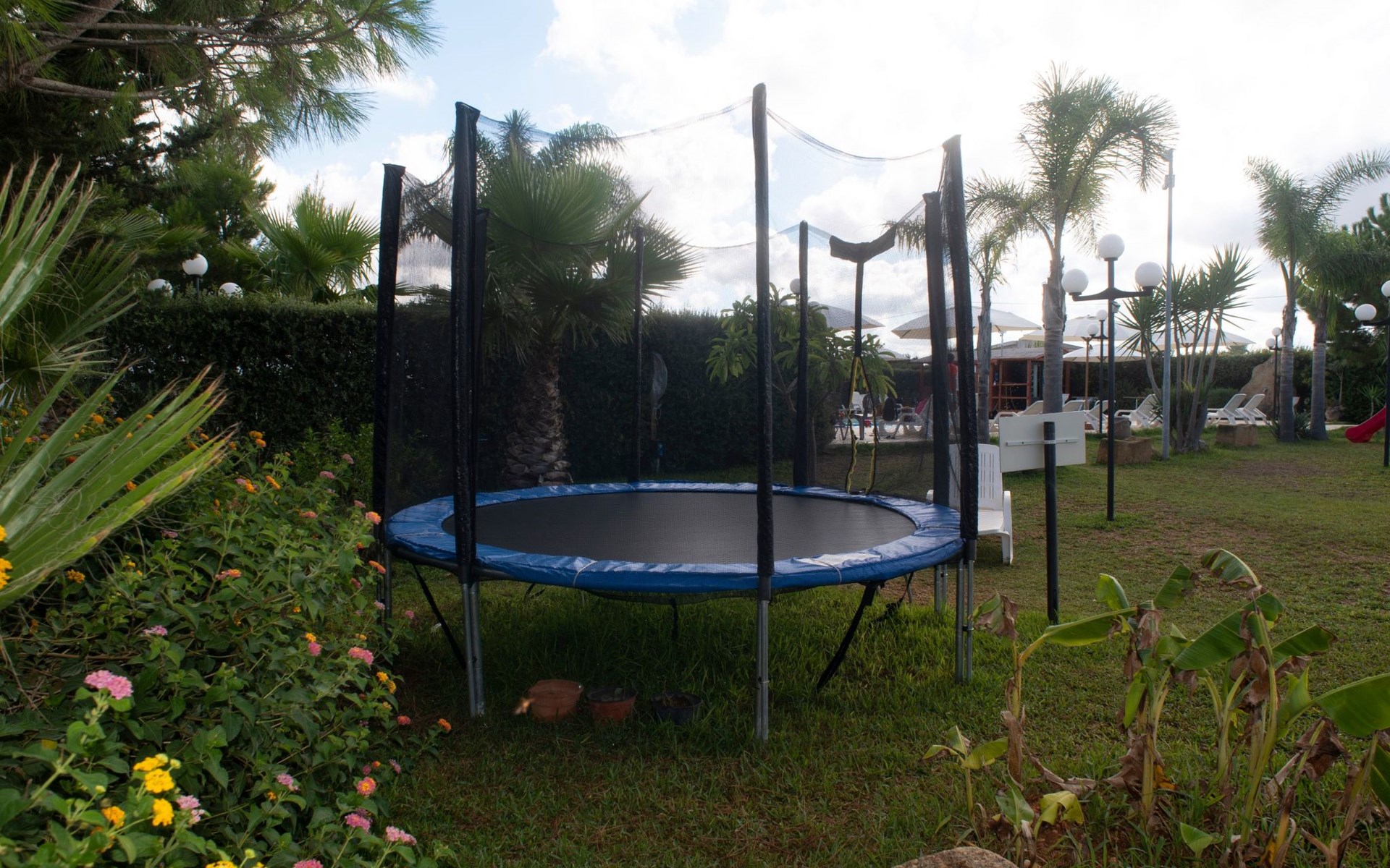 Schwimmbad, Solarium, Grillplatz, Frühstückskiosk, Getränke- und Eisautomaten, Spielplatz für Kinder und Jugendliche, Aufenthaltsraum mit Bibliothek.