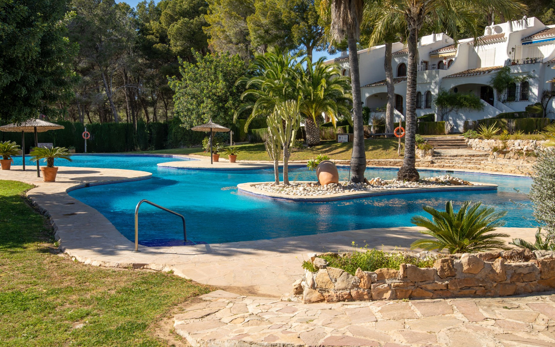 Gemütliches, komfortables Appartementhaus "Los Lagos". Am Ortsrand, 1.5 km vom Zentrum von Jesus Pobre, ausserhalb des Ortes, 9 km vom Zentrum von Denia / Javea, alleinstehende, ruhige, sonnige Lage, 9 km vom Meer, 9 km vom Strand. Zur Mitbenutzung: grosser, schöner, gepflegter terrassierter Garten mit Rasen und Bäumen, Schwimmbad (38 x 22 m, saisonale Verfügbarkeit: 01.Jan. - 31.Dez.). Kinderbecken, Aussendusche. Zur Alleinbenutzung: Terrasse. Treppenweg bis zum Haus. Öffentliches Parkhaus. Einkaufsgeschäft 1.5 km, Supermarkt 1.5 km, Restaurant 1.5 km, Bar 1.5 km, Café 1.5 km, Bushaltestelle 2 km, Bahnstation 5 km, Fähre 11 km, Sandstrand 9 km. Golfplatz (18 Loch) 2 km. Bitte beachten: Fahrzeug empfohlen. Der Besitzer akzeptiert keine Jugendgruppen.