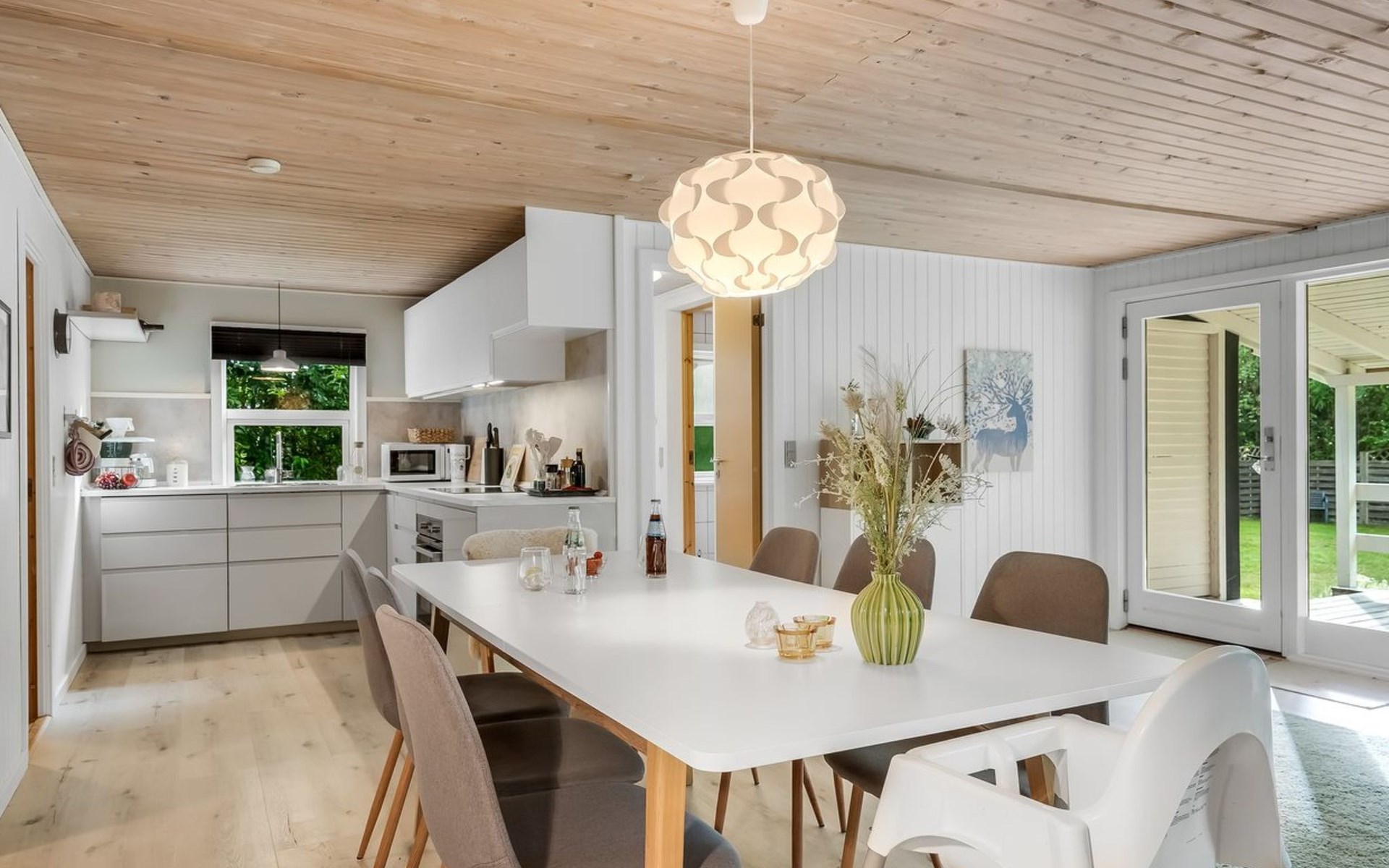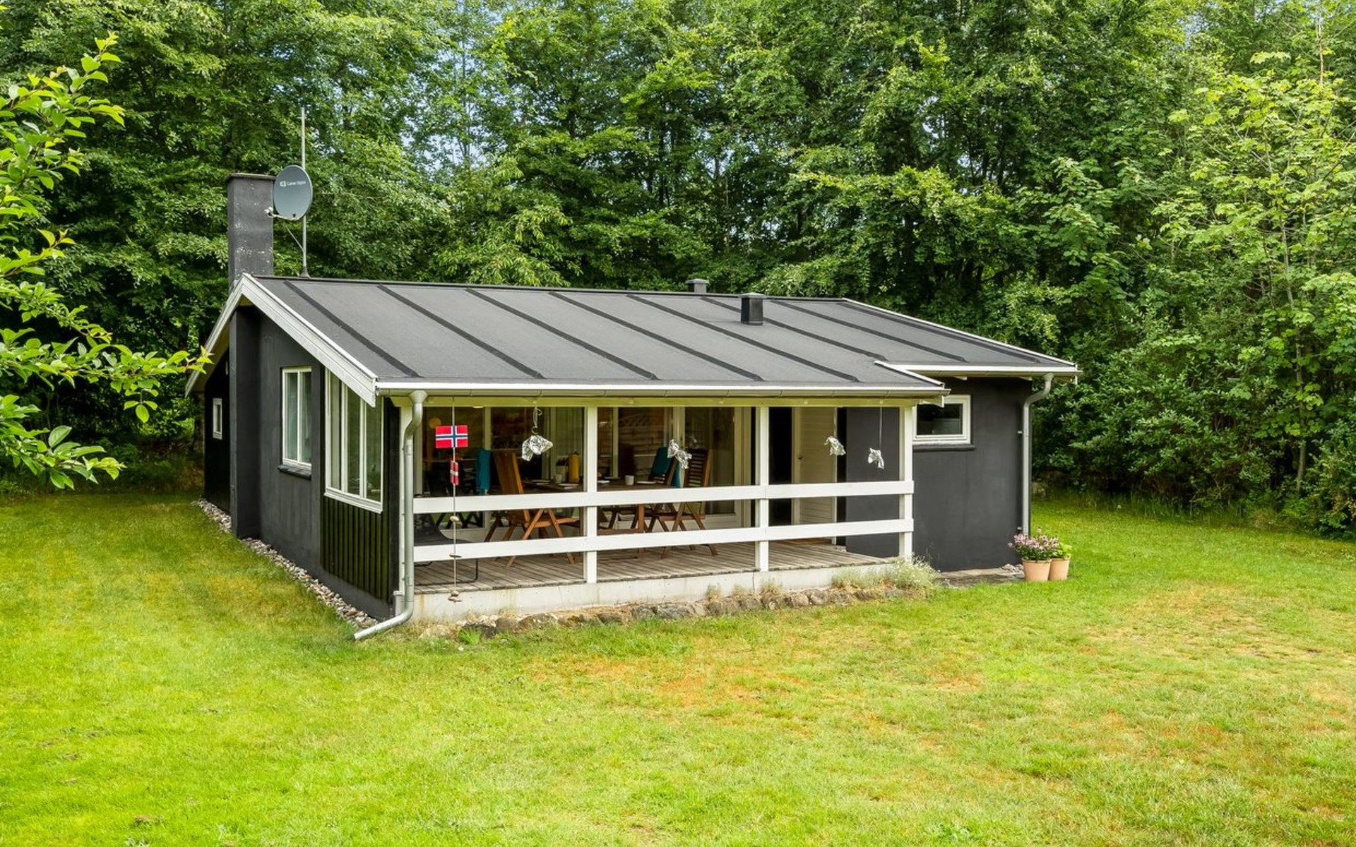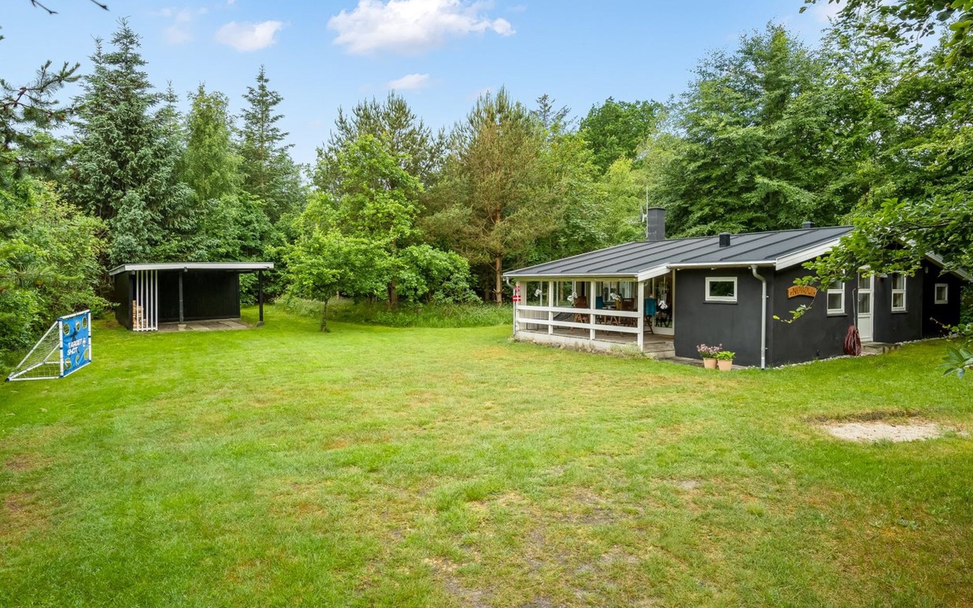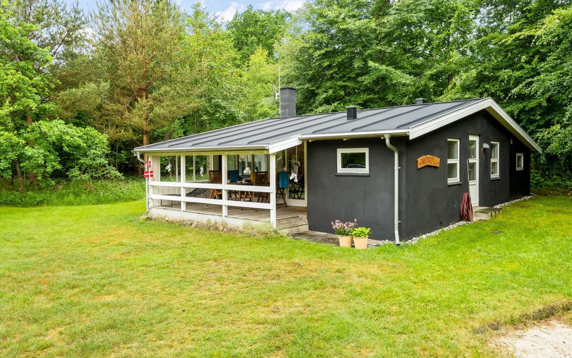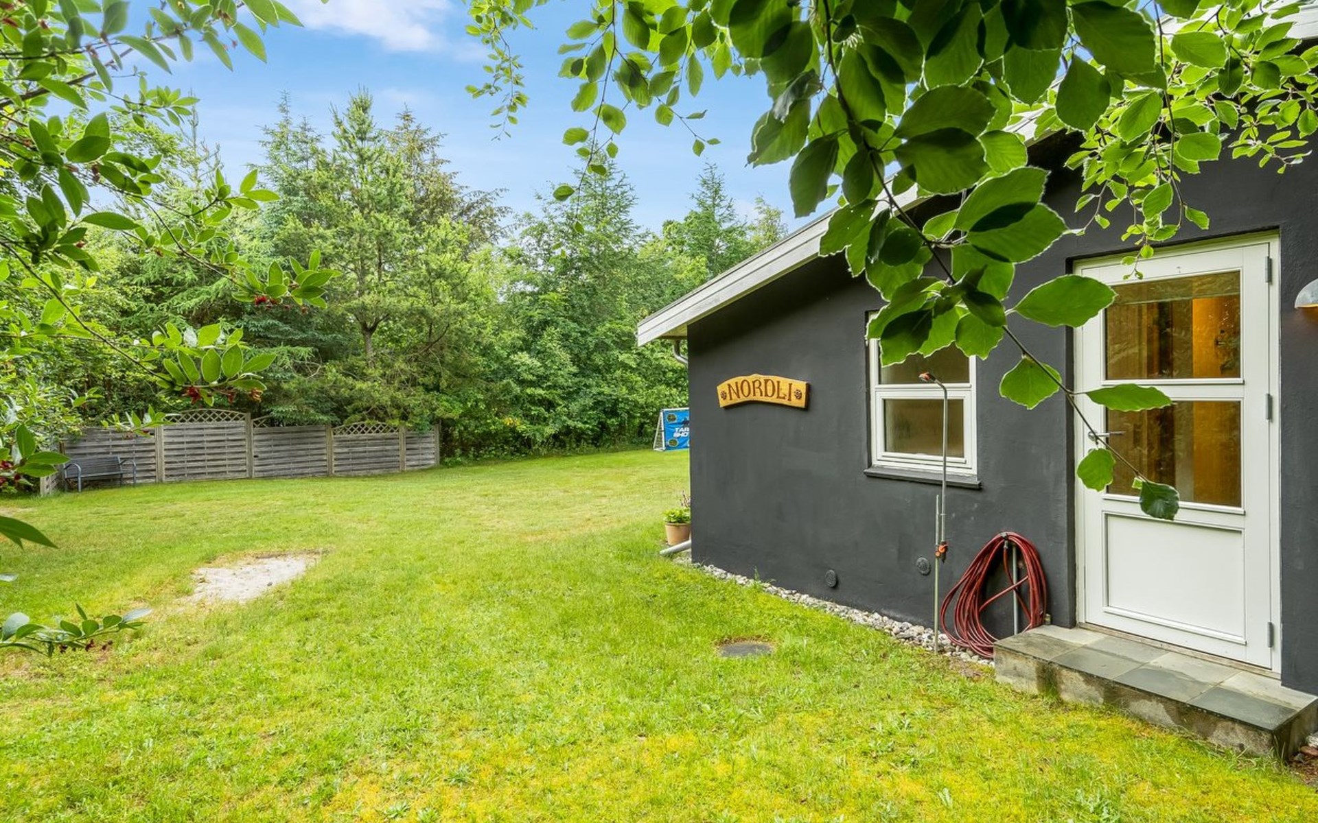Einfamilienhaus, Baujahr 1968. 400 m vom Meer. Zur Alleinbenutzung: Grundstück 1'887 m2, gepflegter Garten. Grill, Kinderspielplatz (Schaukel). Im Hause: Waschmaschine. Parkplatz beim Haus. Lebensmittelgeschäft 3.5 km. Der Besitzer akzeptiert keine Jugendgruppen.