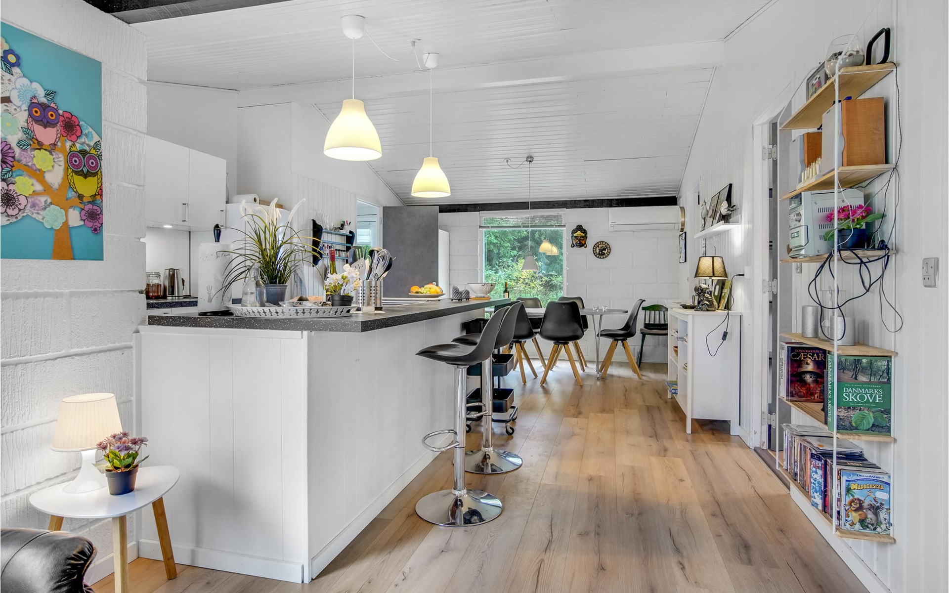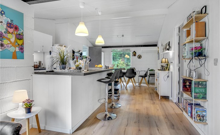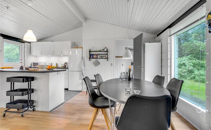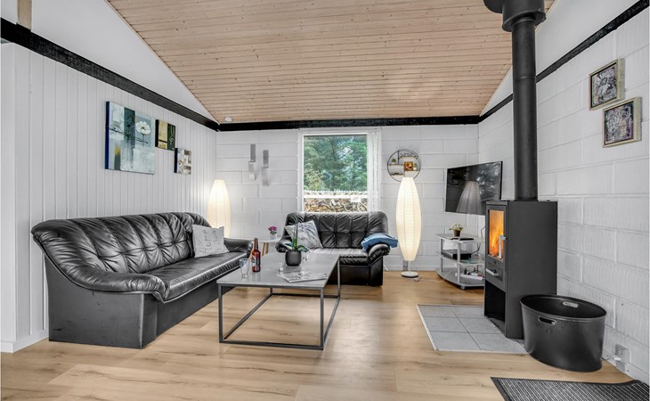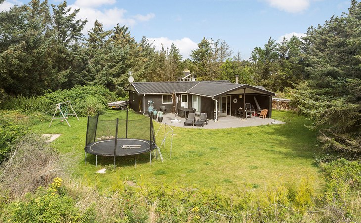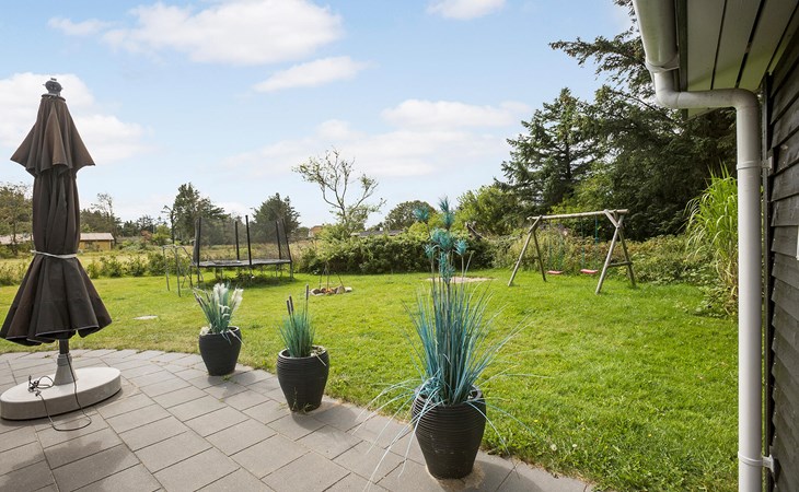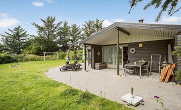 Ein schönes, etwas abseits gelegenes Ferienhaus an einer ruhigen Straße. Hier können Sie nach einem Ferientag voller Aktivität in Jütland, die Ruhe auf der Südterrasse genießen. Das Haus ist mit modernen und bequemen Möbeln eingerichtet und hat zum Wohnzimmer hin eine offene Küche mit Kücheninsel und Barstühlen. Drei helle Schlafzimmer bieten genug Platz für die ganze Familie. In der Nähe finden Sie viel Unterhaltung, darunter Tennis und Golf. Die kleinen Gäste können sich im Garten auf eine Schaukel und einen Sandkasten freuen. Nach einem langen Spaziergang an der Küste, lädt die Sauna zum relaxen ein.