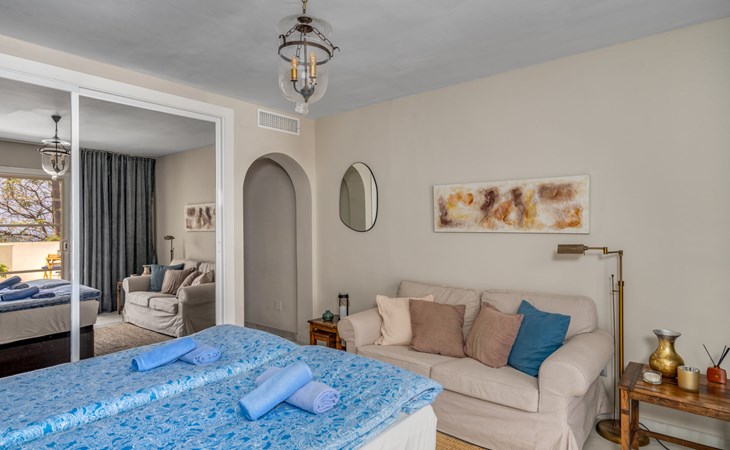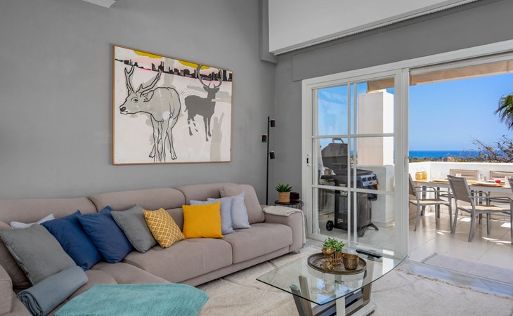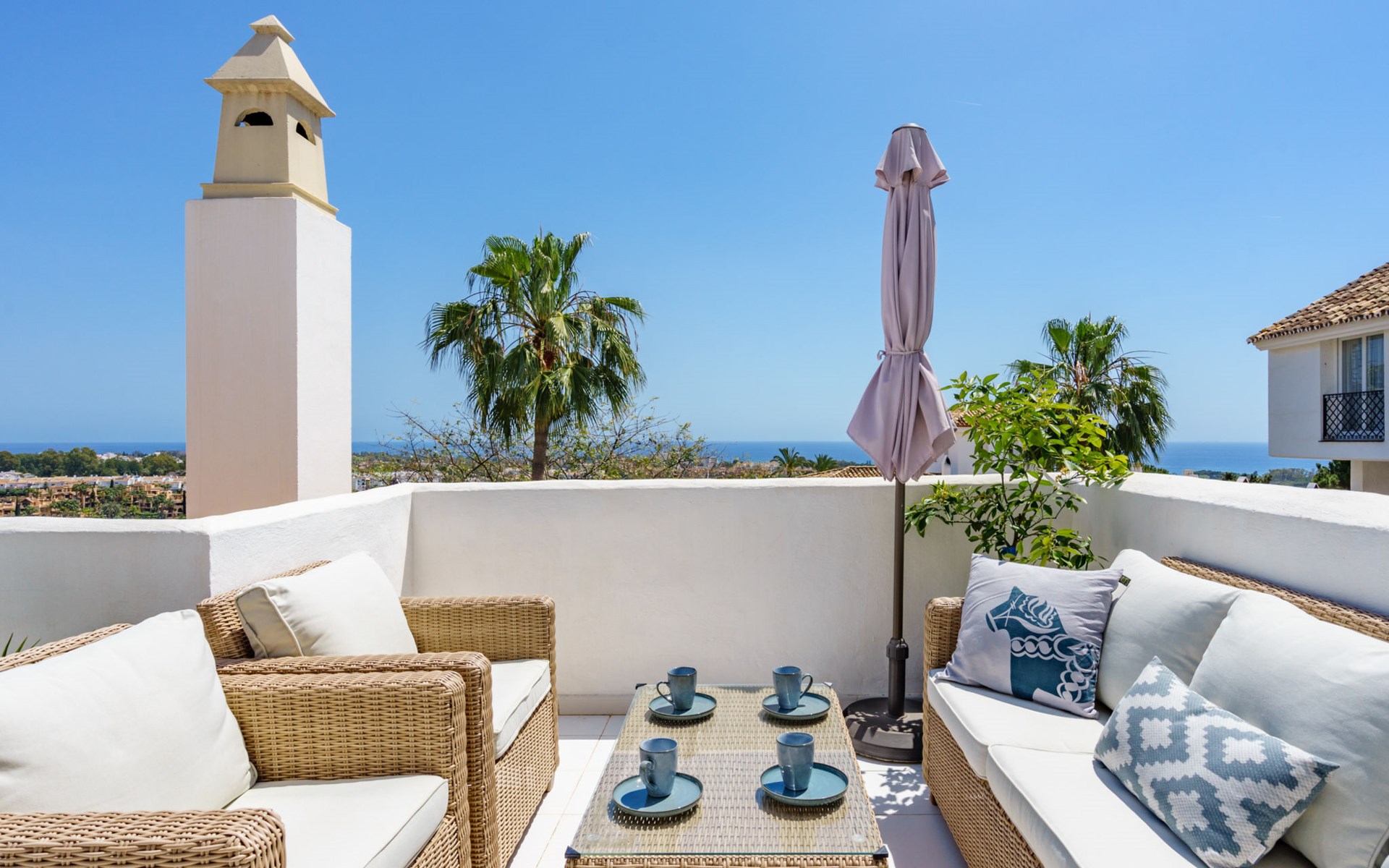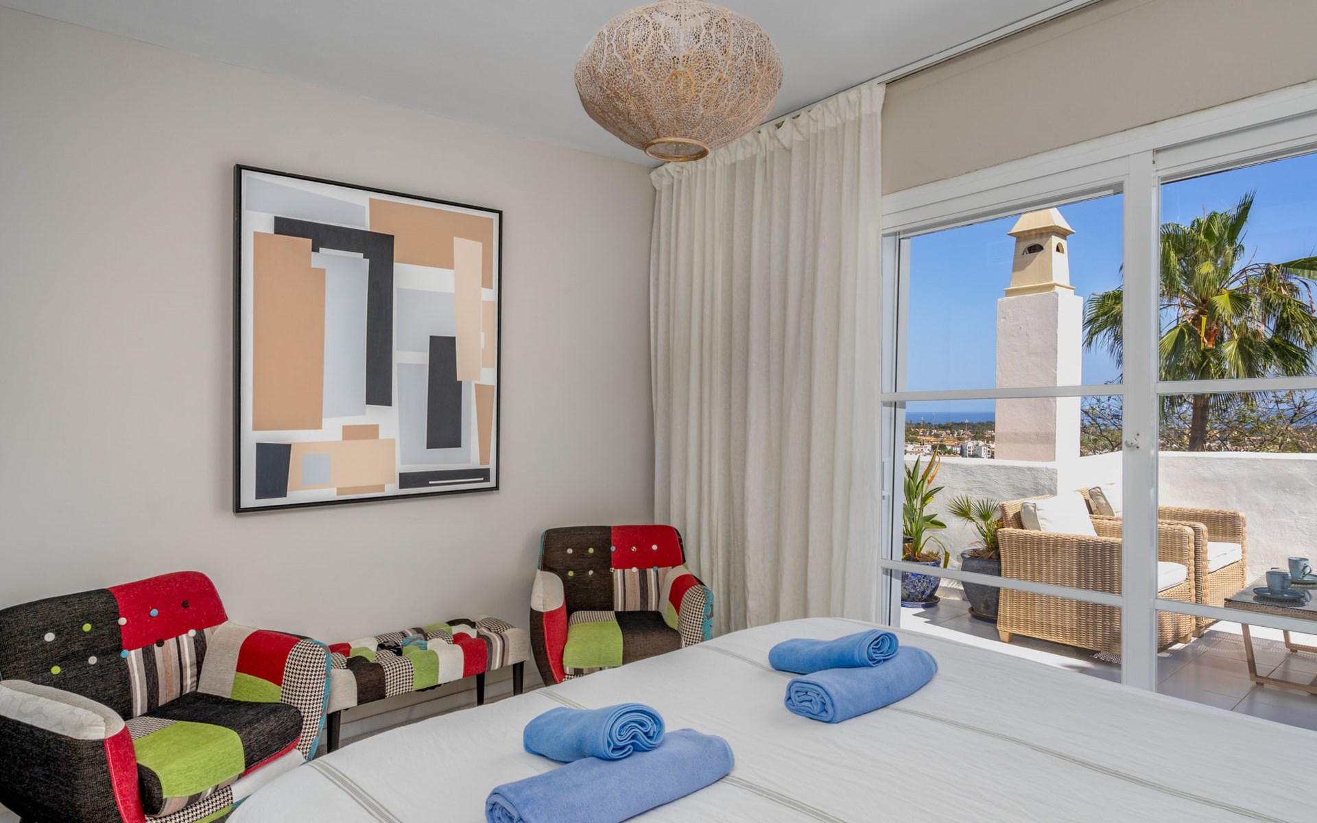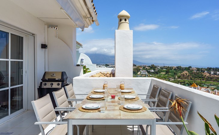 El paraiso Alto: Appartementhaus "El paraiso de Estepona", auf 3 Stockwerken, einseitig angebaut. Im Ortsteil El Paraiso, ruhige, sonnige Lage, 5 km vom Meer, 5.4 km vom Strand. Zur Mitbenutzung: Schwimmbad (20 x 10 m, saisonale Verfügbarkeit: 01.Jan. - 31.Dez. Öffnungszeiten Schwimmbad: 09:00-22:00) mit Innentreppe. Kinderbecken, Aussendusche, Parkplatz beim Haus. Lebensmittelgeschäft 900 m, Supermarkt 3 km, Restaurant 100 km, Bushaltestelle "Isdabe" 2.5 km, Sandstrand 5 km. Golfplatz (18 Loch) 900 m. Bitte beachten: Fahrzeug empfohlen. Der Besitzer akzeptiert keine Jugendgruppen. Die Nachbarschaft ist sehr lärmempfindlich. Ruhe und gutes Benehmen wird erwartet.