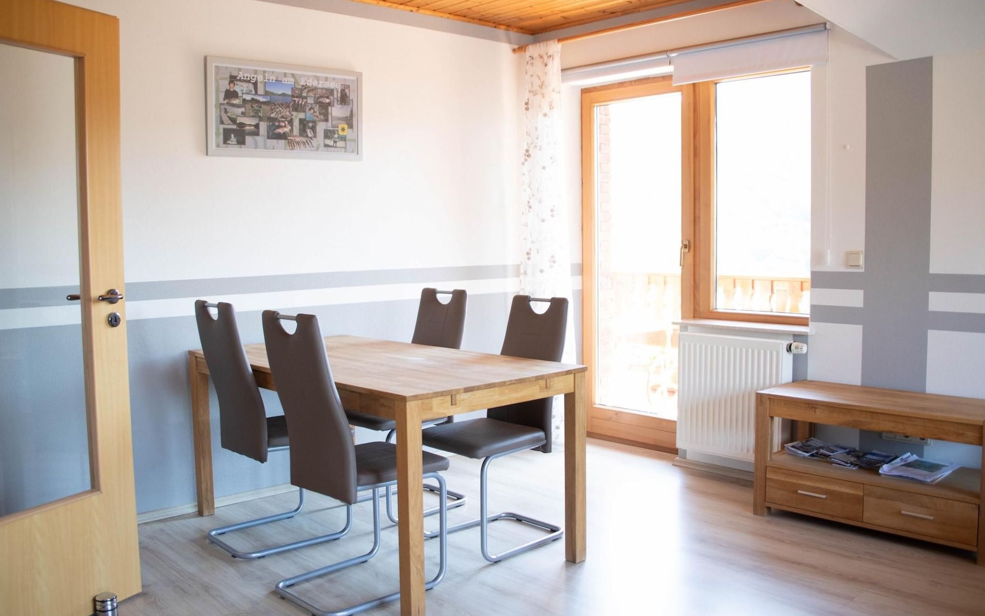 Der Balkon lädt zu entspannten Stunden im Freien ein, wobei das Grillen hier nicht gestattet ist (großzügiger Balkon wird mit Nachbarferienwohnung geteilt). Der Edersee und der angrenzende Nationalpark Kellerwald-Edersee bieten ein vielfältiges Angebot an Aktivitäten für Natur- und Aktivurlauber. In nur 300 - 500 Meter Entfernung (5 Gehminuten) von der Ferienwohung liegt der Edersee mit der Edertal-Sperrmauer, der nicht nur zu Spaziergängen, sondern auch zu Wassersporativitäten einlädt: Surfen, Segeln, Kanufahren, Kajakfahren, Tauchen und Angeln sind hier beliebte Freizeitaktivitäten. Windsurfer finden an verschiedenen Buchten ideale Bedingungen, und mehrere Surfschulen bieten Kurse für Anfänger und Fortgeschrittene an (Rehbach ca. 3km entfernt).