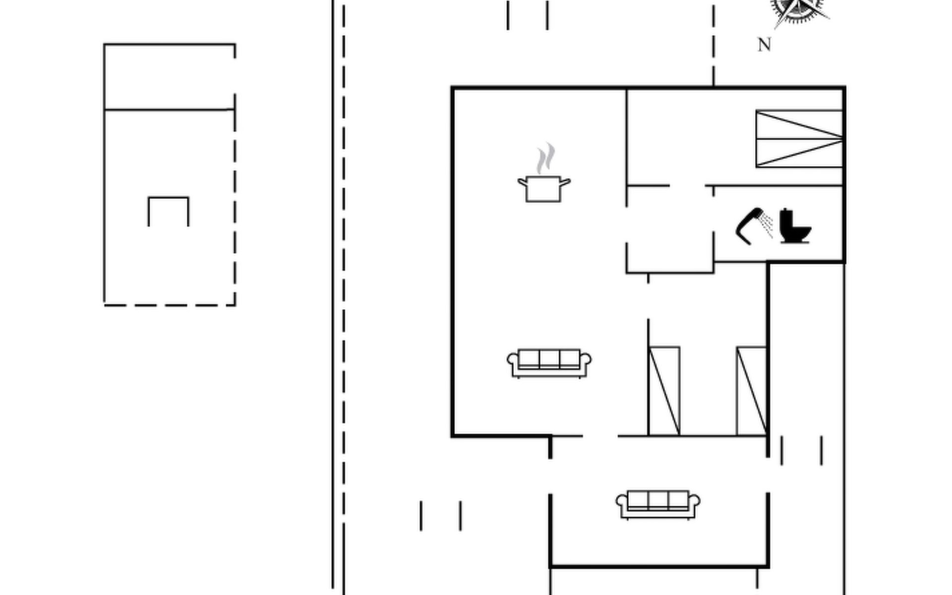 Einfamilienhaus, Baujahr 1950. 250 m vom Meer. Zur Alleinbenutzung: naturbelassenes Grundstück 183 m2. Im Hause: Waschmaschine. Parkplatz beim Haus. Carport. Lebensmittelgeschäft 1.1 km. Der Besitzer akzeptiert keine Jugendgruppen.