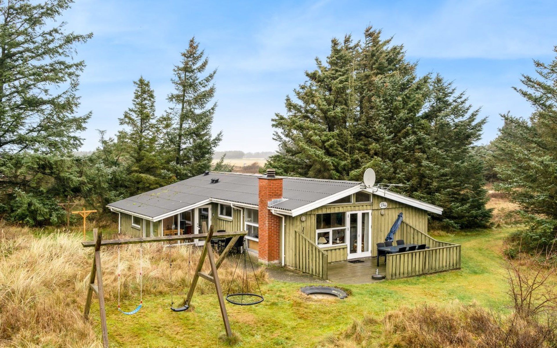 Einfamilienhaus, Baujahr 1977. 400 m vom Meer. Zur Alleinbenutzung: naturbelassenes Grundstück 2'870 m2. Kinderspielplatz (Schaukel). Im Hause: Sauna, Waschmaschine, Wäschetrockner. Parkplatz beim Haus. Lebensmittelgeschäft 500 m.