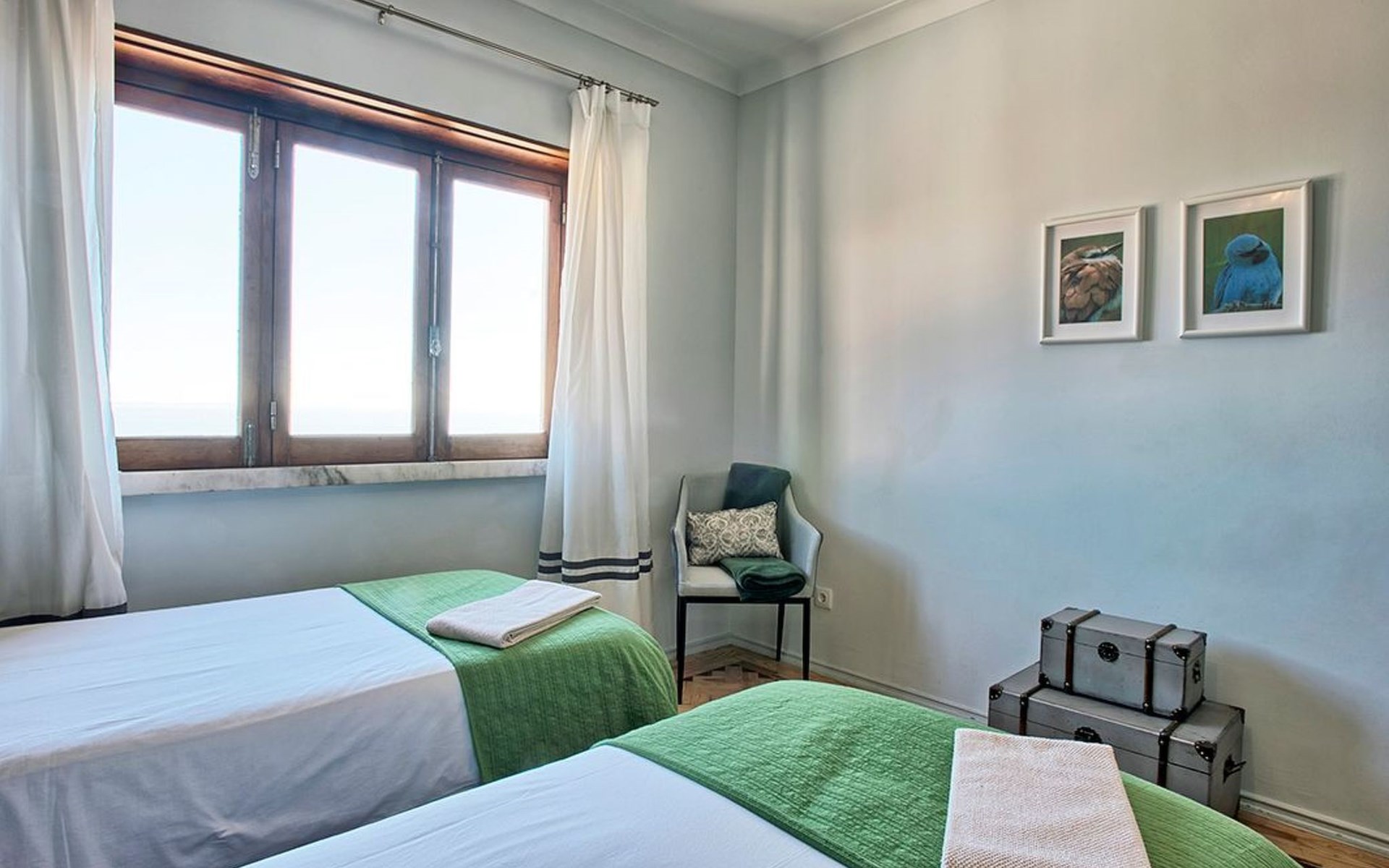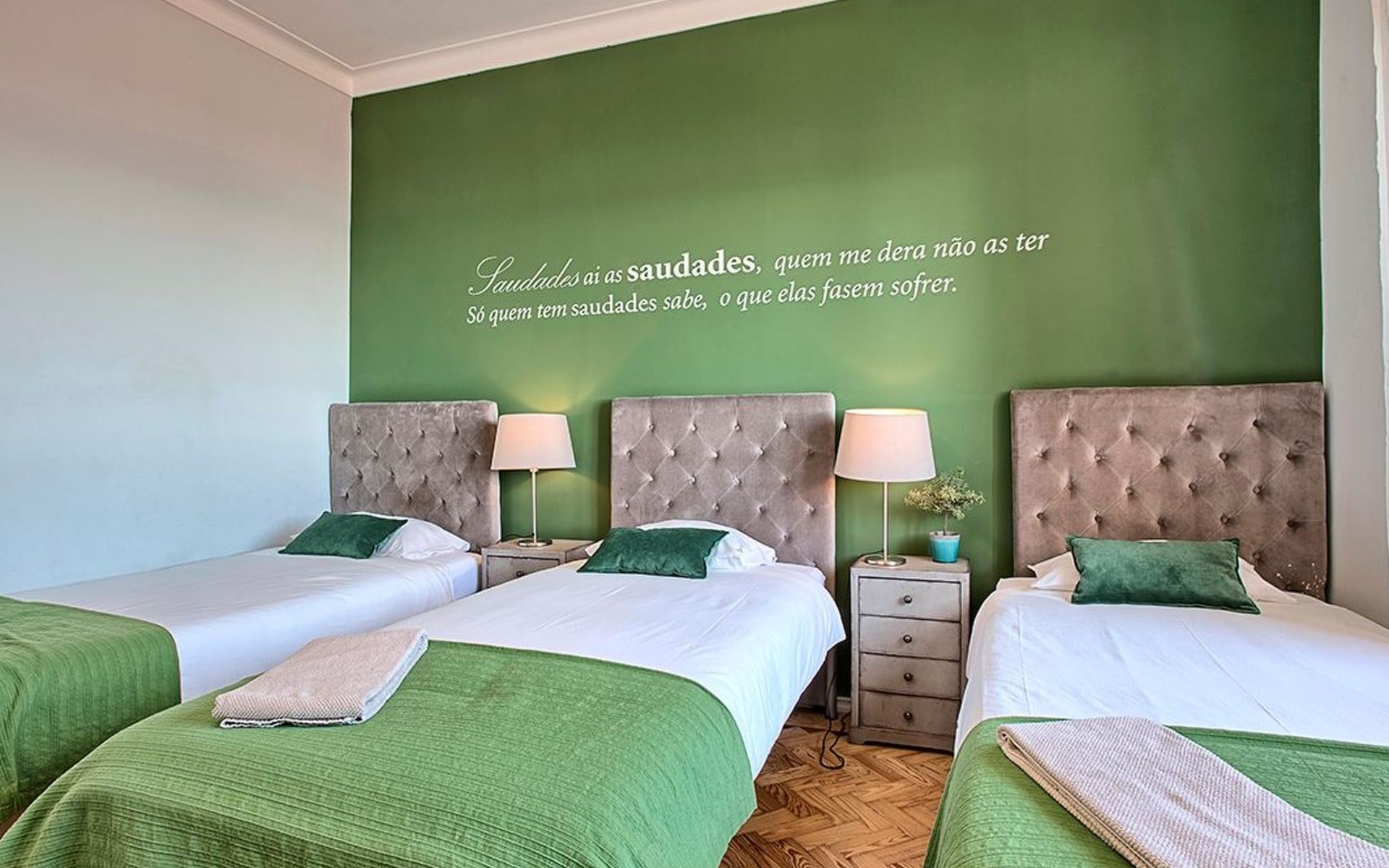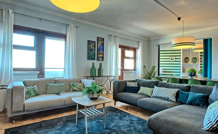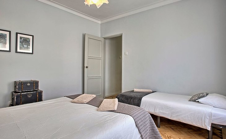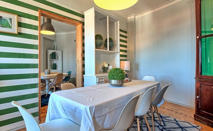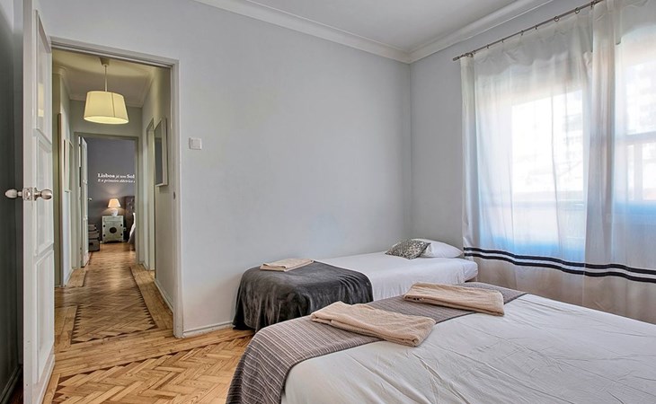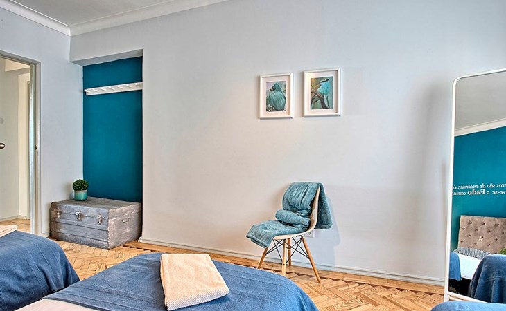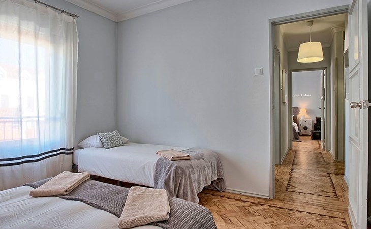 Der Reiz dieser Wohnung erstreckt sich auch auf die Außenanlagen, zu denen drei charmante Seitenbalkone gehören. Einer dieser Balkone bietet den Gästen einen malerischen Blick auf den Fluss und bildet die perfekte Kulisse für einen ruhigen Morgenkaffee oder einen entspannten Abend. Grillen ist zwar nicht erlaubt, aber die Balkone bieten einen frischen Hauch von authentischer Lissabonner Atmosphäre und verleihen Ihrem Aufenthalt eine besondere Note.