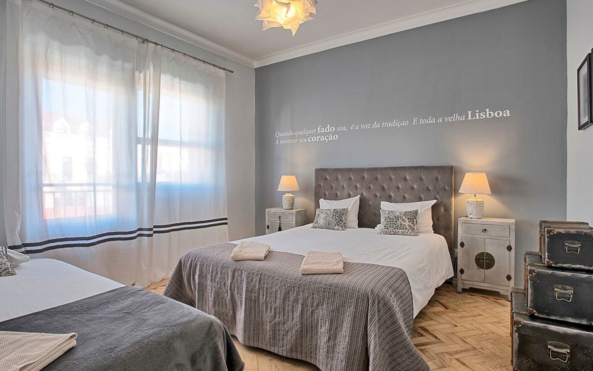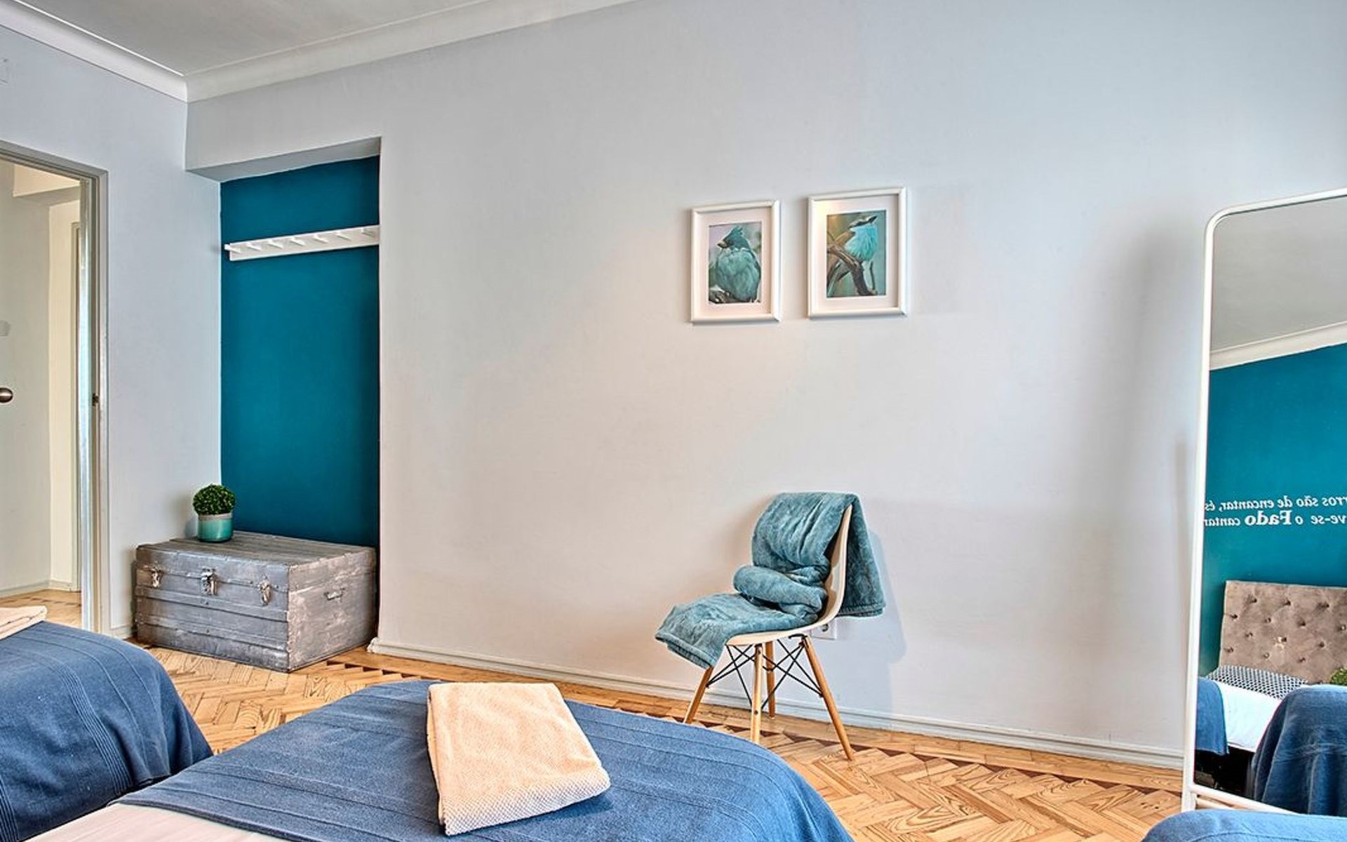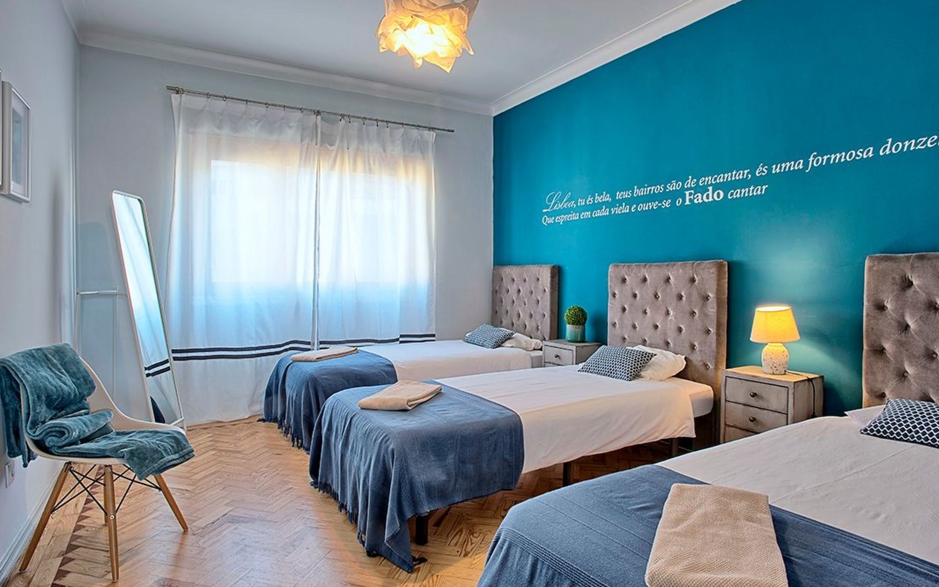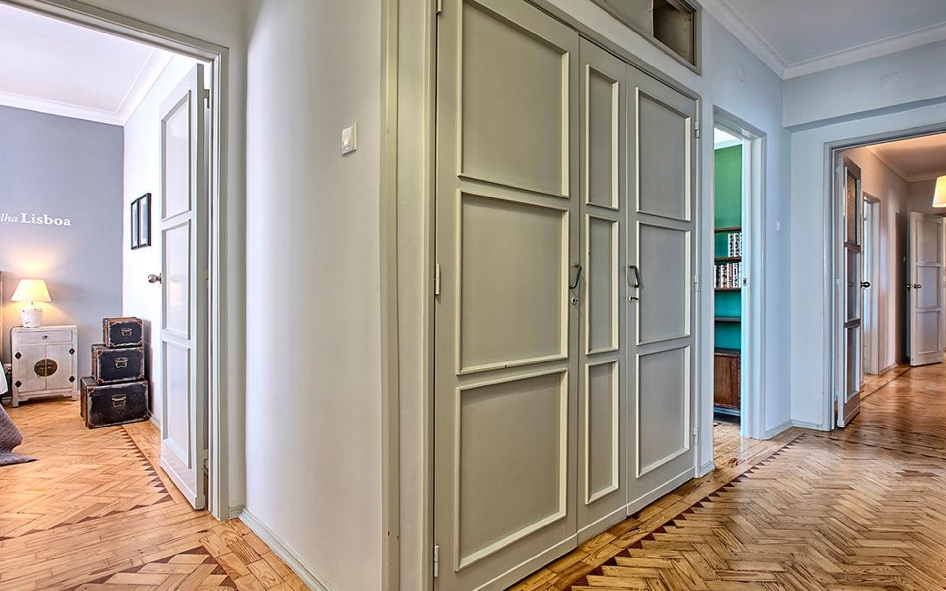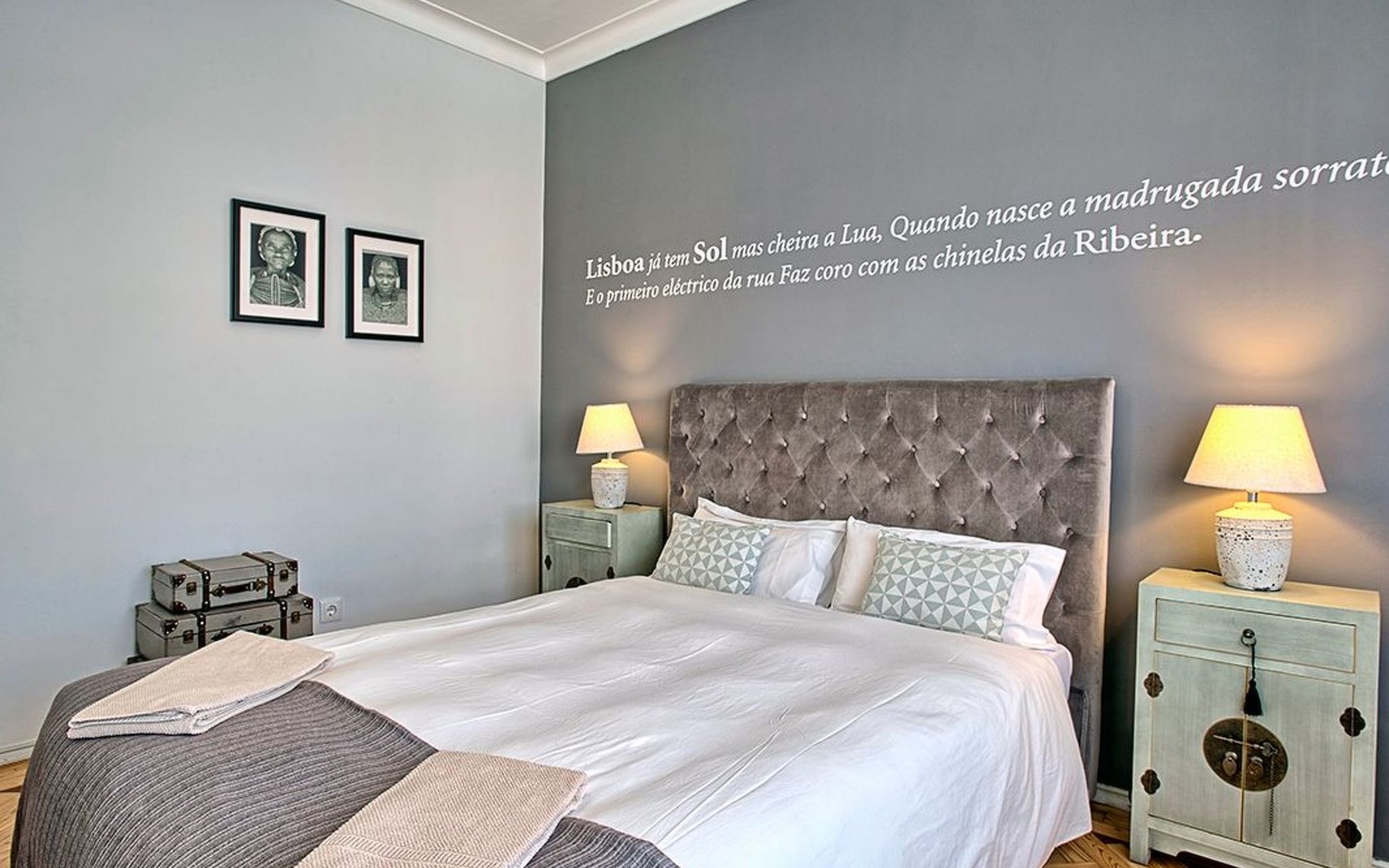 Der Reiz dieser Wohnung erstreckt sich auch auf die Außenanlagen, zu denen drei charmante Seitenbalkone gehören. Einer dieser Balkone bietet den Gästen einen malerischen Blick auf den Fluss und bildet die perfekte Kulisse für einen ruhigen Morgenkaffee oder einen entspannten Abend. Grillen ist zwar nicht erlaubt, aber die Balkone bieten einen frischen Hauch von authentischer Lissabonner Atmosphäre und verleihen Ihrem Aufenthalt eine besondere Note.