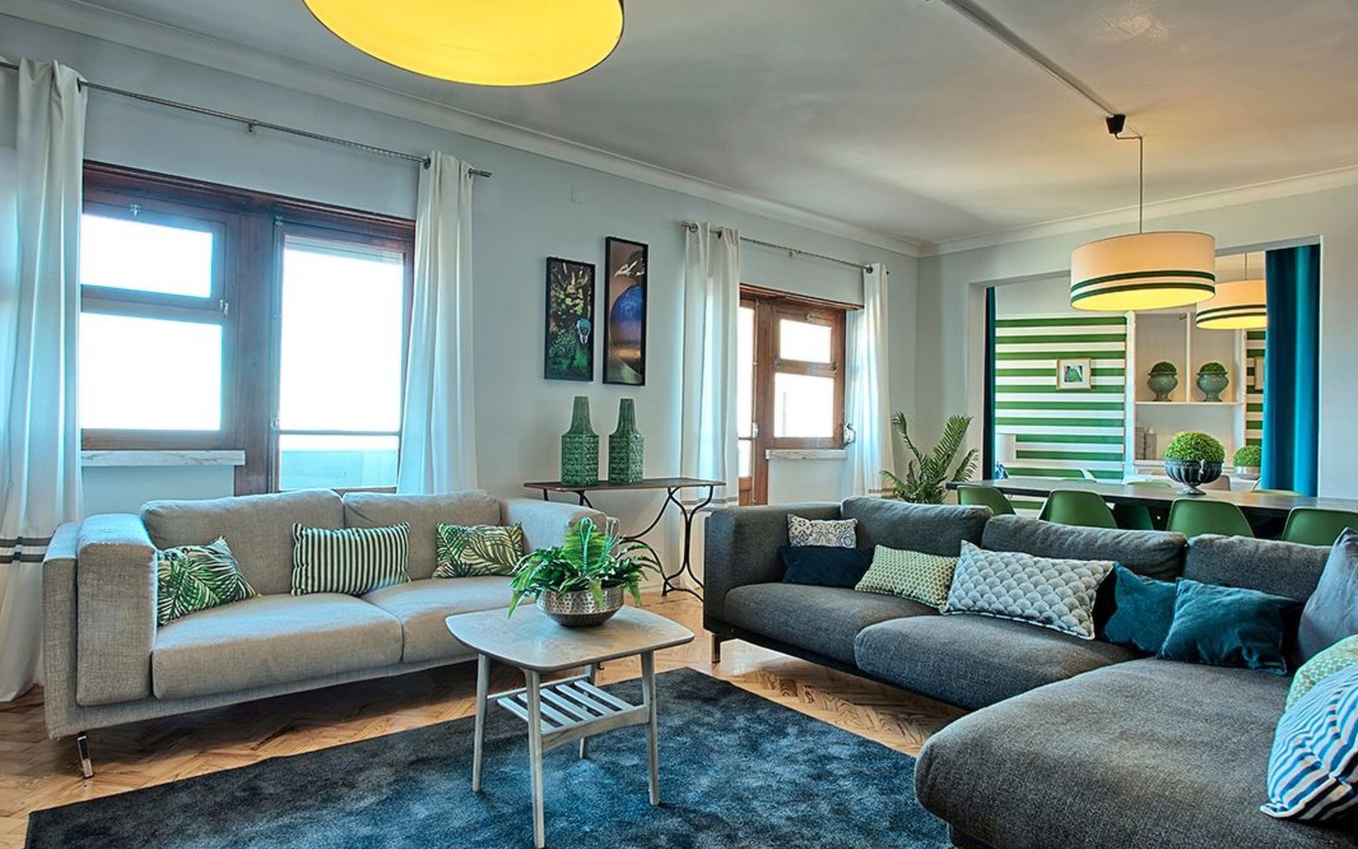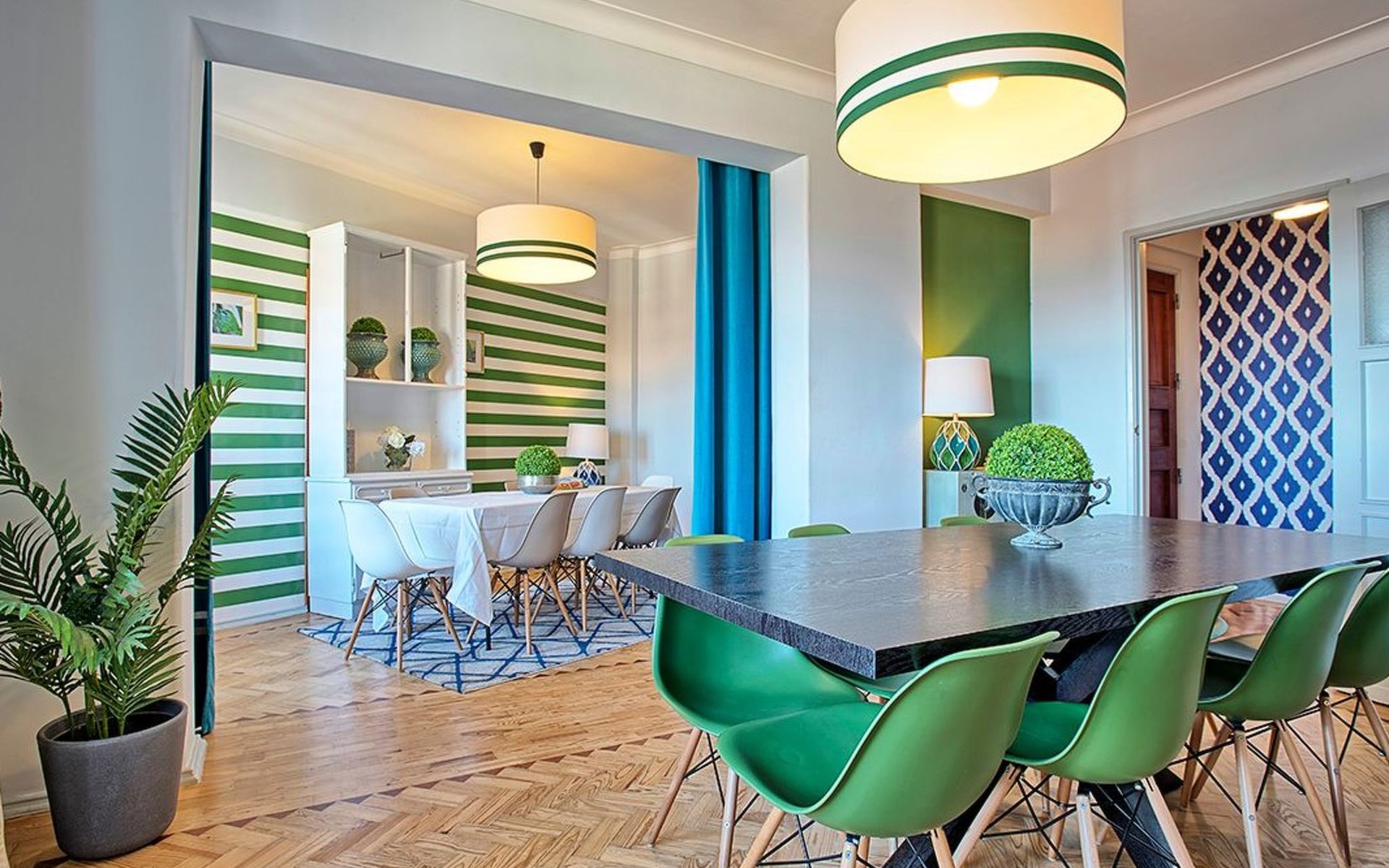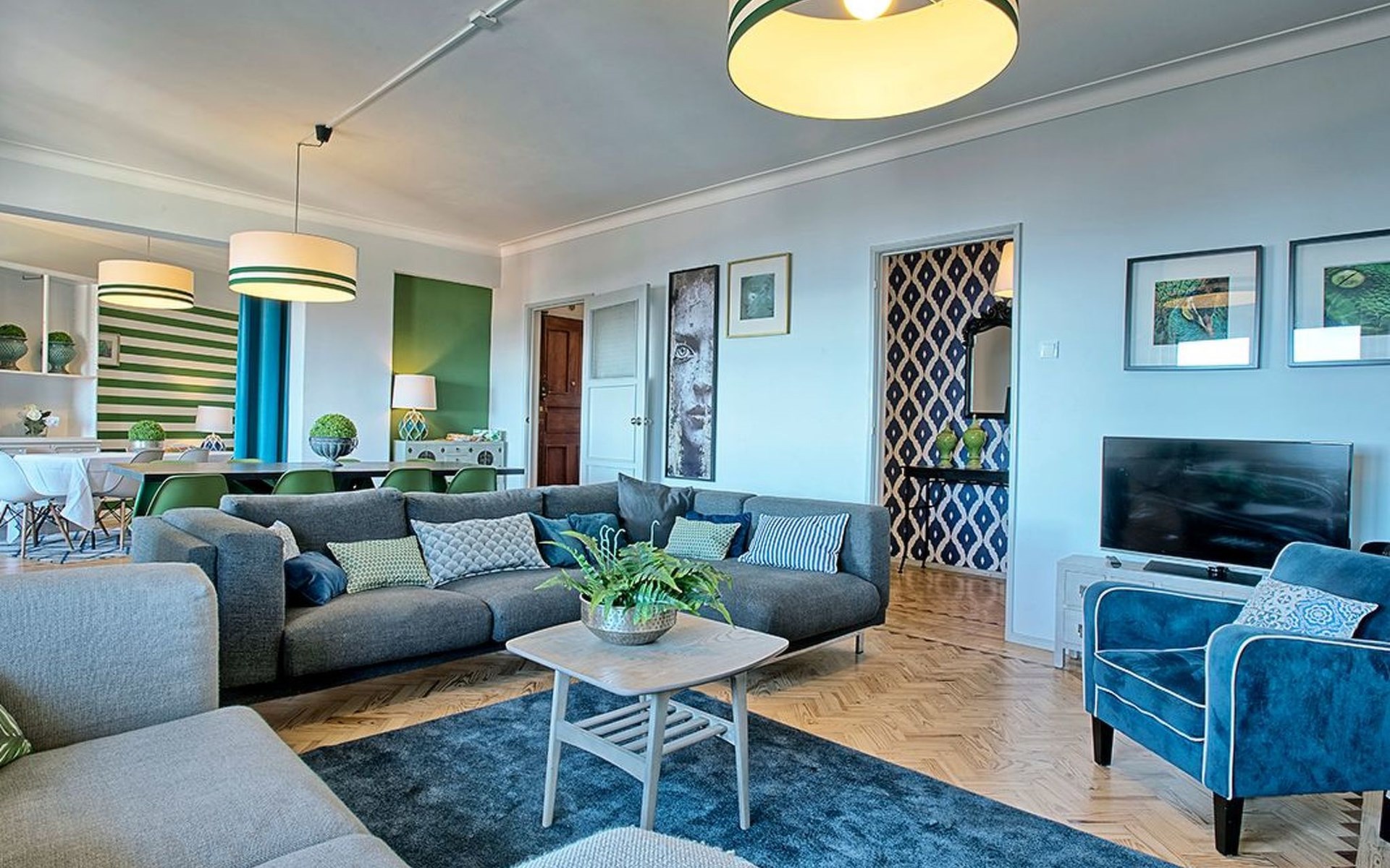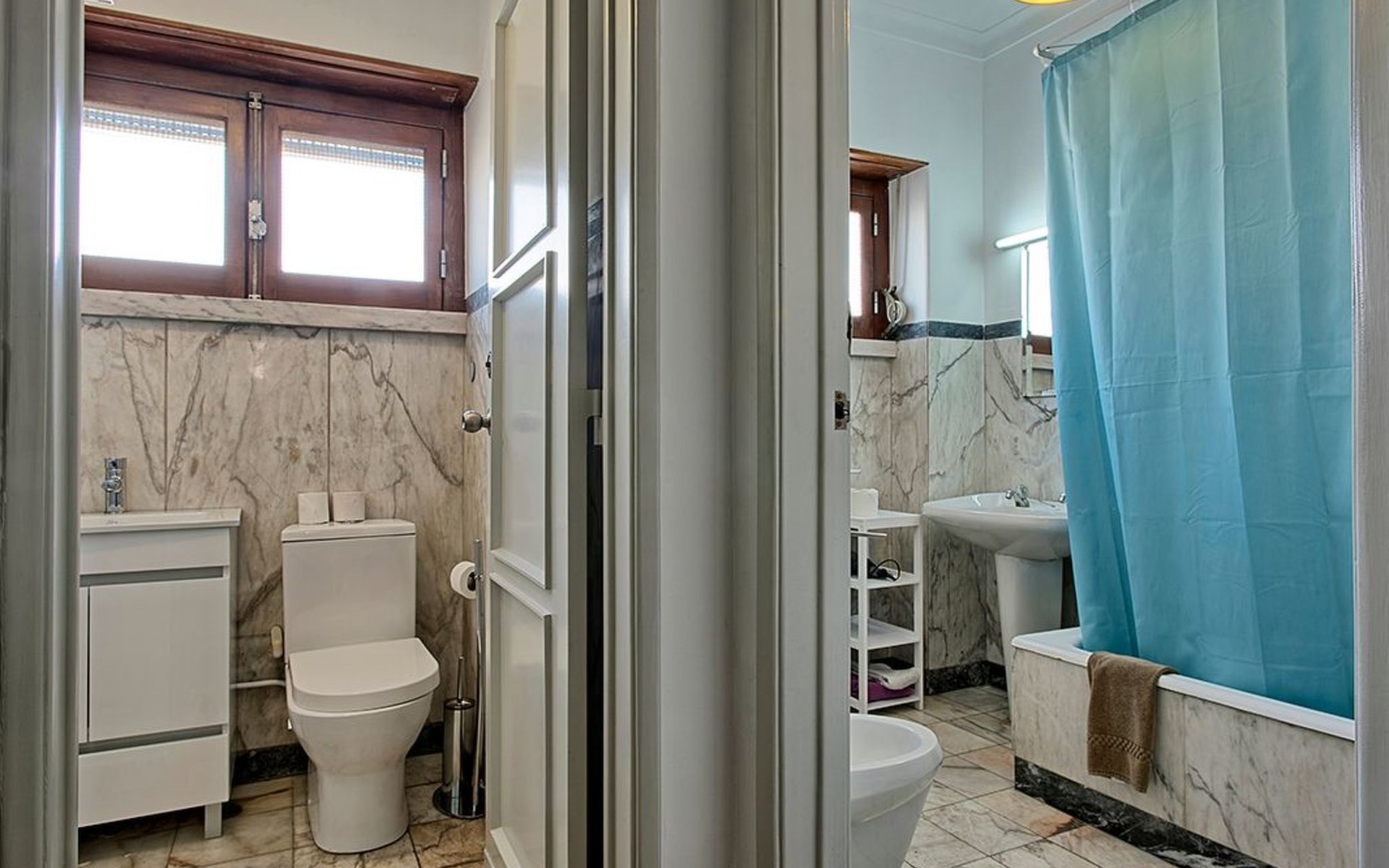 Der Reiz dieser Wohnung erstreckt sich auch auf die Außenanlagen, zu denen drei charmante Seitenbalkone gehören. Einer dieser Balkone bietet den Gästen einen malerischen Blick auf den Fluss und bildet die perfekte Kulisse für einen ruhigen Morgenkaffee oder einen entspannten Abend. Grillen ist zwar nicht erlaubt, aber die Balkone bieten einen frischen Hauch von authentischer Lissabonner Atmosphäre und verleihen Ihrem Aufenthalt eine besondere Note.