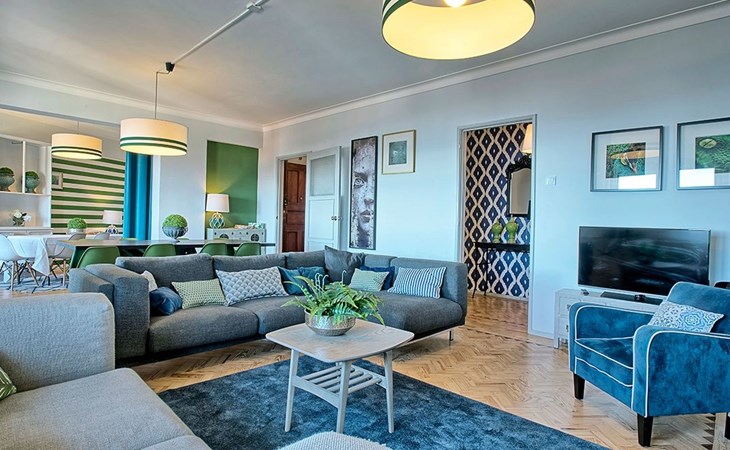 In der Wohnung erwartet die Gäste eine Fülle von Annehmlichkeiten, die ihnen zur Verfügung stehen. Das Innere bietet einen großen Wohnraum, der zum Entspannen und geselligen Beisammensein einlädt, sowie eine voll ausgestattete Küche für alle kulinarischen Bedürfnisse. Die Wohnung verfügt über eine exklusive Waschmaschine, eine Filterkaffeemaschine für den morgendlichen Kaffee, einen Geschirrspüler, um die Reinigung zu vereinfachen, einen Wasserkocher und zwei Ventilatoren, die für ein angenehmes Raumklima sorgen. Das Vorhandensein von drei kompletten Badezimmern erhöht den Komfort für die Gäste und sorgt für einen reibungslosen und komfortablen Aufenthalt für alle.
