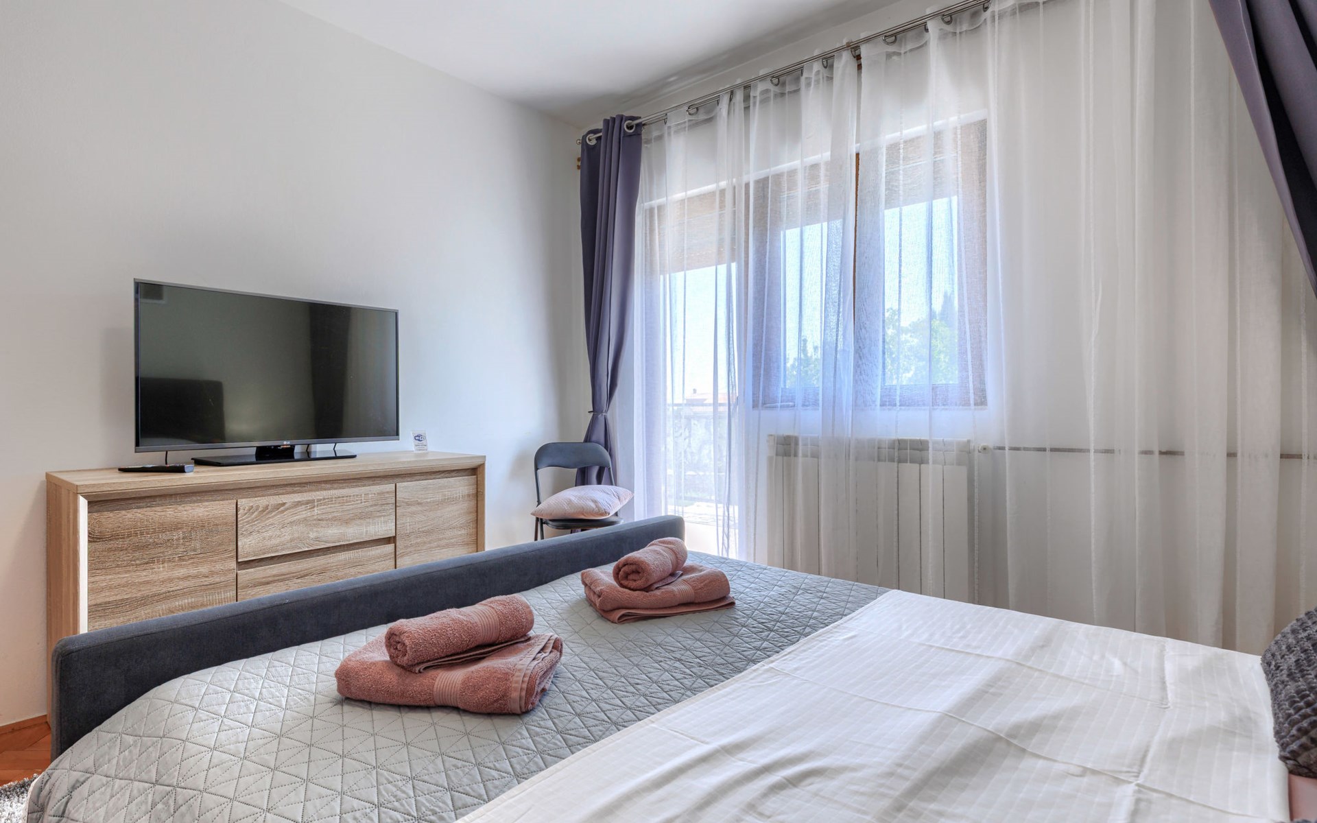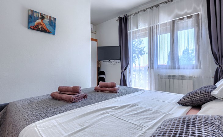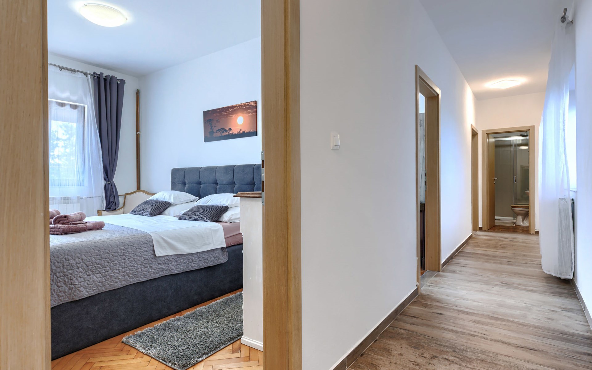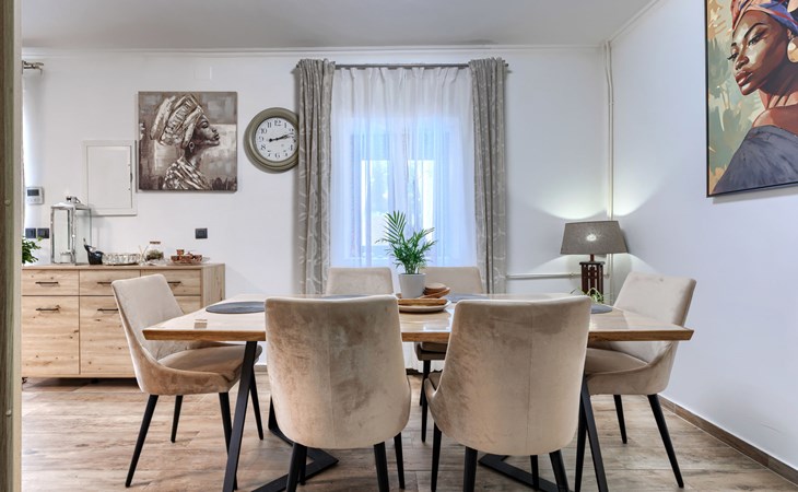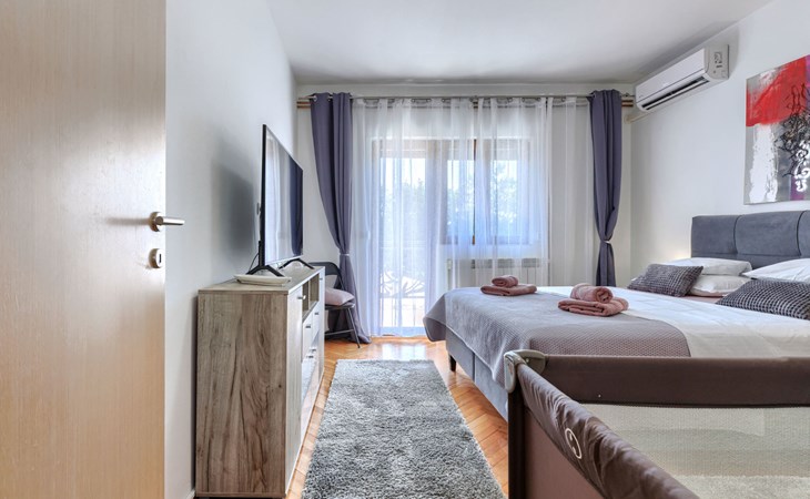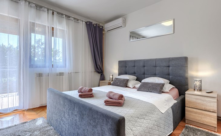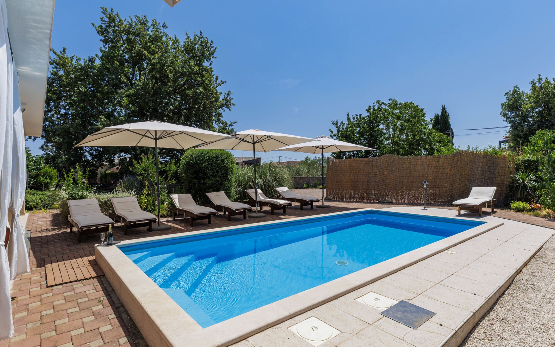 Marčana 11 km von Pula: Gemütliches Einfamilienhaus "Deno&Melly", auf 2 Stockwerken. Im Weiler Krvavići, 3 km vom Zentrum von Marčana, sonnige Lage, 10 km vom Meer. Zur Alleinbenutzung: Grundstück 2'000 m2 (eingezäunt), Garten mit Rasen und Pflanzen, Schwimmbad eckig (7 x 4 m, 140 cm tief, saisonale Verfügbarkeit: 01.Mar. - 01.Dez.) mit Innentreppe. Aussendusche, Sprudelbad, Terrasse (25 m2), Gartenmöbel, Grill, Poolpflege durch den Besitzer/Gärtner. Im Hause: Internetzugang, Sauna, Waschmaschine, Wäschetrockner. Parkplatz (für 3 Autos) beim Haus auf dem Grundstück. Einkaufsgeschäft 3 km, Restaurant 3 km, Bushaltestelle 3 km, Kieselstrand 10 km, Felsstrand 10 km. Der Besitzer akzeptiert keine Jugendgruppen.