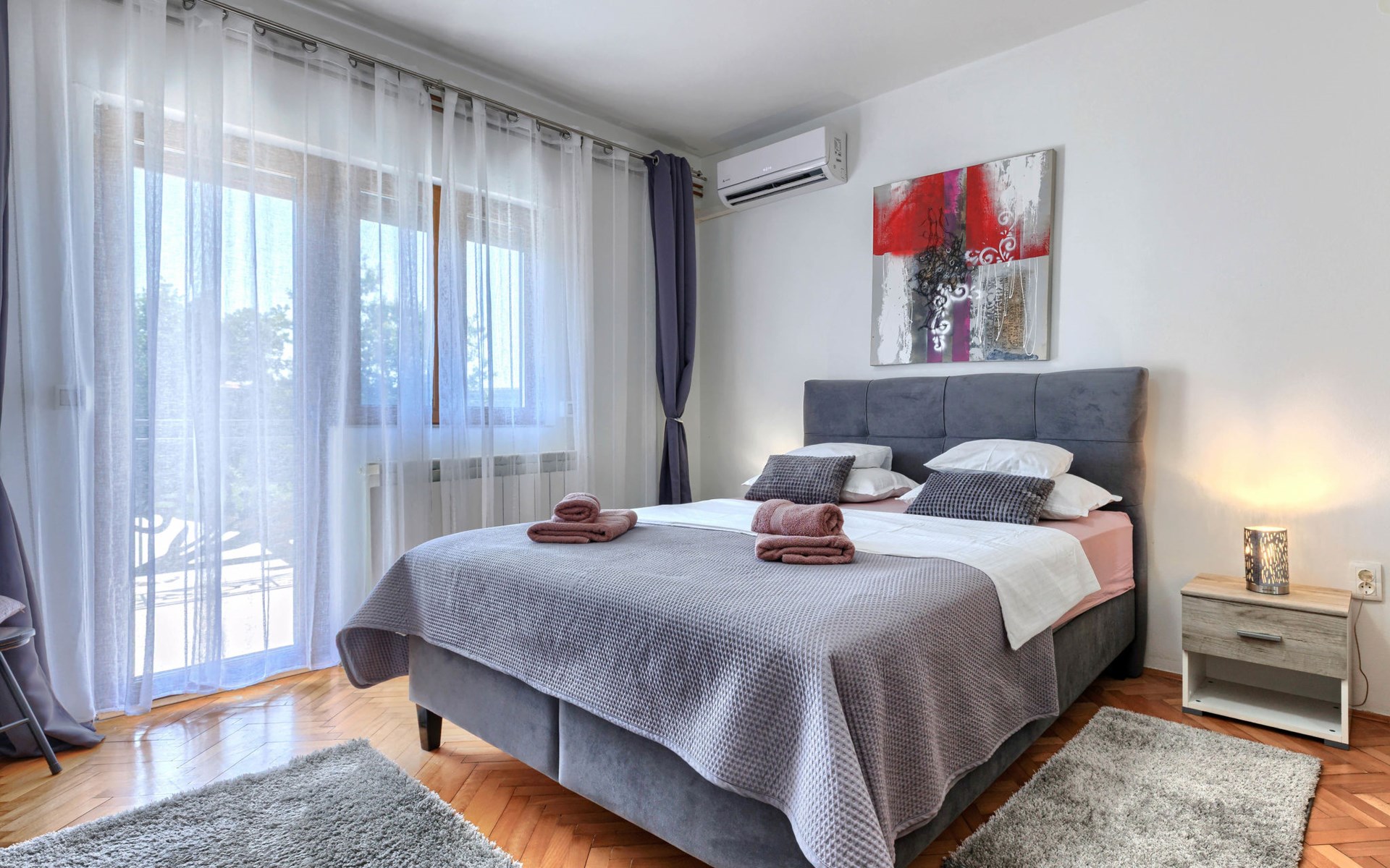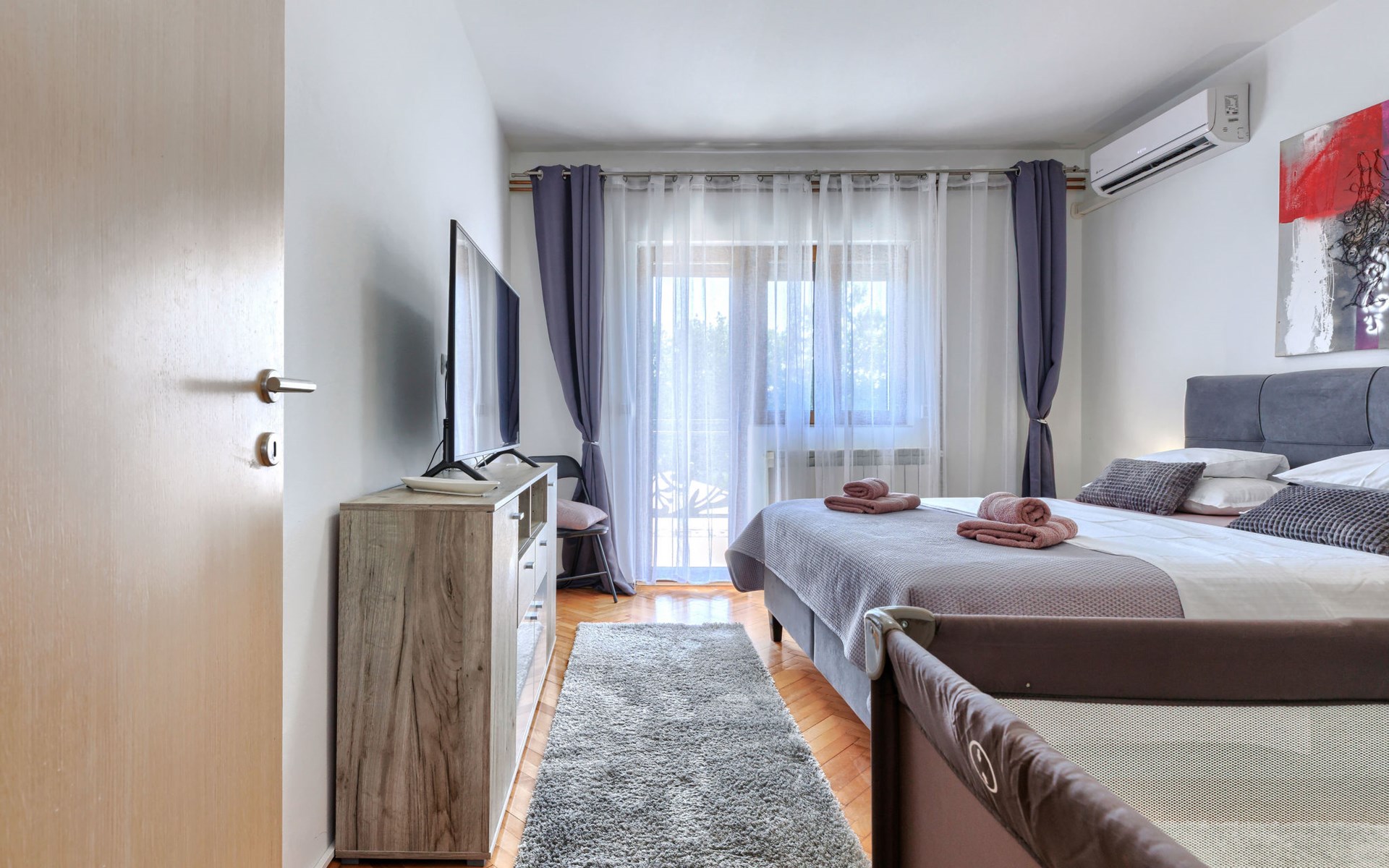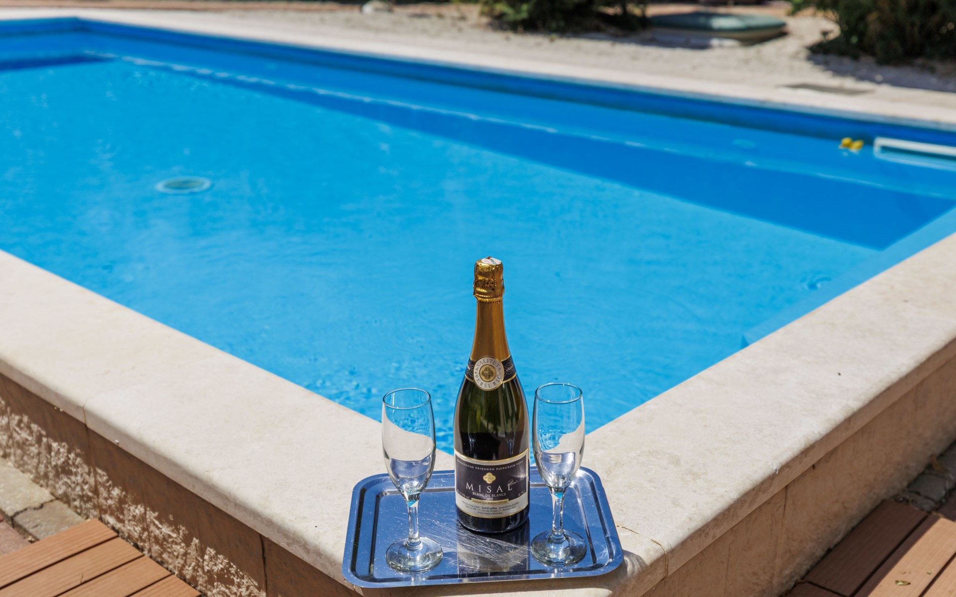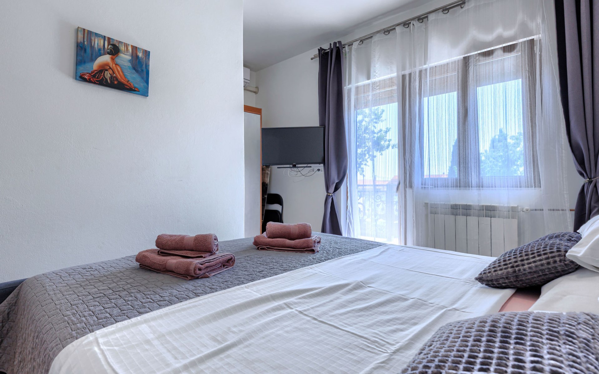 Marčana 11 km von Pula: Gemütliches Einfamilienhaus "Deno&Melly", auf 2 Stockwerken. Im Weiler Krvavići, 3 km vom Zentrum von Marčana, sonnige Lage, 10 km vom Meer. Zur Alleinbenutzung: Grundstück 2'000 m2 (eingezäunt), Garten mit Rasen und Pflanzen, Schwimmbad eckig (7 x 4 m, 140 cm tief, saisonale Verfügbarkeit: 01.Mar. - 01.Dez.) mit Innentreppe. Aussendusche, Sprudelbad, Terrasse (25 m2), Gartenmöbel, Grill, Poolpflege durch den Besitzer/Gärtner. Im Hause: Internetzugang, Sauna, Waschmaschine, Wäschetrockner. Parkplatz (für 3 Autos) beim Haus auf dem Grundstück. Einkaufsgeschäft 3 km, Restaurant 3 km, Bushaltestelle 3 km, Kieselstrand 10 km, Felsstrand 10 km. Der Besitzer akzeptiert keine Jugendgruppen.