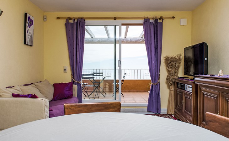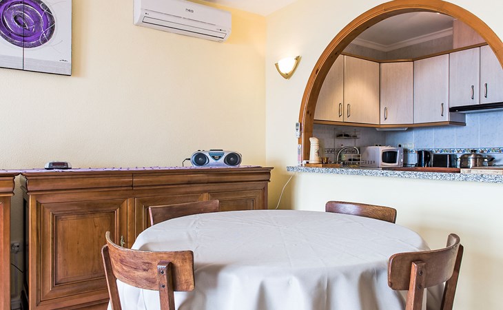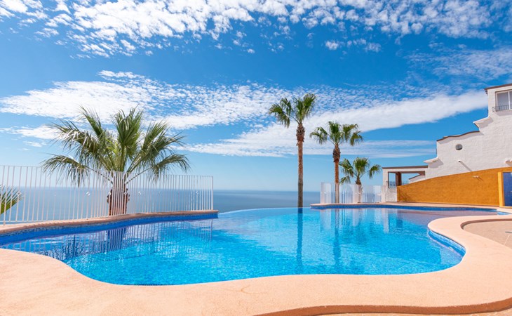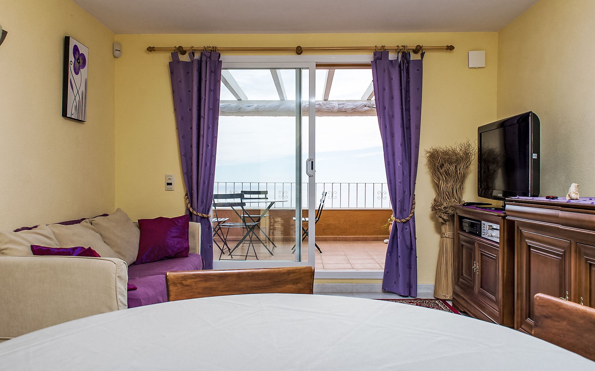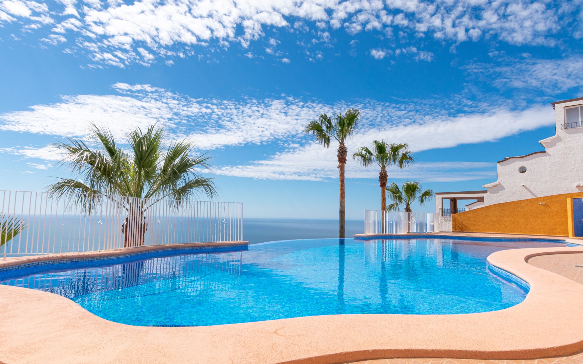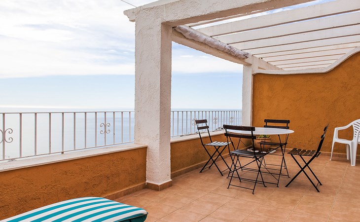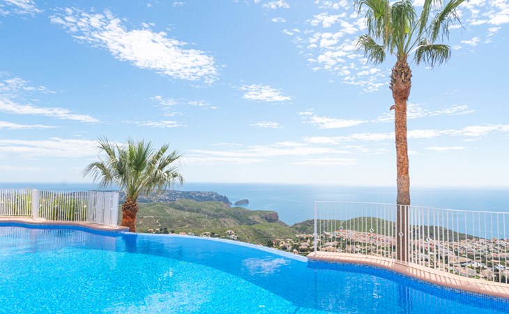 Benitachell: Feriensiedlung "Vista Mar", Baujahr 2008. Im Ortsteil Cumbre del Sol, ruhige, sonnige, erhöhte Lage, 3 km vom Meer. Zur Mitbenutzung: 2 Schwimmbäder (saisonale Verfügbarkeit: 01.Mar. - 30.Nov.) mit Innentreppe. Kinderbecken, Aussendusche, öffentliche Parkplätze auf der Strasse. Supermarkt 1 km, Einkaufszentrum 2 km, Restaurant 2 km, Bushaltestelle 6 km, Sandstrand "Arenal" 7 km, Badebucht 3 km. Bitte beachten: Fahrzeug empfohlen, kein Fahrstuhl vorhanden. Der Besitzer akzeptiert keine Jugendgruppen.