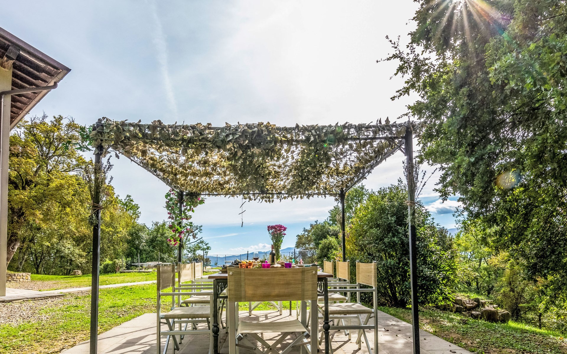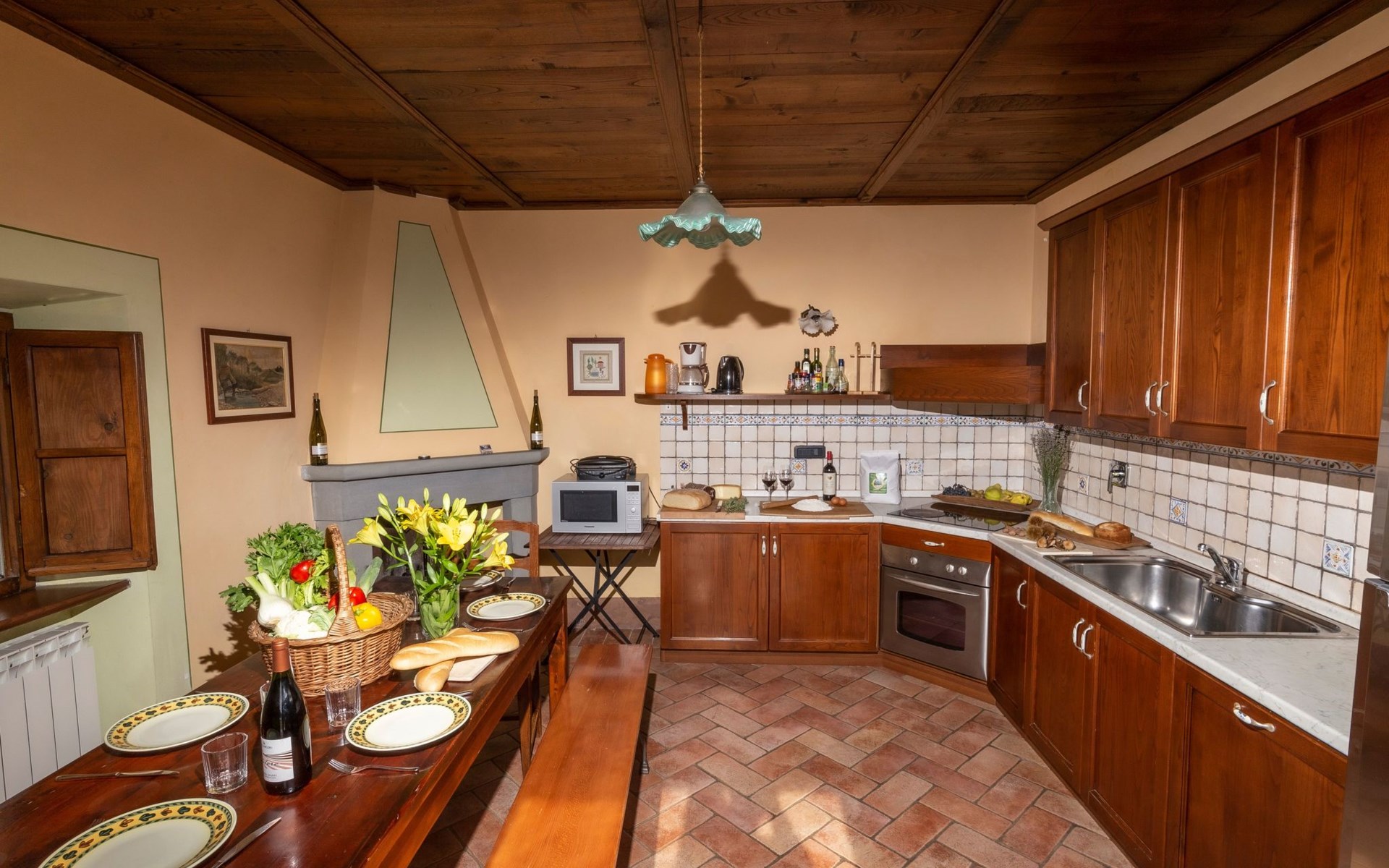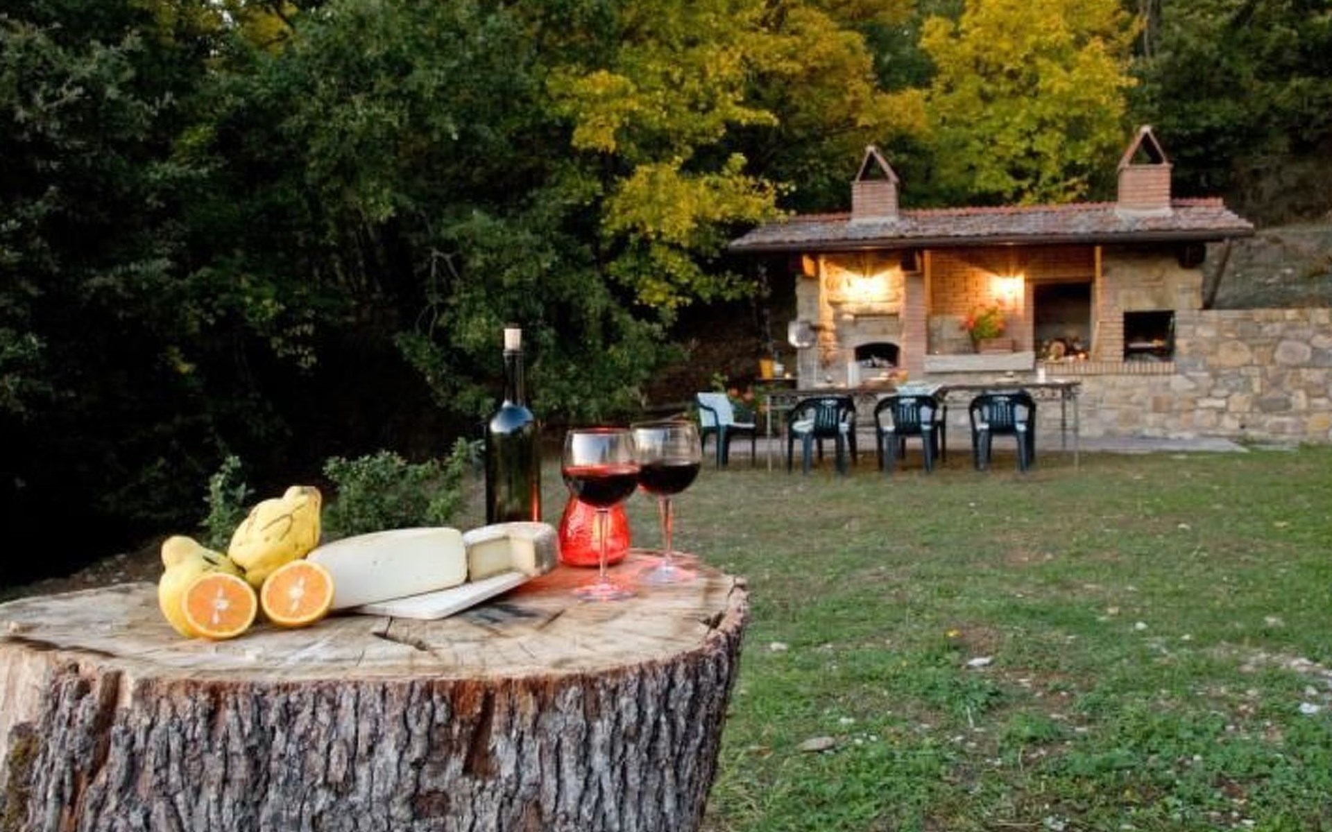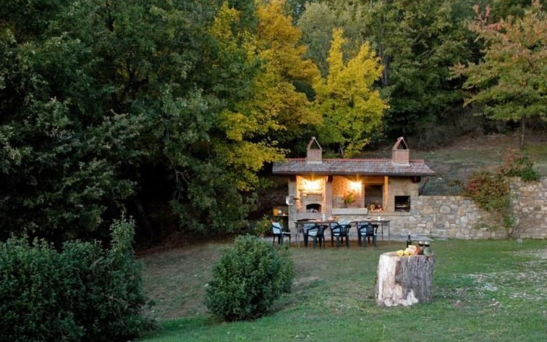 Im Außenbereich befindet sich der private Pool (5x11m) mit Innen- und Außenbeleuchtung, Dusche und Sonnenliegen (während der Zwischen- und Hochsaison geöffnet). Die Villa ist sehr hell und liegt sehr ruhig, umgeben von einem jahrhundertealten Eichenwald, in dem man Hirsche, Damhirsche und Rehe antreffen kann oder, je nach Jahreszeit, Pilze, Brombeeren oder Oliven sammeln kann. Deshalb ist die Villa der ideale Urlaubsort, an dem man umgeben von der Natur den Frieden genießen kann. Es gibt einen fantastischen gemauerten und überdachten Barbecue mit Beleuchtung, Grill, Holzofen zum Pizzabacken, Spüle mit Trinkwasser, Abstellflächen, Tisch und Stühlen, sodass man die Gerichte im Freien einnehmen und den herrlichen Ausblick auf das zauberhafte Tal Valle del Casentino genießen kann.
