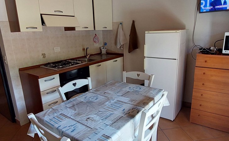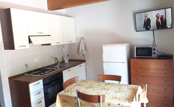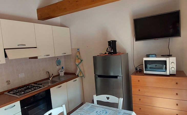 Die Einrichtung ist auf maximalen Komfort und Bequemlichkeit ausgelegt: Die Unterkunft besteht aus zwei gemütlichen Schlafzimmern, eines mit einem Doppelbett und das andere mit zwei Einzelbetten, ideal für eine Familie oder eine Gruppe von Freunden. Das Bad ist mit einer praktischen Dusche ausgestattet. Die funktionelle und gut ausgestattete Küche verfügt über einen Gasherd, einen Kühlschrank mit Gefrierfach und eine Mikrowelle - alles, was Sie für die Zubereitung leckerer Mahlzeiten benötigen. Zu den weiteren Annehmlichkeiten gehören ein Fernseher zur Unterhaltung und eine Waschmaschine, die Ihnen zur alleinigen Nutzung zur Verfügung steht, um Ihren Aufenthalt so unabhängig und komfortabel wie möglich zu gestalten.