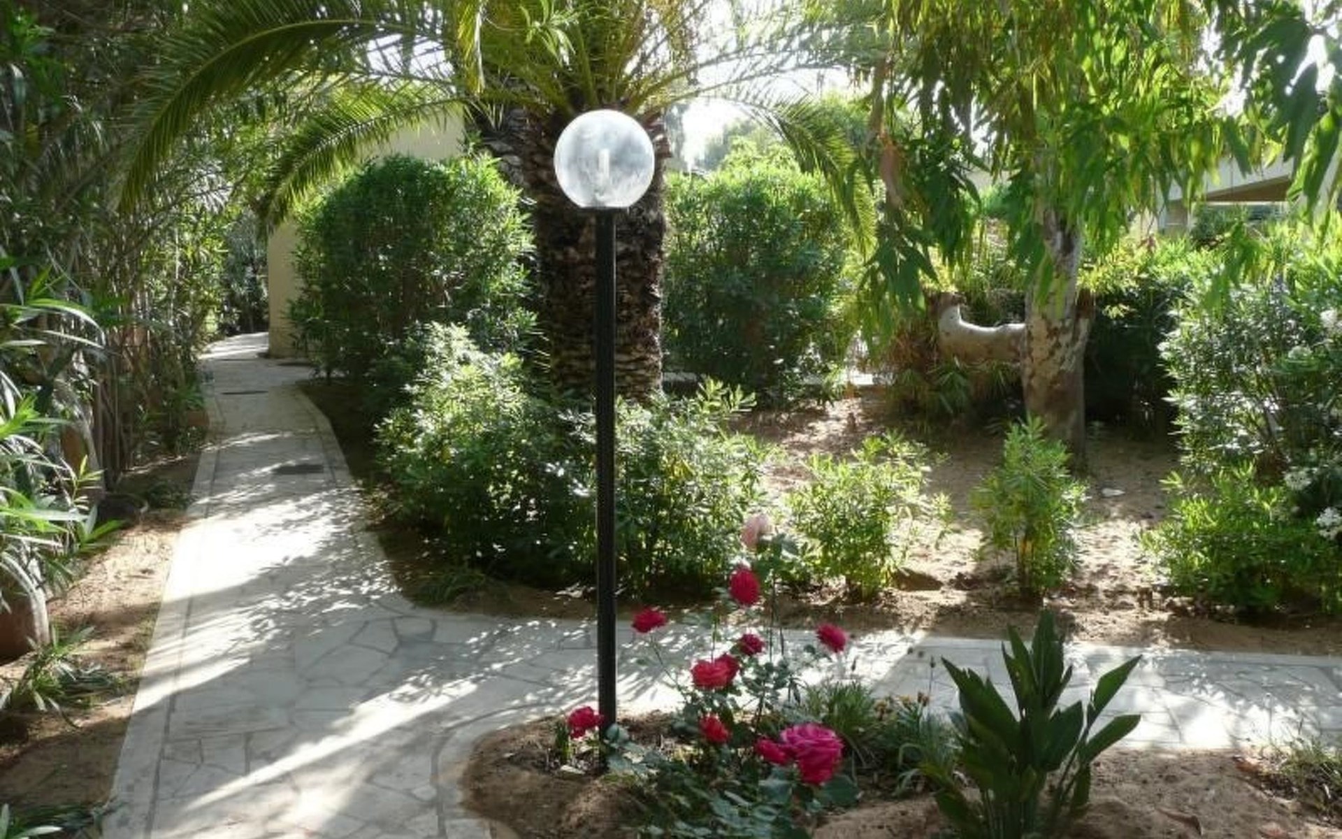 Die freistehenden Bungalows in der Parkanlage sind von blühenden Oleanderbüschen, Zitronen-, Orangen- und Feigenbäumen sowie von wunderschönen großen und kleinen Palmen umgeben.