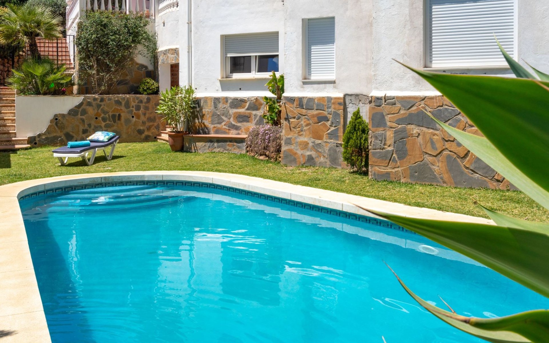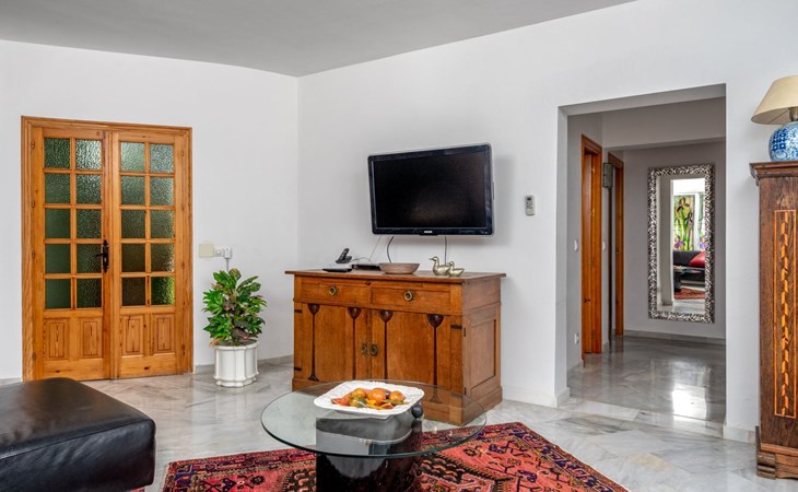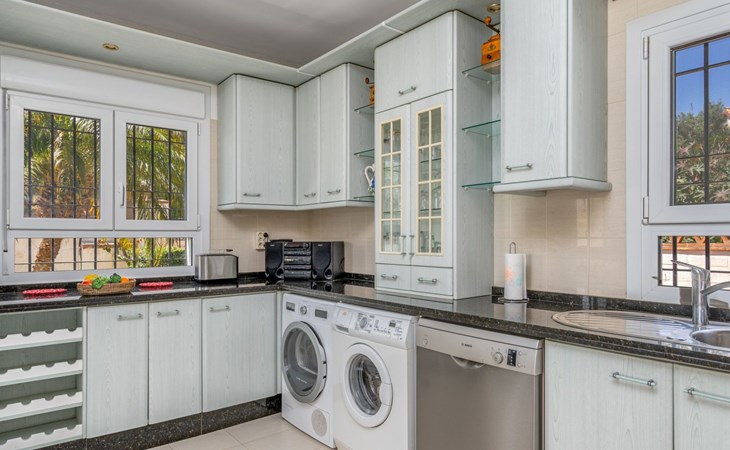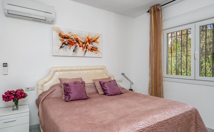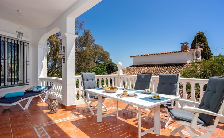 Benalmadena Costa: Gemütliche, komfortable Villa auf 2 Stockwerken. Situado en urbanizacion:Santana, ruhige Lage im Villenviertel, 1.9 km vom Meer, 1.9 km vom Strand. Zur Alleinbenutzung: Grundstück, Garten, Schwimmbad eckig (4 x 9 m, saisonale Verfügbarkeit: 01.Jan. - 31.Dez.). Dusche/WC im Poolbereich, Parkplatz beim Haus. Supermarkt 3 km, Restaurant 3 km, Bar 3 km, Bushaltestelle 300 m, Bahnstation 1.6 km. Sporthafen 8 km. Nahe gelegene Sehenswürdigkeiten: Golf Torrequebrada, Selwo Marina, Puerto Marina, Sea Life, Malaga 28 km, Fuengirola 10 km. Objekt geeignet für 6 Erwachsene. Der Besitzer akzeptiert keine Jugendgruppen. Bitte beachten: Die Schlüsselübergabe findet bei der Agentur Interhome in Torremolinos statt. Flugplatz 17 km vom Haus.