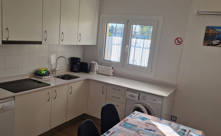 Das Haus verfügt über 2 Schlafzimmer, (1 mit einem Doppelbett (150×190) und ein weiteres mit zwei Einzelbetten (90×200), Flachbildfernseher, Essbereich und Küche mit Geschirrspüler und Mikrowelle. WLAN-Anschluss (kostenlos). Elektroherd mit 3 Flammen. Komplettes Badezimmer mit ebenerdiger Dusche, Waschbecken und WC. Bügelbrett und Bügeleisen.