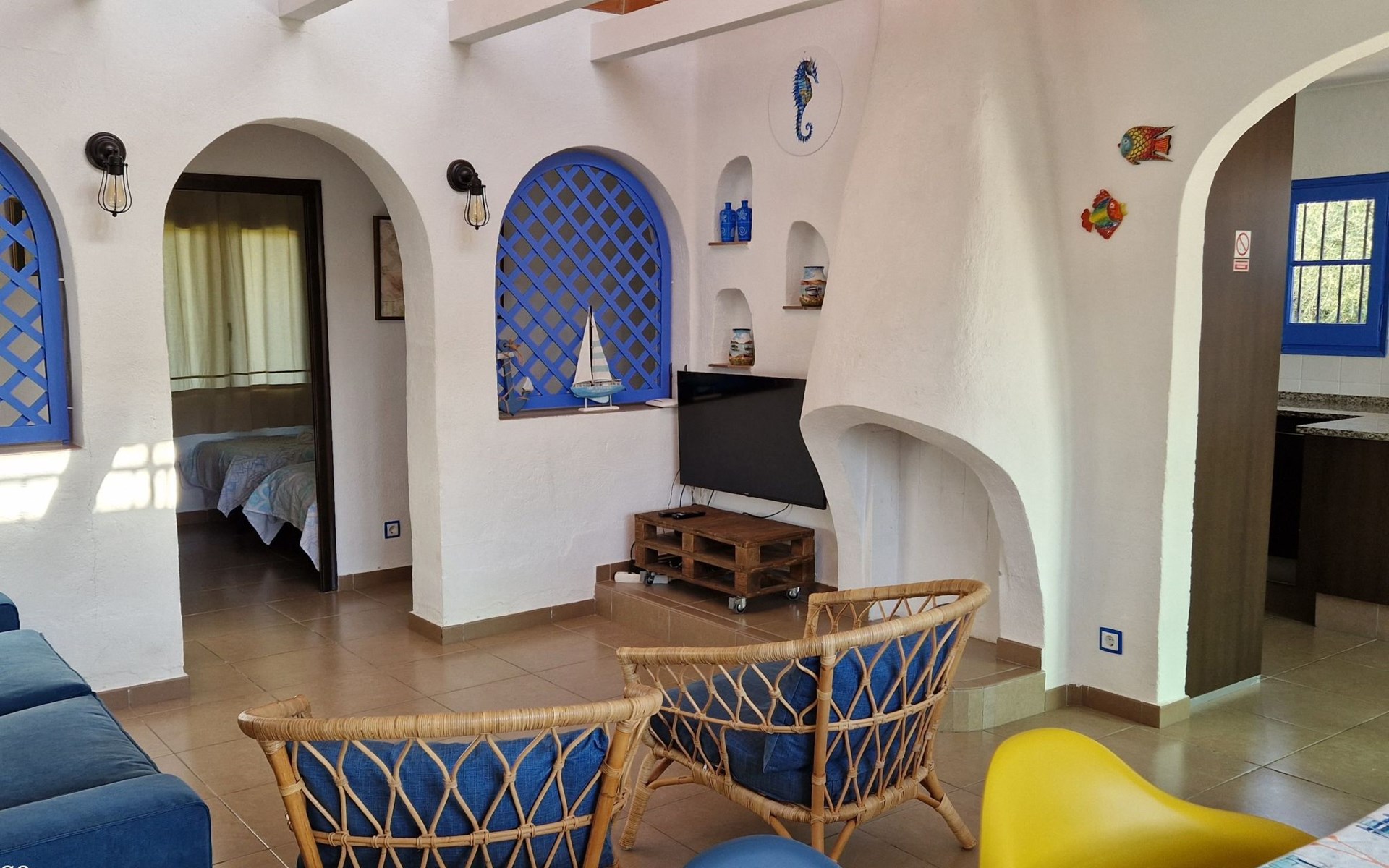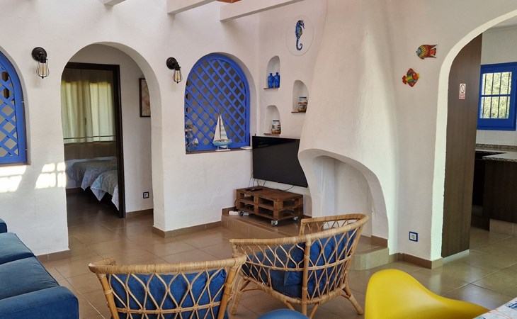 Im Inneren empfängt Casa Acacies seine Gäste mit einer warmen und gemütlichen Atmosphäre. Das Haus verfügt über ein gemütliches Wohnzimmer mit Flachbildfernseher, ideal für entspannte Abende. Der Essbereich und die moderne Küche sind komplett ausgestattet mit Geschirrspüler, Mikrowelle, Espressomaschine und allen notwendigen Utensilien für die Zubereitung köstlicher Mahlzeiten. Für Ihren Komfort gibt es ein komplettes Badezimmer mit begehbarer Dusche sowie drei Schlafzimmer, die für eine erholsame Nachtruhe eingerichtet sind.