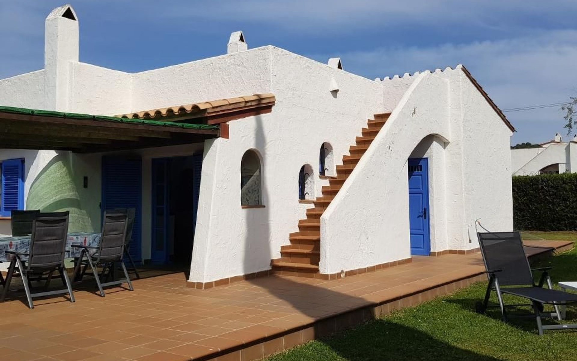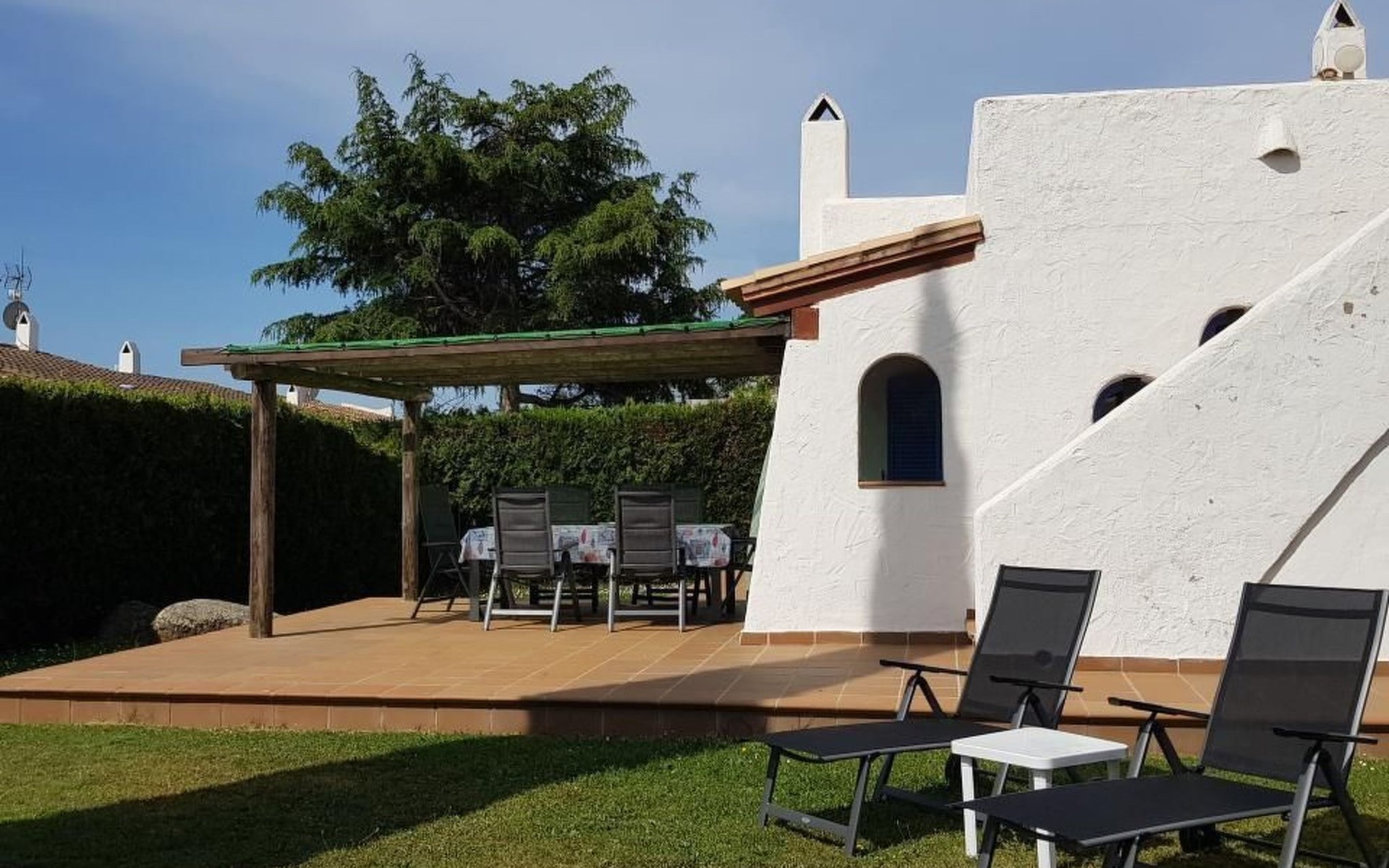 Der Außenbereich des Hauses ist ein Raum zum Genießen und Entspannen, mit einer möblierten Terrasse und einem großen privaten Garten von 300 m², umgeben von Grün, das für Privatsphäre sorgt. Die Gäste können den Gemeinschaftspool nutzen, um sich an den heißesten Tagen abzukühlen, oder einfach auf den Gartenmöbeln in der Sonne entspannen.