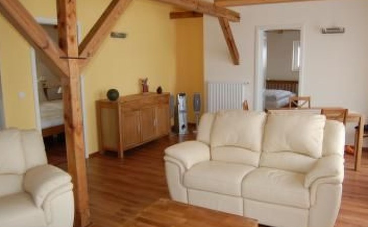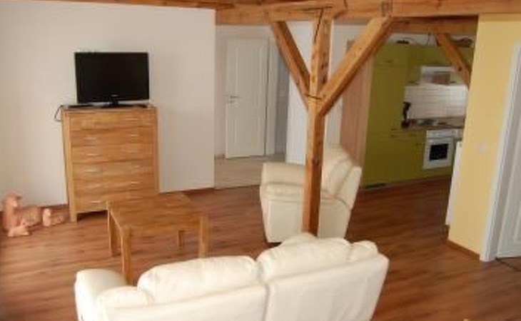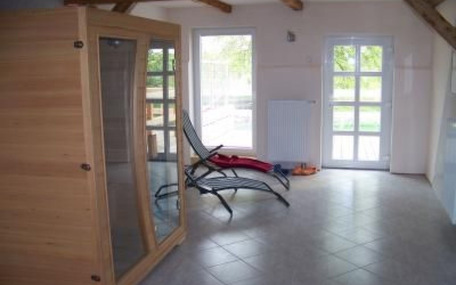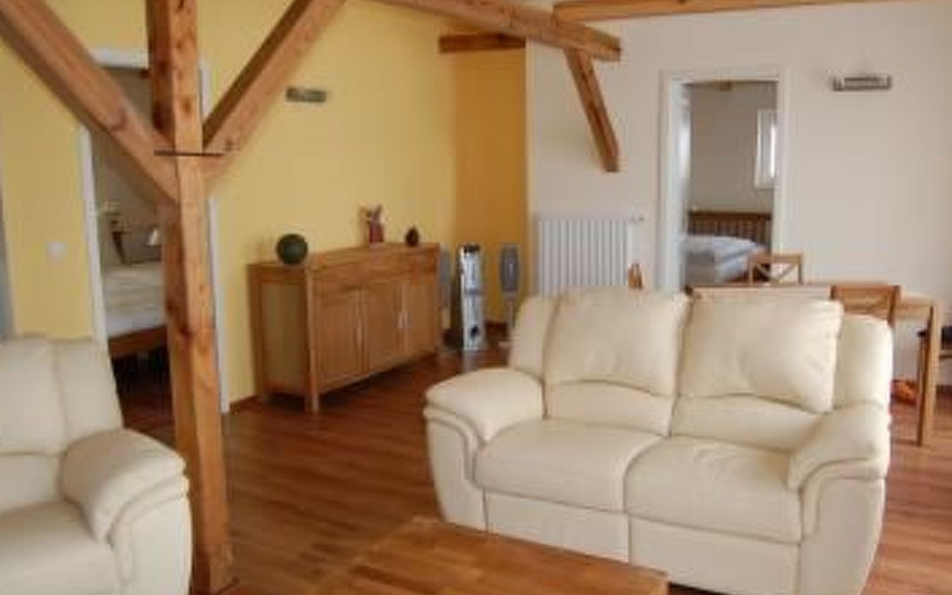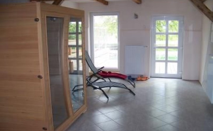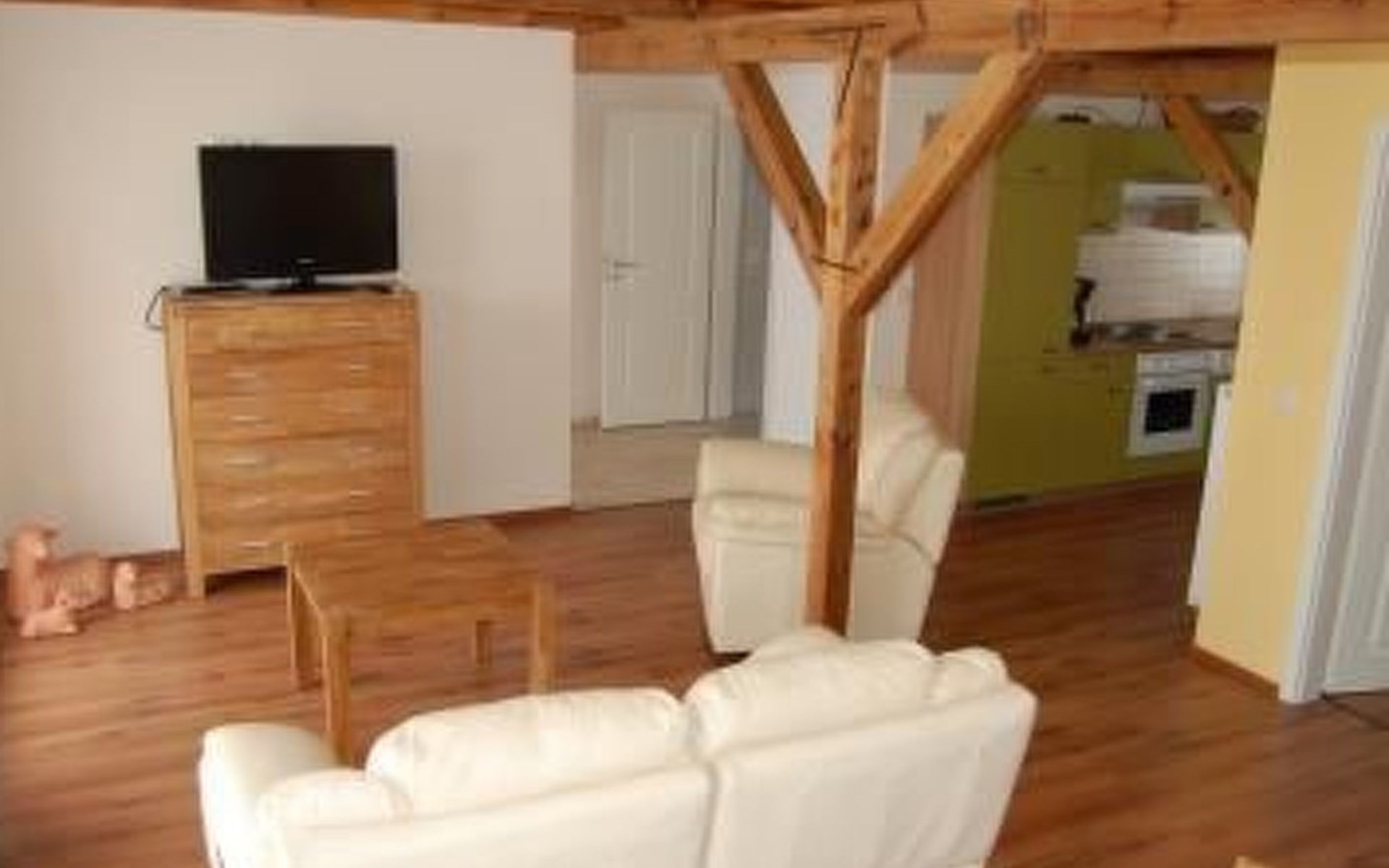 Die Wohnung ist 80 qm groß u. verfügt über einen großzügigen Wohn- u. Eßbereich, 2 Schlafzimmer, einer voll ausgestatteten Einbauküche u. Bad mit Dusche. Im angrenzenden Wellnessbereich können Sie sich auch in den kalten Jahreszeiten in der Sauna ( Infrarotkabine) entspannen. Auf der großen Holzterrasse lässt es sich prima frühstücken. Ausflüge: Straußenhof Berkenlatten, Barfußerlebnispark auch in Berkenlatten, Wasserburgruine Gerswalde, Eisenbahnmuseum Gramzow, NaturTerme Templin, Westernstadt Eldorado Entfernung: Templin 25 km; Berlin 100 km
