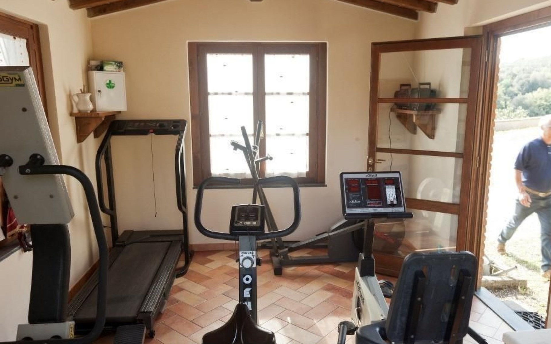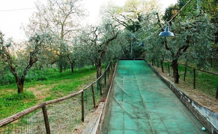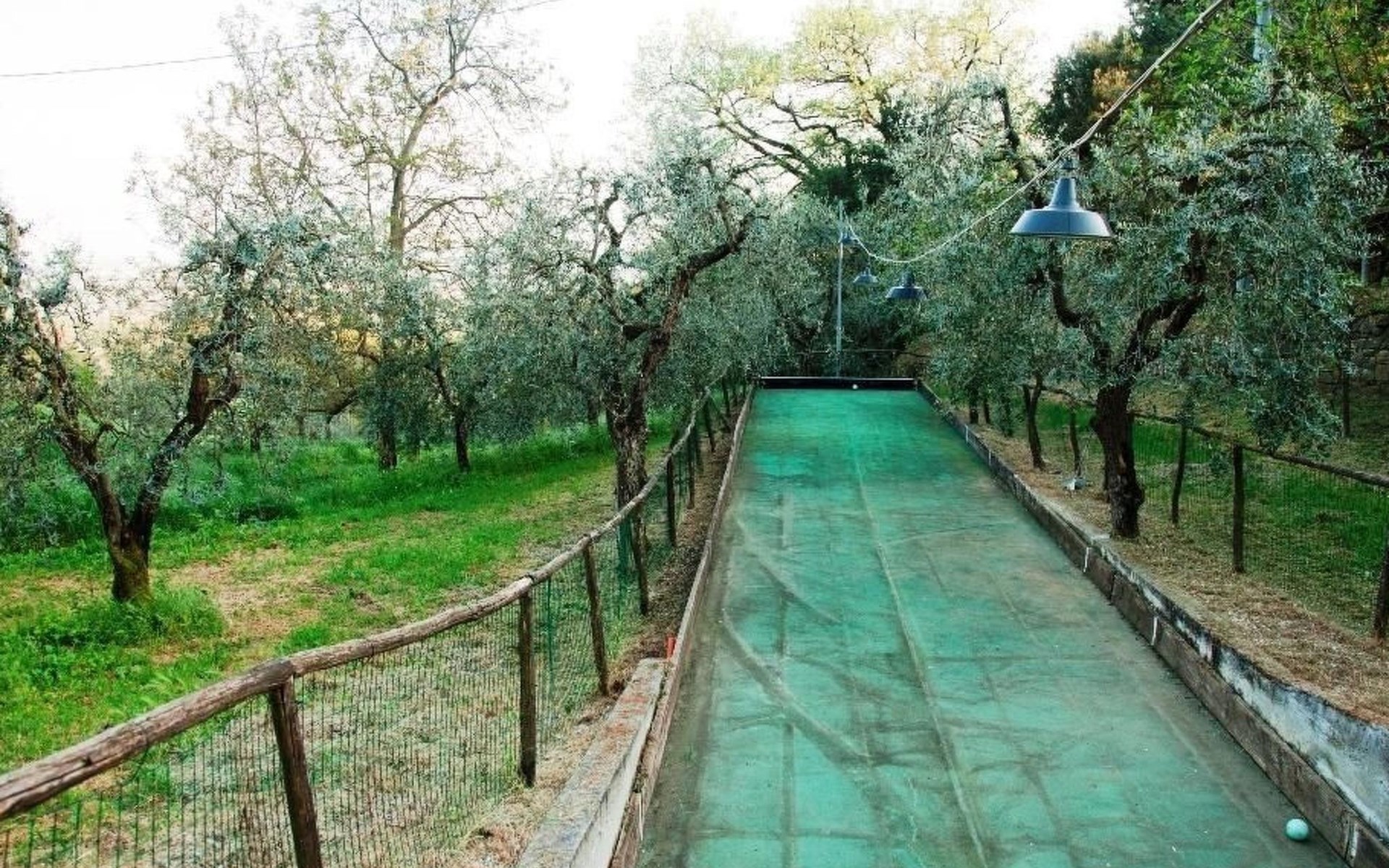Das Landhaus in der Toskana verfügt außerdem über einen Fitnessraum mit Heimtrainern, Laufbändern und verschiedenen Gymnastikgeräten, eine professionelle Boccia-Bahn mit Nachtbeleuchtung, um Nachmittage oder Abende in Gesellschaft von Freunden zu verbringen, und einen großen Grill, der sich hervorragend für die Zubereitung von Abendessen am Pool oder in den beiden separaten Ecken des großen Hofs vor dem Haus eignet.