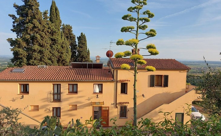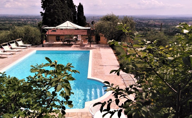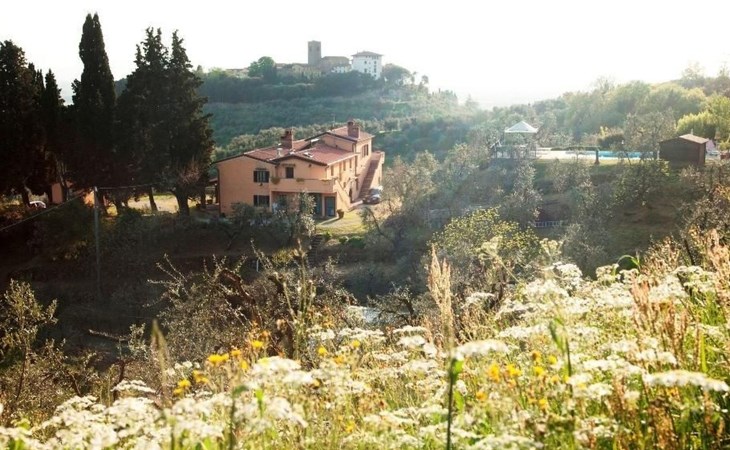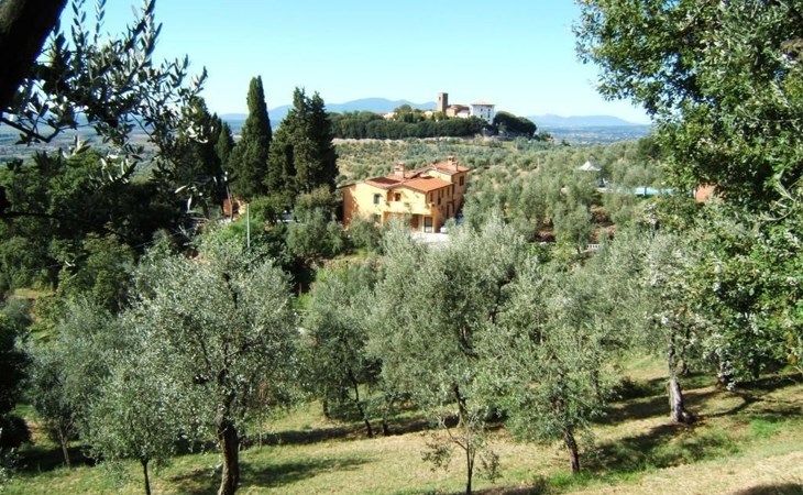 Das Ferienhaus Podere Pilar, das sich in der herrlichen Hügellandschaft der Gemeinde Monsummano Terme befindet, ist ein typisch toskanisches Bauernhaus, das mit Olivenbäumen in terrassenförmig angelegten Feldern bebaut ist (ca. 800 Bäume auf einer Fläche von mehr als 4 Hektar, auf der das wertvolle Montalbano-Olivenöl hergestellt wird). Der Ferienkomplex, die Felder, das Schwimmbad und der Park sind durch Landstraßen miteinander verbunden, die die Urlauber für angenehme Spaziergänge nutzen können, um die perfekte architektonische und landschaftliche Harmonie des benachbarten mittelalterlichen Dorfes Montevettolini zu genießen.