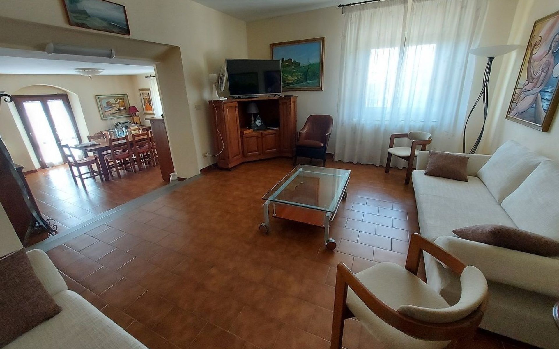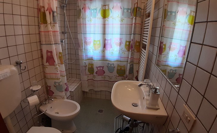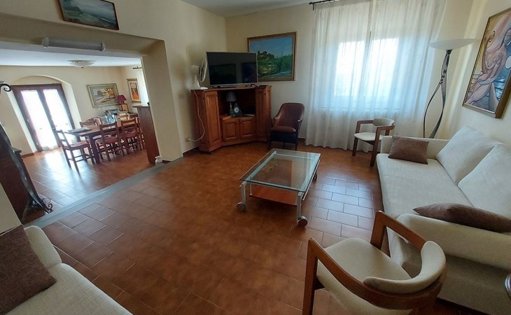 Wohnung von ca. 75 qm, bestehend aus einer großen, mit Geräten ausgestatteten Küche auf der Südseite; Schlafzimmer auf der Südwestseite mit Doppelbett, Wohnzimmer auf der West- und Nordwestseite mit TVSAT; Vorbad mit Waschmaschine, Bad auf der Nordseite. Eingang zur Wohnung über Innen- und Außentreppe und Panoramabalkon auf der Westseite