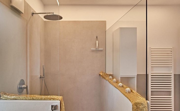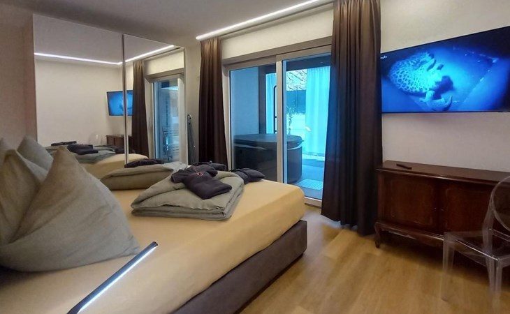 Garden & Wellness "LeVigne" wurde von unserem Studio als Designapartment konzipiert, streng Made in Italy und mit Möbeln, die Designgeschichte geschrieben haben. Im Wohnzimmer steht der berühmte ovale Tulip-Tisch und im Außenbereich der runde Tisch von Eero Saarinen, begleitet von Moises-Stühlen, die als Kunstwerk des 21. Jahrhunderts gefeiert wurden.