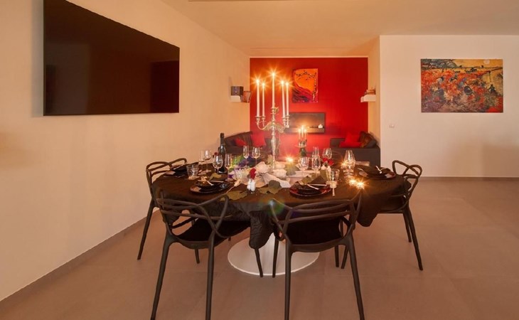 Die nach Süd/West ausgerichtete Wohnung befindet sich im zentralen Gebäude mit einem privaten Außenbereich von 200 m² und einem Wohnbereich, der aus einem Innen- und Außenbereich von insgesamt 150 m² besteht.