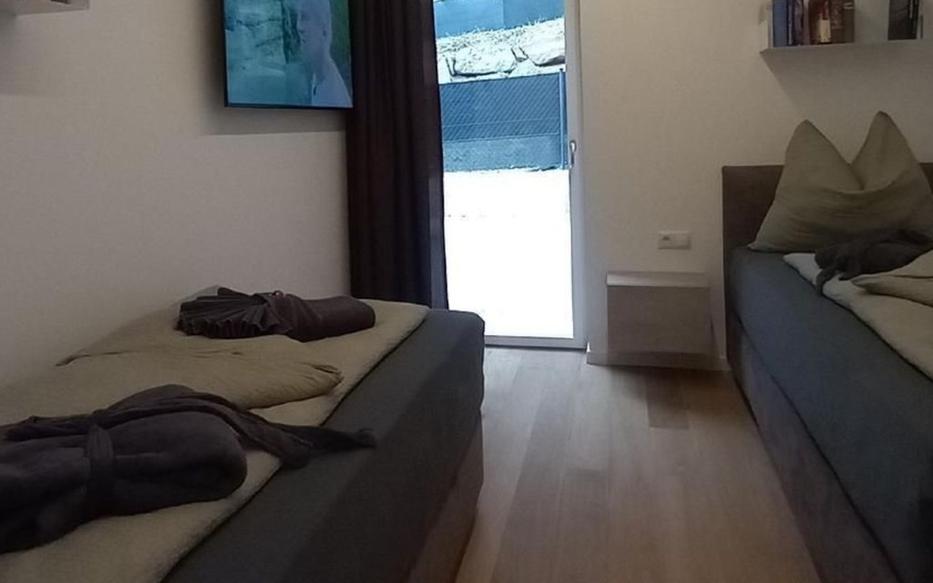 Das Wohnzimmer und jedes Zimmer verfügen über einen Smart TV (65" und 55"). Im Wohnzimmer können Sie Musik über eine Sonos-Box der zweiten Generation genießen, die mit Google Home programmiert ist und Ihnen per Sprachbefehl in den drei Sprachen Italienisch, Deutsch und Englisch zuhören wird.