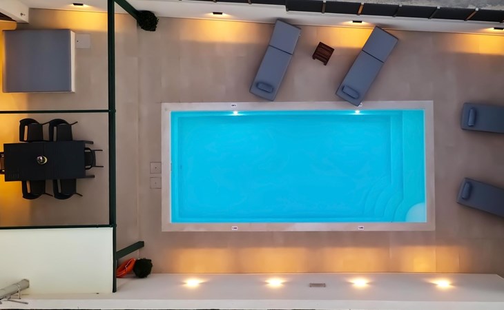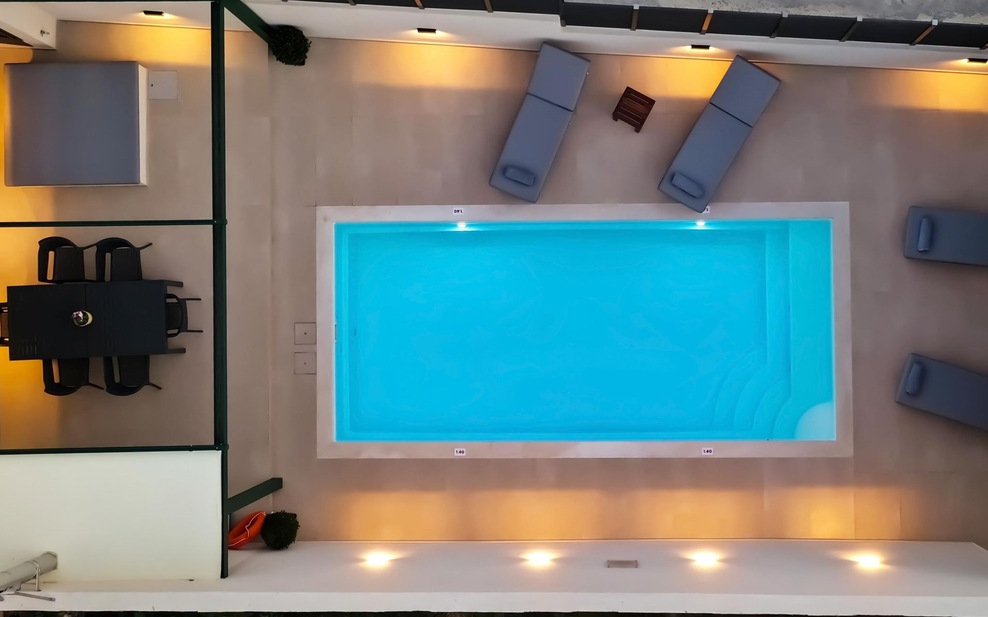 Zwei befinden sich am Eingang, zwei an der Seite des Hauses und eine weitere im Poolbereich.