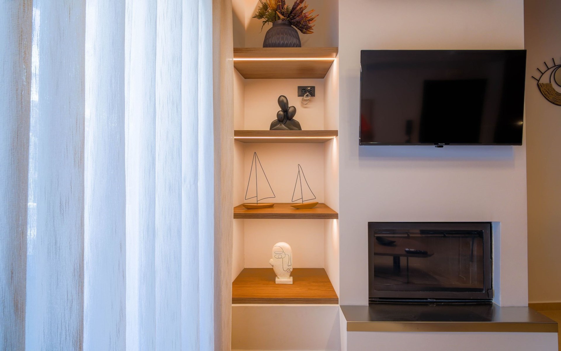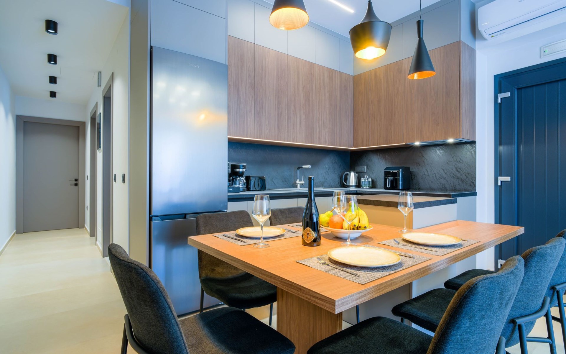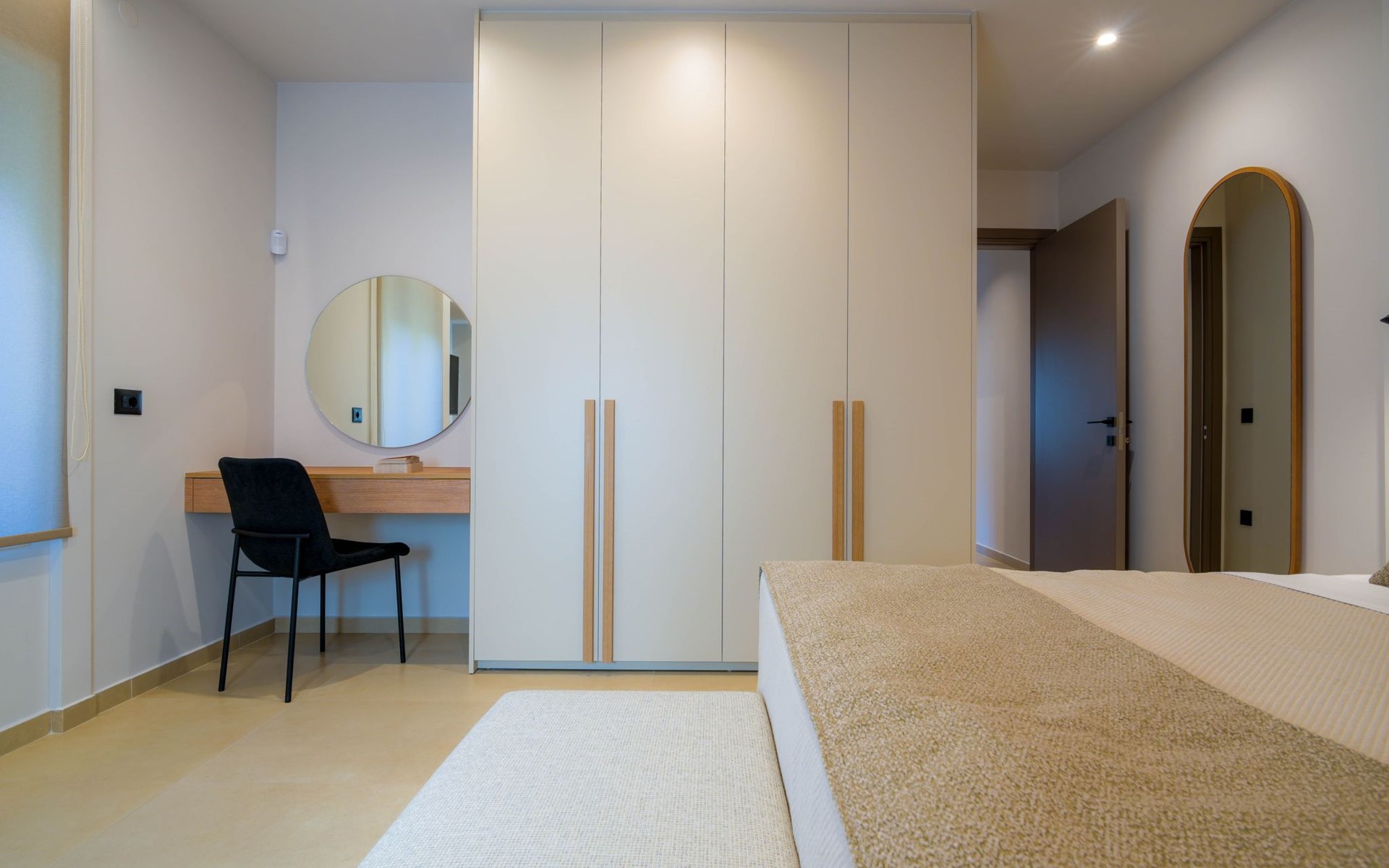 Das Innere dieses Ferienparadieses ist auf Entspannung und Komfort ausgelegt. Es verfügt über zwei gut ausgestattete Schlafzimmer, jedes mit einem Kingsize-Bett (die Betten in einem Zimmer können auf Wunsch in zwei Einzelbetten aufgeteilt werden), Kleiderschränke mit zusätzlichen Kissen, Klimaanlage und Fernseher für Ihre Unterhaltung. Das Wohnzimmer verfügt über viel Tageslicht, ein großes Sofa, das auch als Doppelbett genutzt werden kann, einen gemütlichen Kamin und einen modernen Esstisch mit 6 Plätzen. Die voll ausgestattete Küche lässt keine kulinarischen Wünsche offen: Kühlschrank, Backofen, Herd, Geschirrspüler, Nespresso-Maschine, Kaffeefiltermaschine, Toaster, Wasserkocher und vieles mehr sorgen für einen angenehmen Aufenthalt.