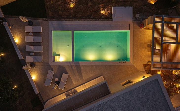 Ein geräumiger 8x10m großer privater Pool ist das Herzstück der Villa - perfekt für ein morgendliches Bad oder spielerische Nachmittage mit der Familie. In den kühleren Jahreszeiten kann der Pool auf Anfrage beheizt werden (80 €/Tag, nicht im Sommer), ein Kinderbecken ist ebenfalls vorhanden.