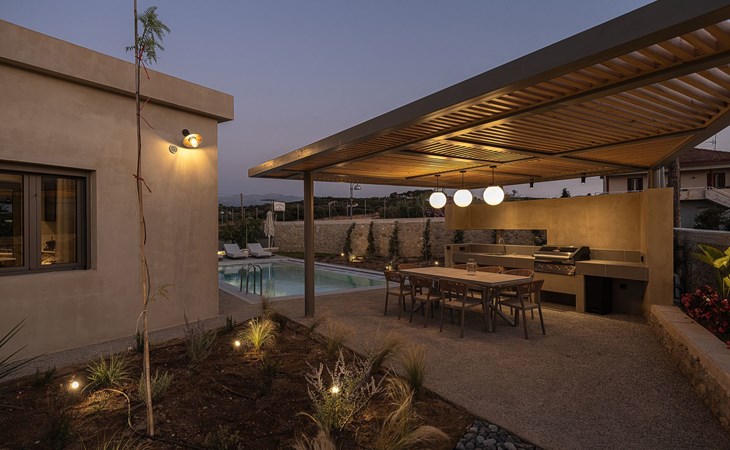 Genießen Sie lange Abende unter der Pergola mit einem Gasgrill und einem Essbereich im Freien - ein traumhafter Ort für Abendessen bei Sonnenuntergang. Spazieren Sie zwischen den Bäumen, pflücken Sie frisches Obst oder entspannen Sie einfach im Schatten und lassen Sie sich vom ruhigen Rhythmus des ländlichen Kretas mitreißen.