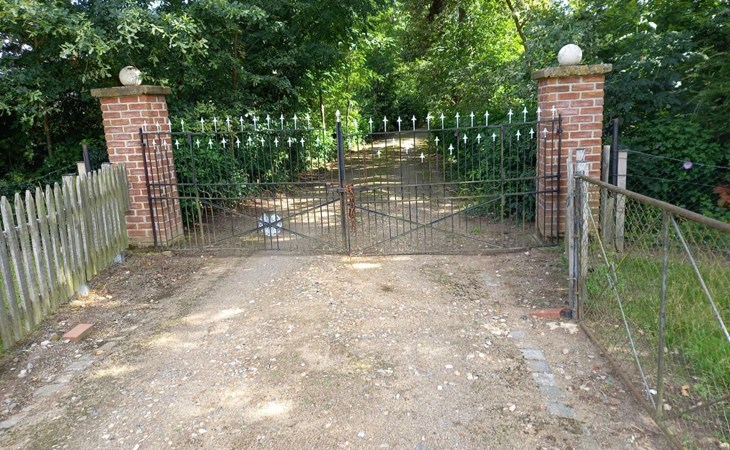 - komplett eingefriedet (mit Mauer, Zaun oder Hecke)