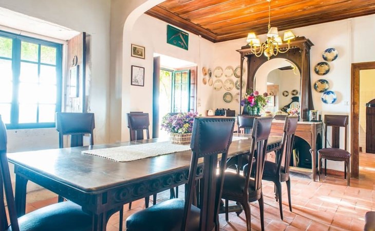 Die Residenz verfügt über eine großzügige Wohnfläche von 142 m² auf einem 10.000 m² großen Grundstück und bietet bequem Platz für bis zu 12 Gäste in vier Doppelzimmern und einem zusätzlichen Schlafzimmer mit zwei Etagenbetten. Zwei Badezimmer, eines mit Dusche und Toilette, das andere mit Badewanne, Toilette und Bidet, bieten den Gästen ein gemütliches Ambiente. Das Landhaus ist zum Entspannen und für geselliges Beisammensein gedacht und verfügt über ein Esszimmer und ein charmantes Wohnzimmer mit Kamin, das die Grundlage für unvergessliche Abende bildet.