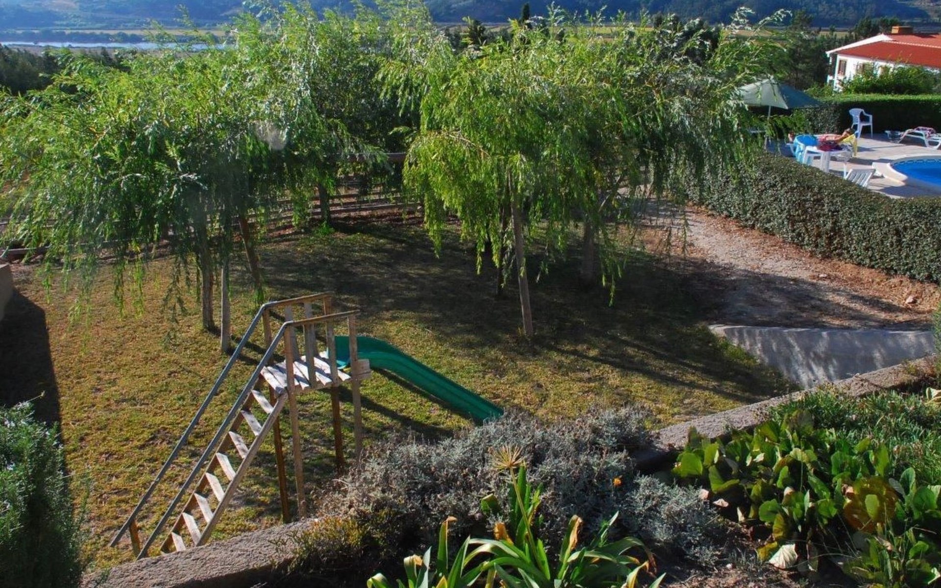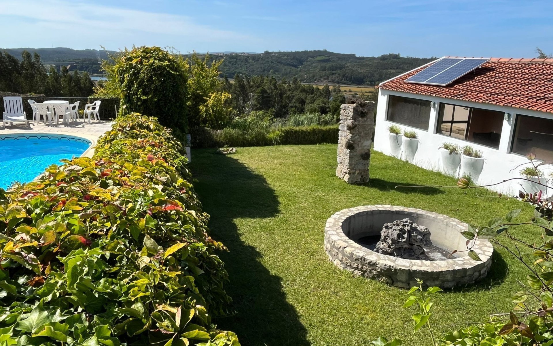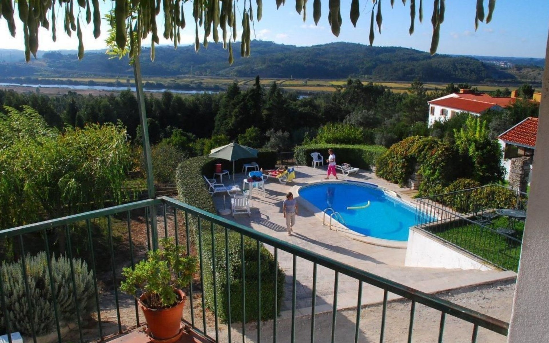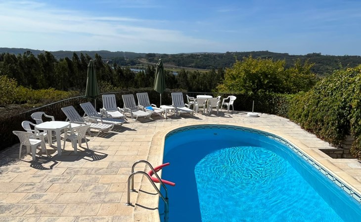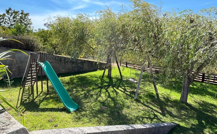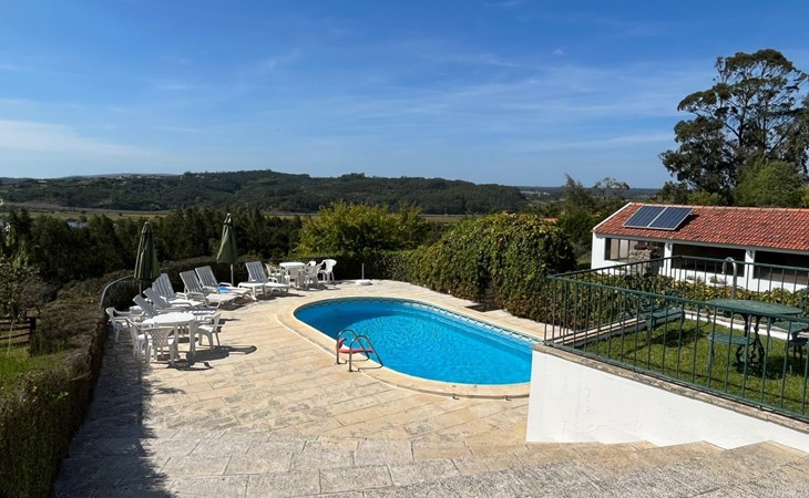 Im Außenbereich besticht das Anwesen durch einen großzügigen 45 m² großen Sonnenbalkon, der einen herrlichen Blick über die Reisfelder bis hin zum Fluss Mondego bietet. Der Außenbereich ist auf Genuss und Erholung ausgelegt und bietet einen saisonalen Swimmingpool, der von Mai bis September zur Verfügung steht. Neben dem Pool gibt es einen Poolraum, in dem Badesachen und Zubehör aufbewahrt werden können, sowie einen Fußballtisch und Tische und Stühle für Mahlzeiten im Freien. Für die Kleinen sorgt ein kleiner Spielplatz unterhalb des Balkons für fröhliche Momente in der Sonne. Ein separater Toilettenraum mit Dusche in der Nähe des Nebengebäudes ist für die Poolbenutzer bequem zu erreichen und macht das Leben im Freien noch angenehmer.