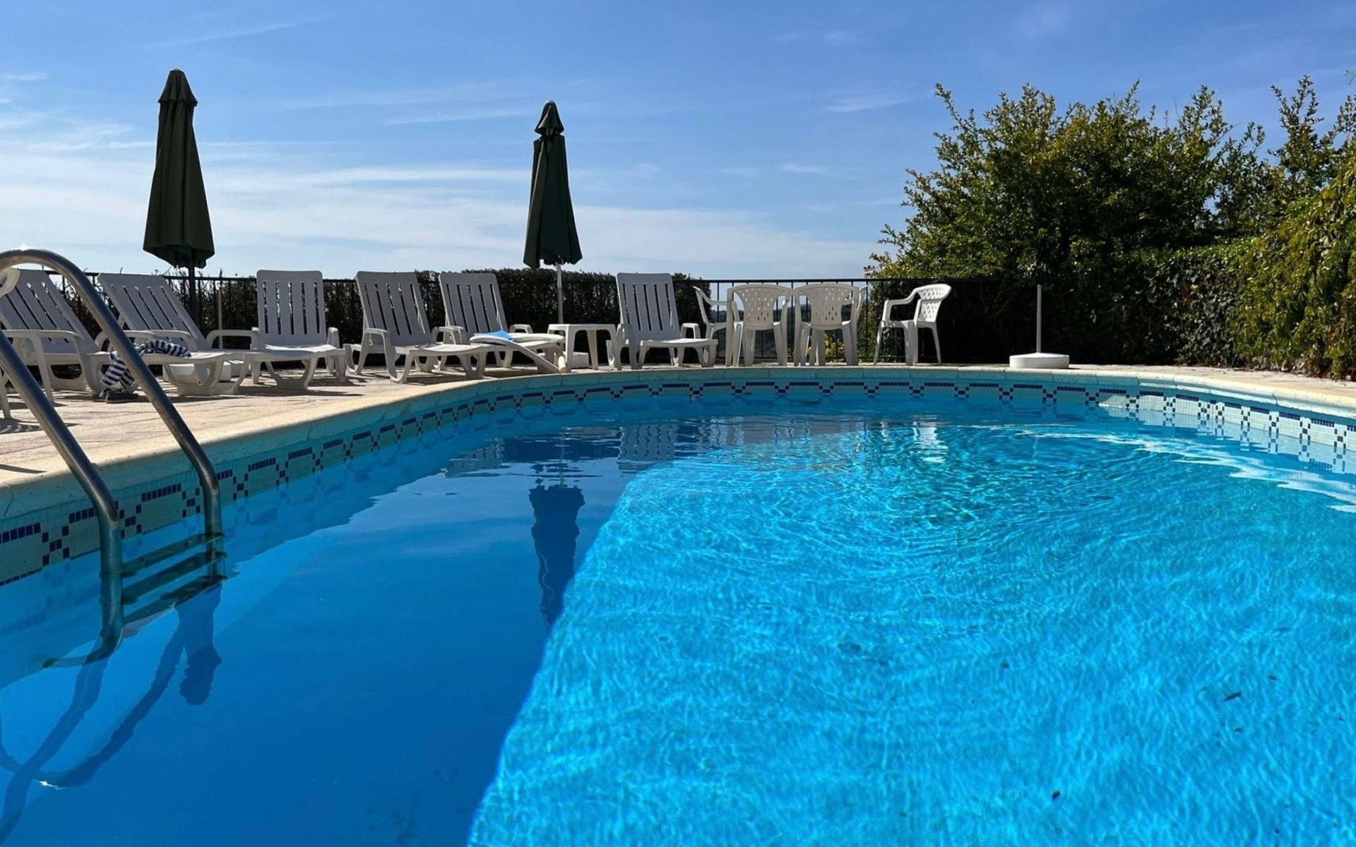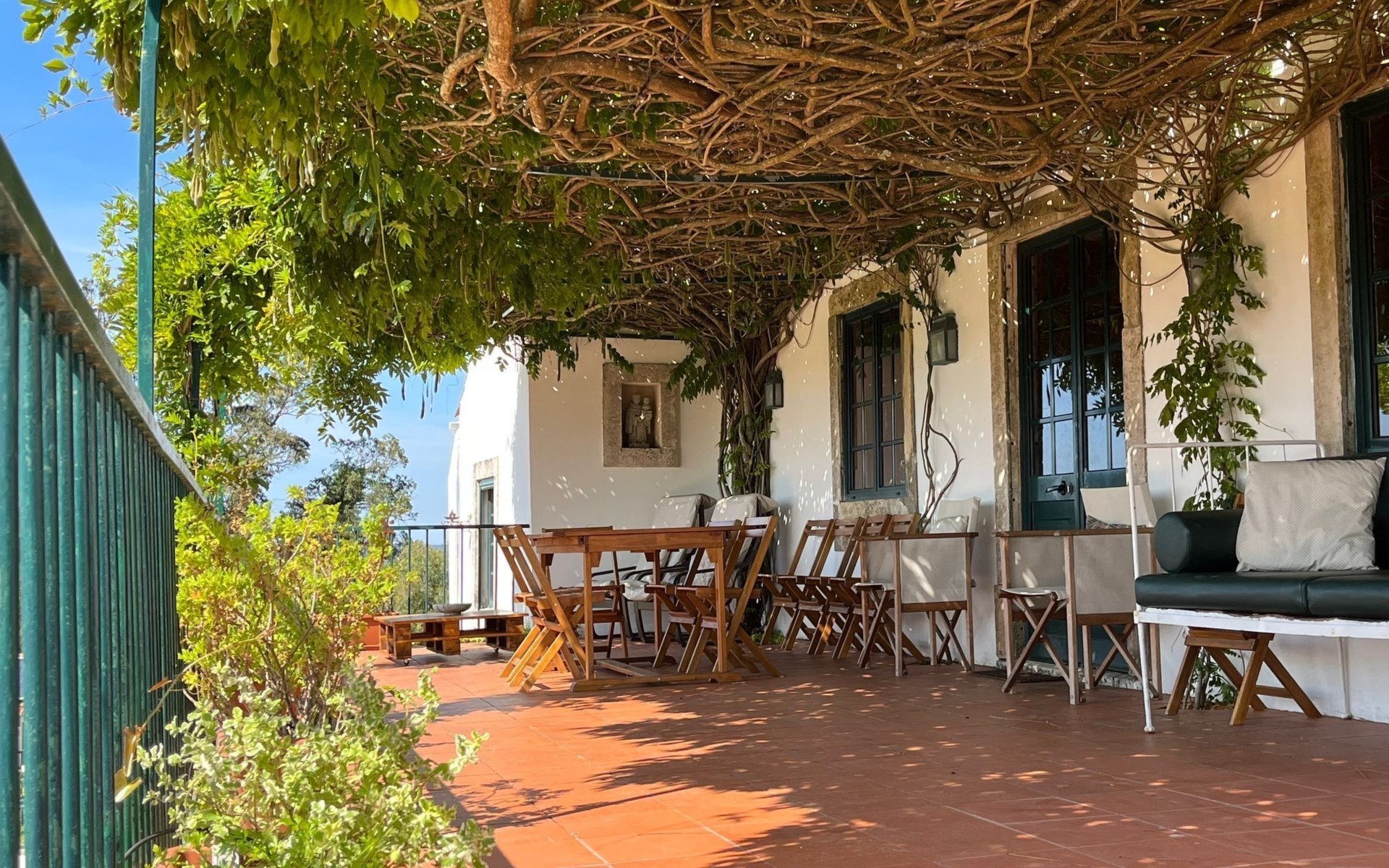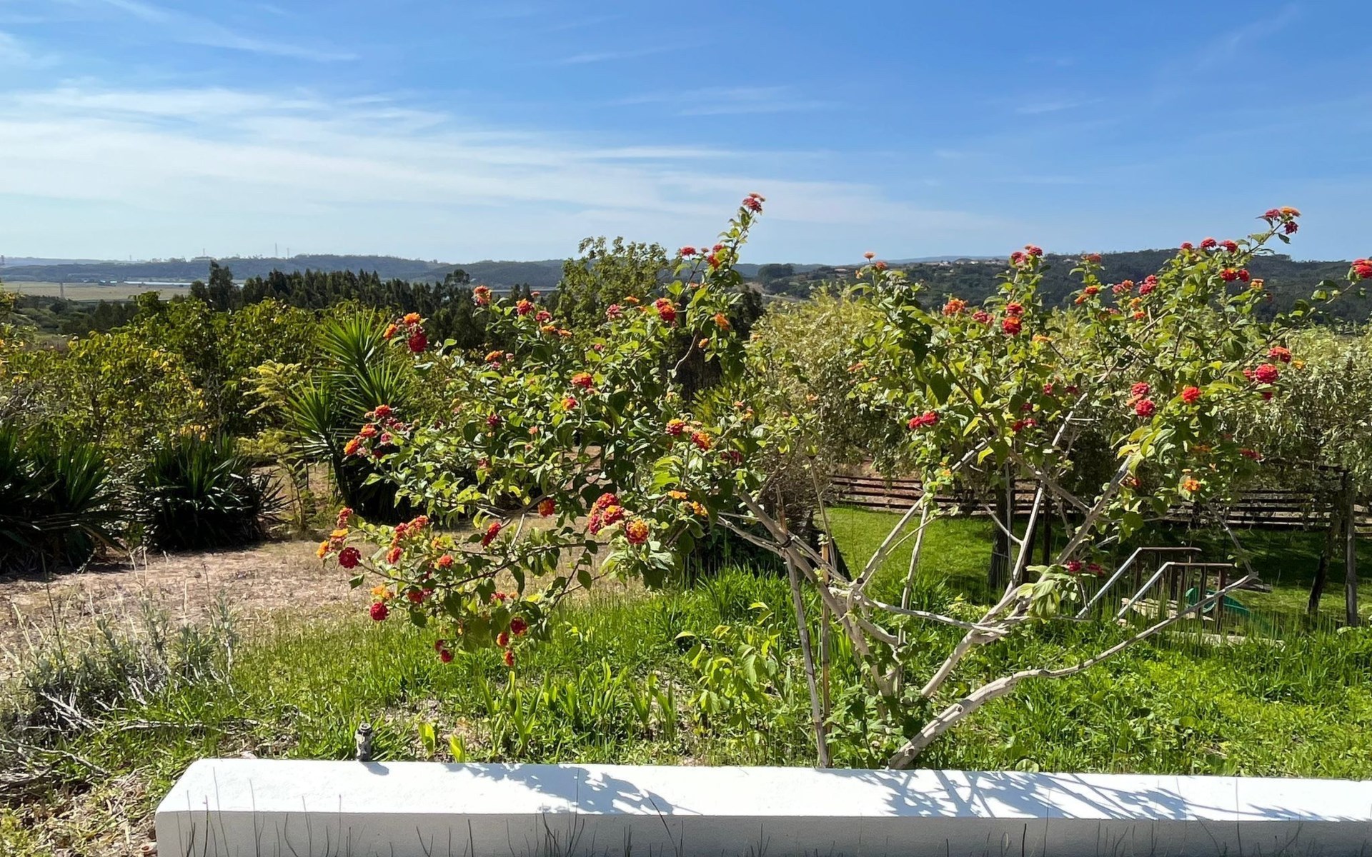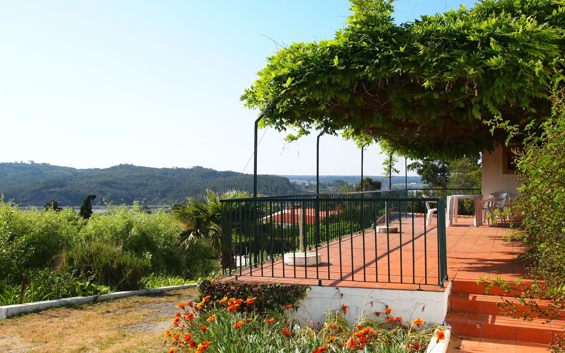 Im Außenbereich besticht das Anwesen durch einen großzügigen 45 m² großen Sonnenbalkon, der einen herrlichen Blick über die Reisfelder bis hin zum Fluss Mondego bietet. Der Außenbereich ist auf Genuss und Erholung ausgelegt und bietet einen saisonalen Swimmingpool, der von Mai bis September zur Verfügung steht. Neben dem Pool gibt es einen Poolraum, in dem Badesachen und Zubehör aufbewahrt werden können, sowie einen Fußballtisch und Tische und Stühle für Mahlzeiten im Freien. Für die Kleinen sorgt ein kleiner Spielplatz unterhalb des Balkons für fröhliche Momente in der Sonne. Ein separater Toilettenraum mit Dusche in der Nähe des Nebengebäudes ist für die Poolbenutzer bequem zu erreichen und macht das Leben im Freien noch angenehmer.