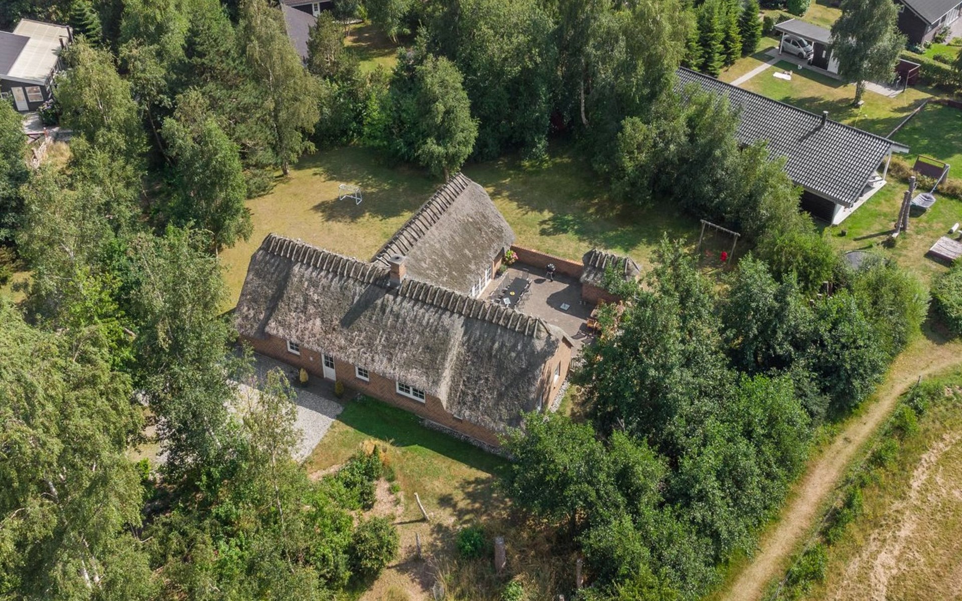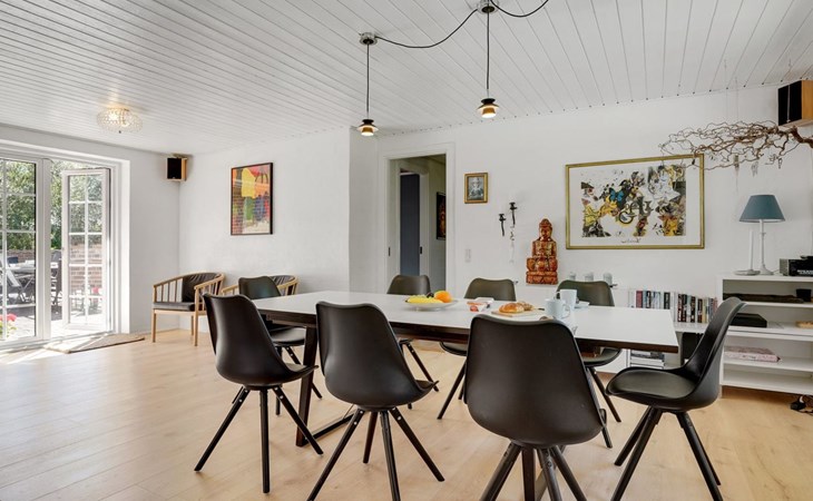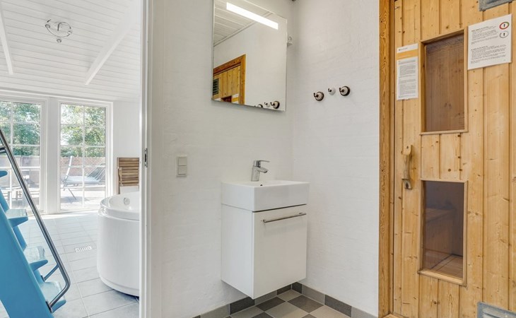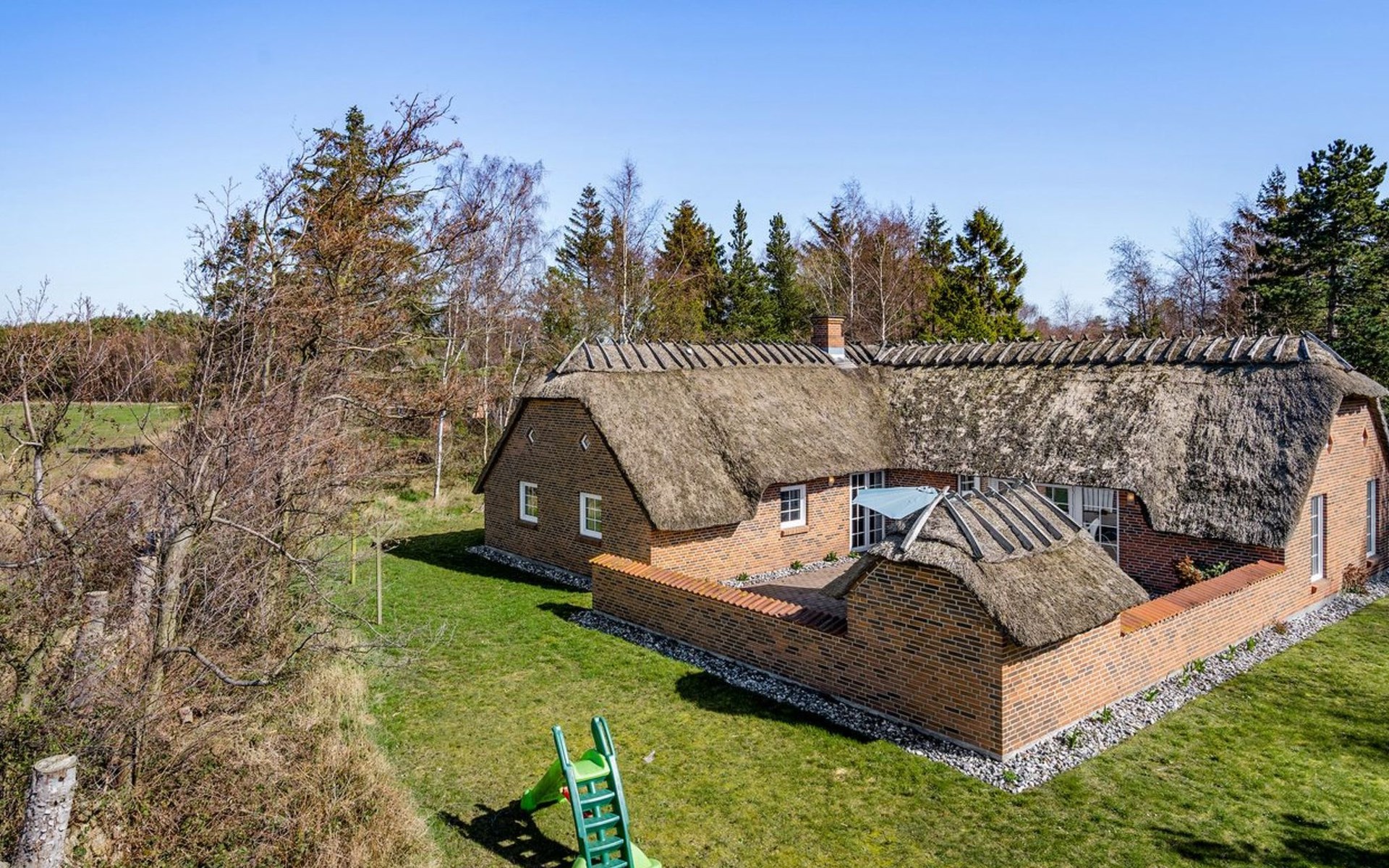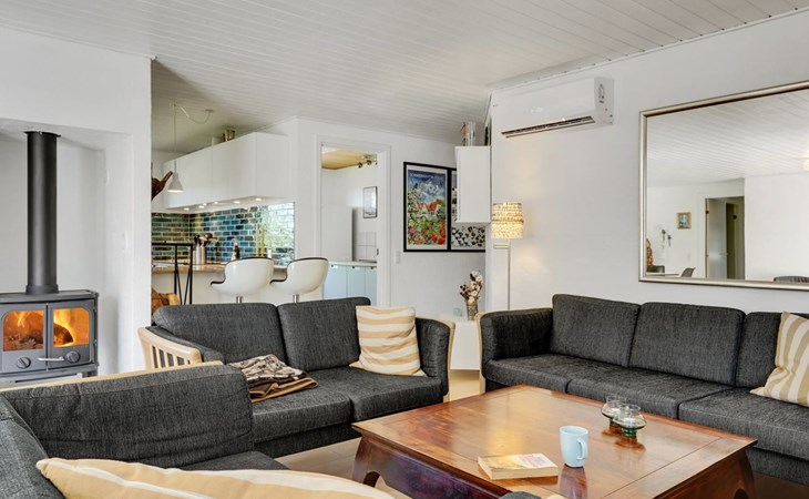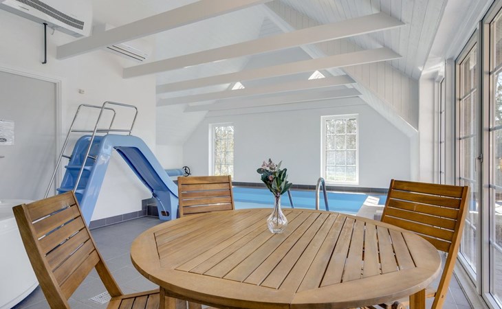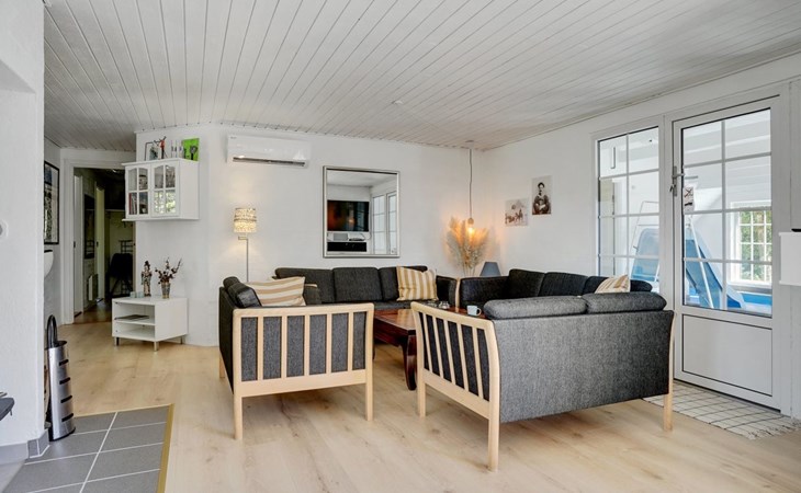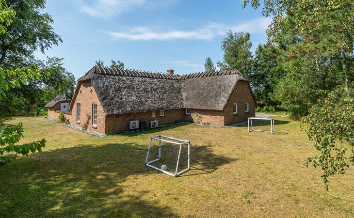 Einfamilienhaus, Baujahr 1995. 1.3 km vom Meer. Zur Alleinbenutzung: naturbelassenes Grundstück 2'247 m2, Hallenbad (3 x 5 m, 1'7.7 m2, 130 - 130 cm tief). Terrasse (65 m2), Kinderspielplatz (Schaukel). Im Hause: Sauna, Trampolin, Waschmaschine, Wäschetrockner. Parkplatz beim Haus. E-Ladestation. Lebensmittelgeschäft 1 km. Golfplatz 4.8 km. Der Besitzer akzeptiert keine Jugendgruppen.
